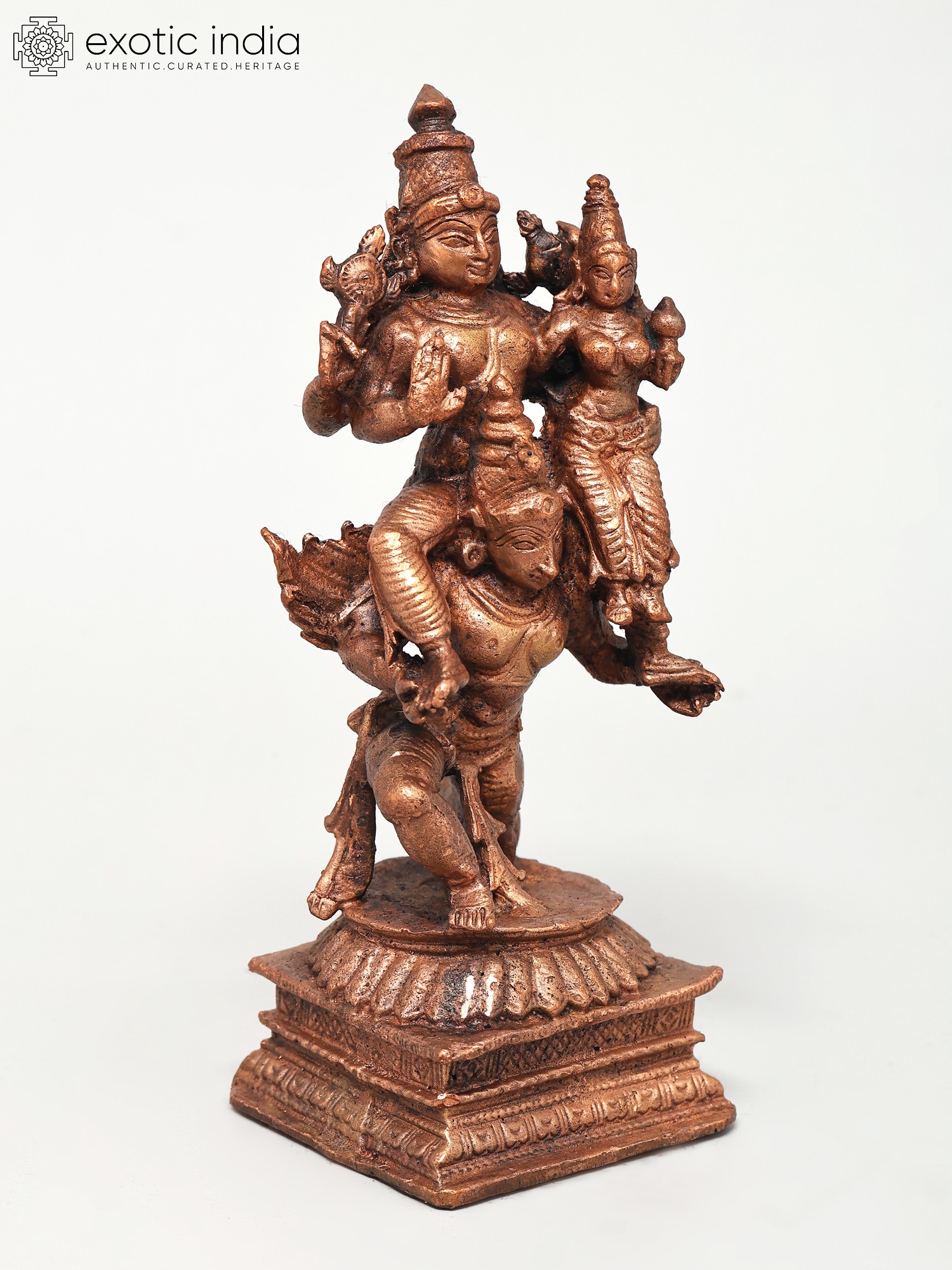 5" Small Lakshmi - Narayana Standing on Garuda | Copper Statue