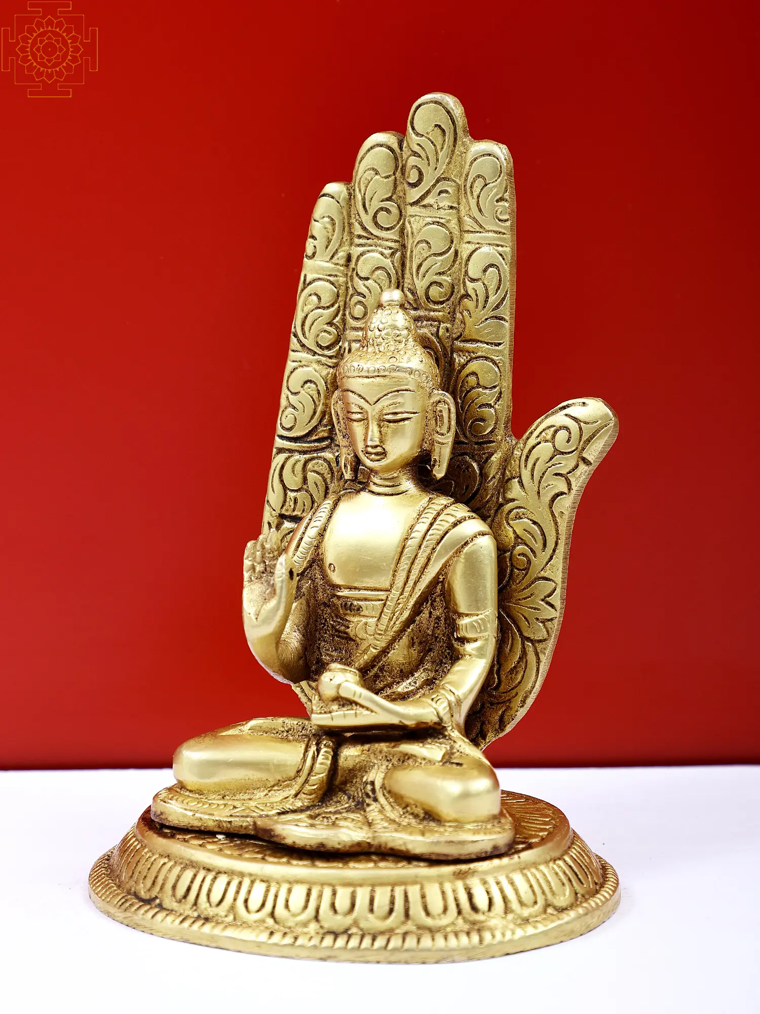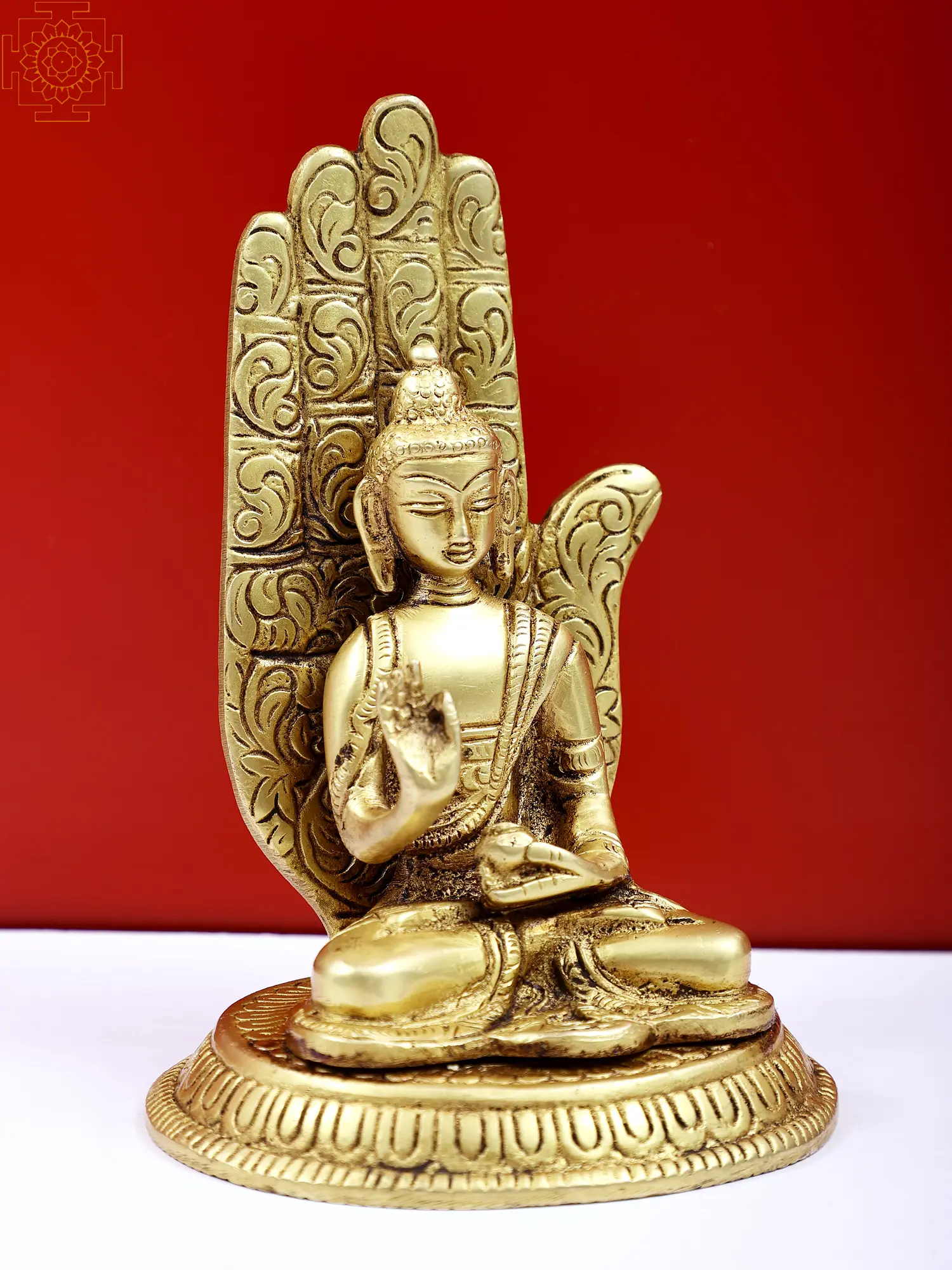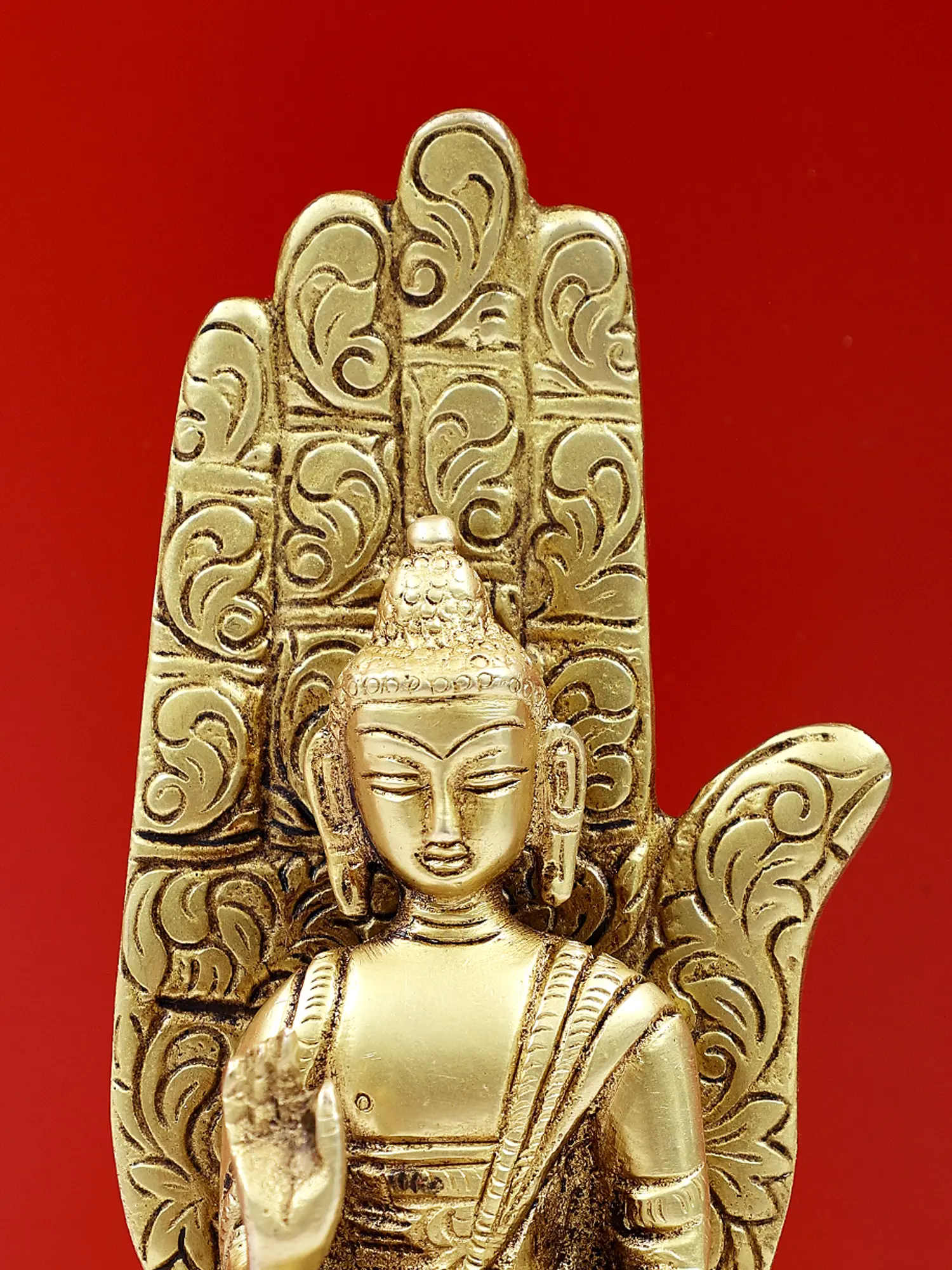 Captured in serene contemplation, the small Lord Buddha sculpture sits upon a pedestal, his hand delicately interpreting the profound teachings of the Dharma. His calm countenance reflects the path to inner peace, while the aureole of a hand radiates a universal connection. Each gesture, from the mudra to the lotus position, holds symbolism - the lotus signifies purity, the raised hand offers protection, and the meditative pose represents tranquility. This sculpture is an artistic testament to Siddhartha Gautama's transformative journey from prince to enlightened Buddha, inspiring viewers to seek their own path to understanding.