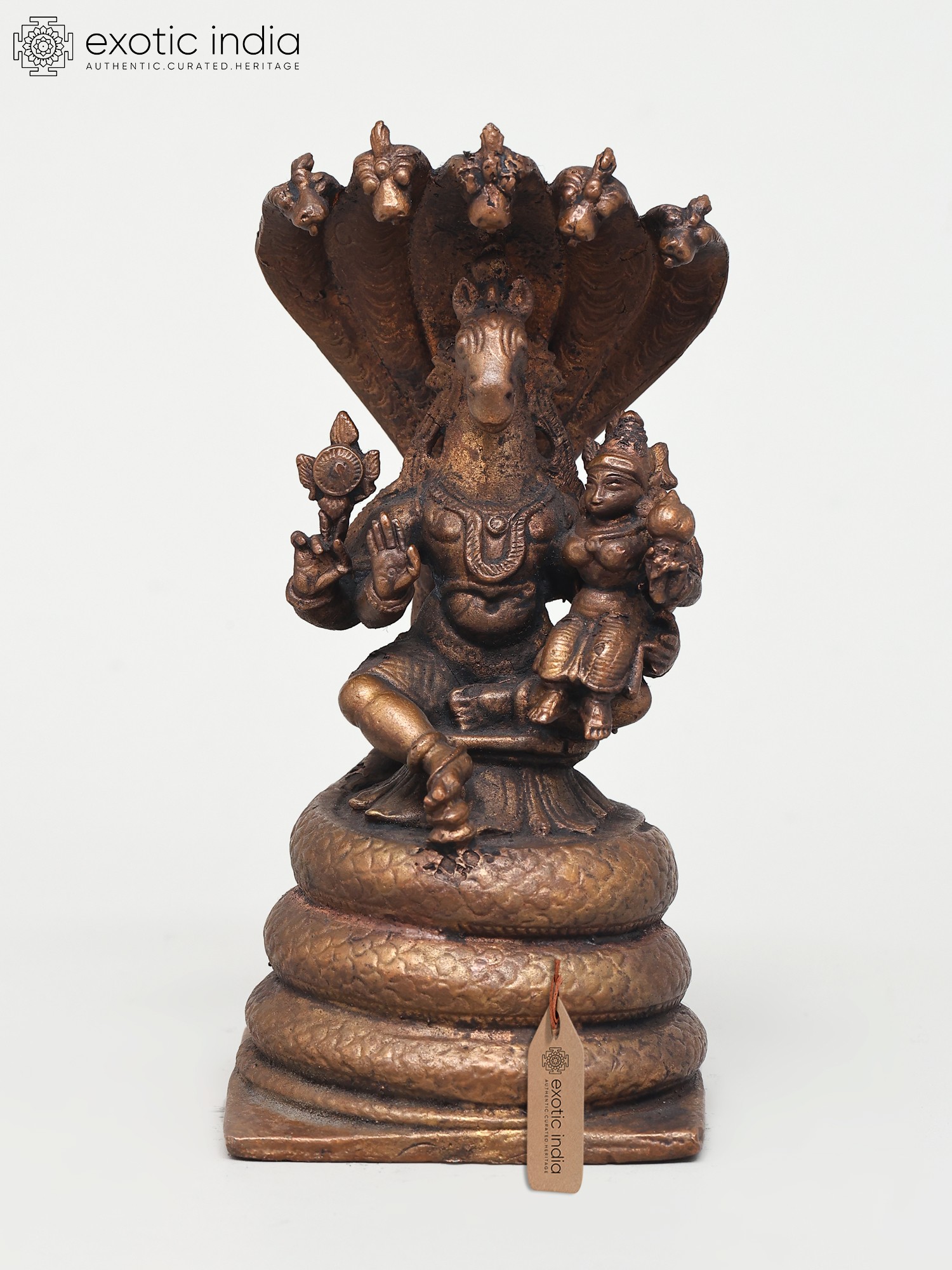 5" Lord Hayagreeva with Devi Lakshmi Seated on Sheshnag | Copper Statue