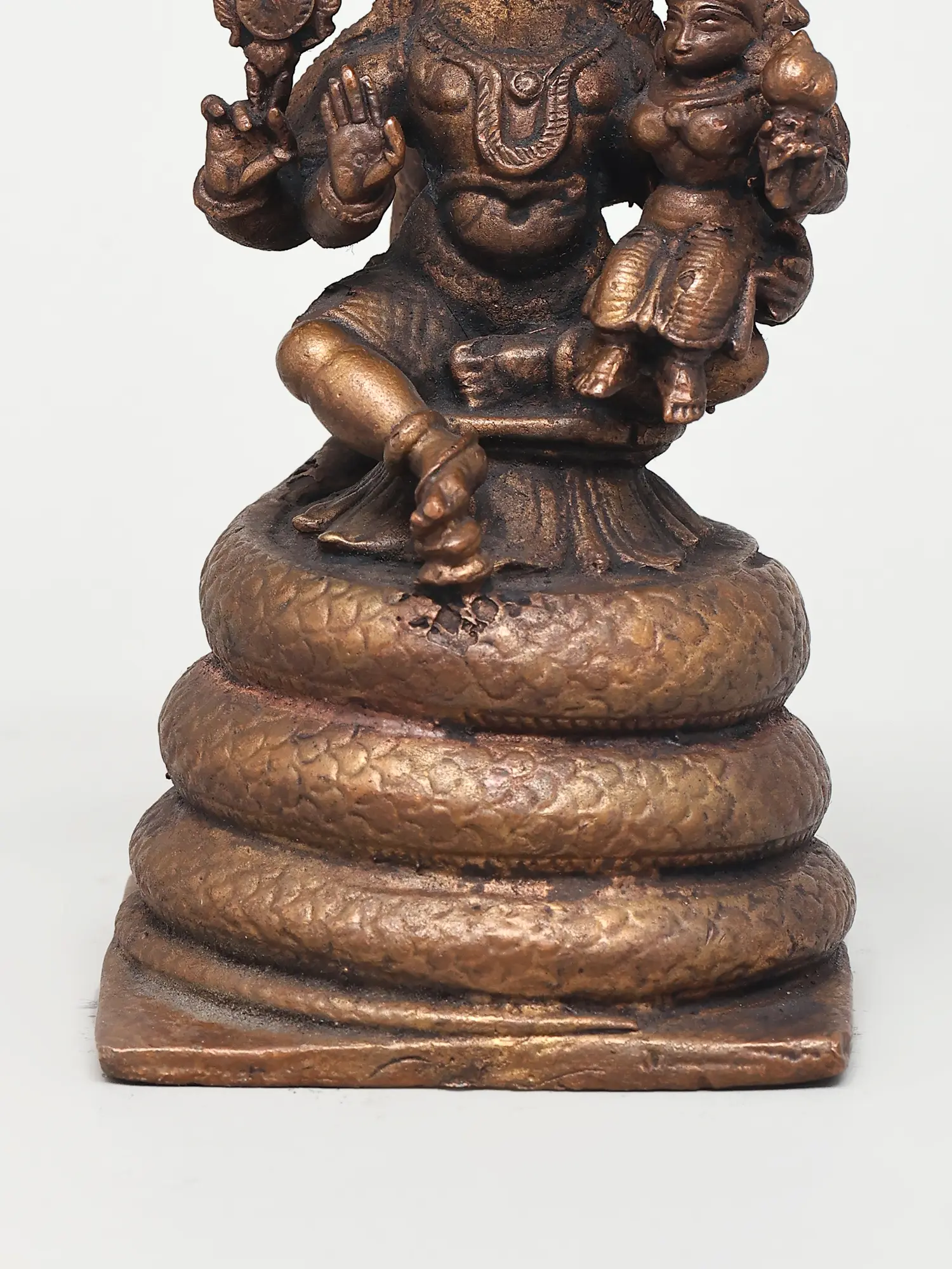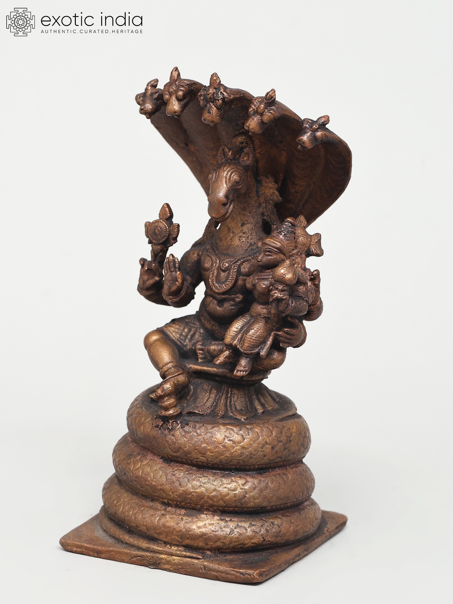 4" Lord Hayagreeva Idol with Devi Lakshmi Seated on Sheshnag | Copper Statue