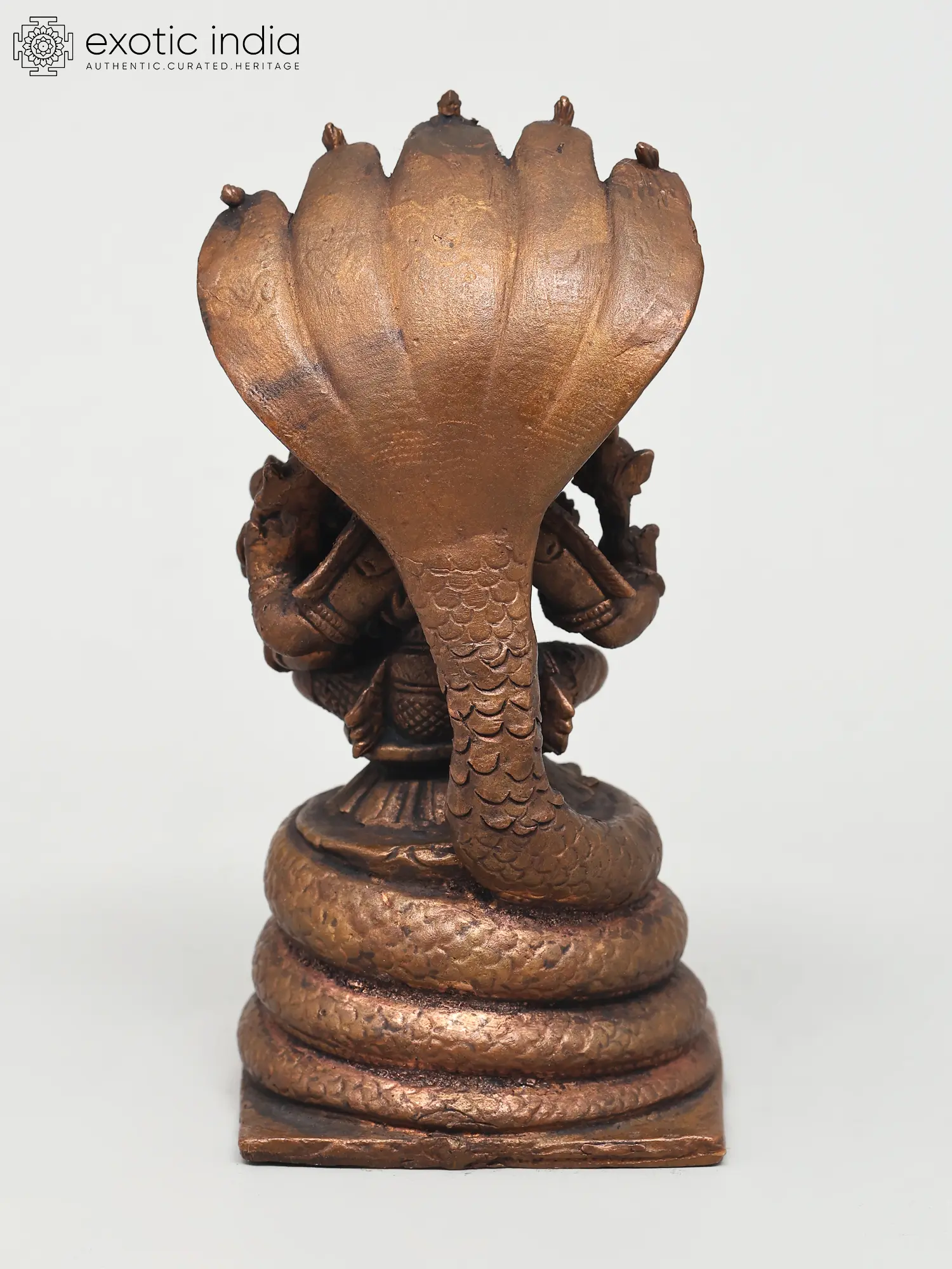 4" Small Lord Hayagreeva Seated Under The Sheshnag with Devi Lakshmi | Copper Statue