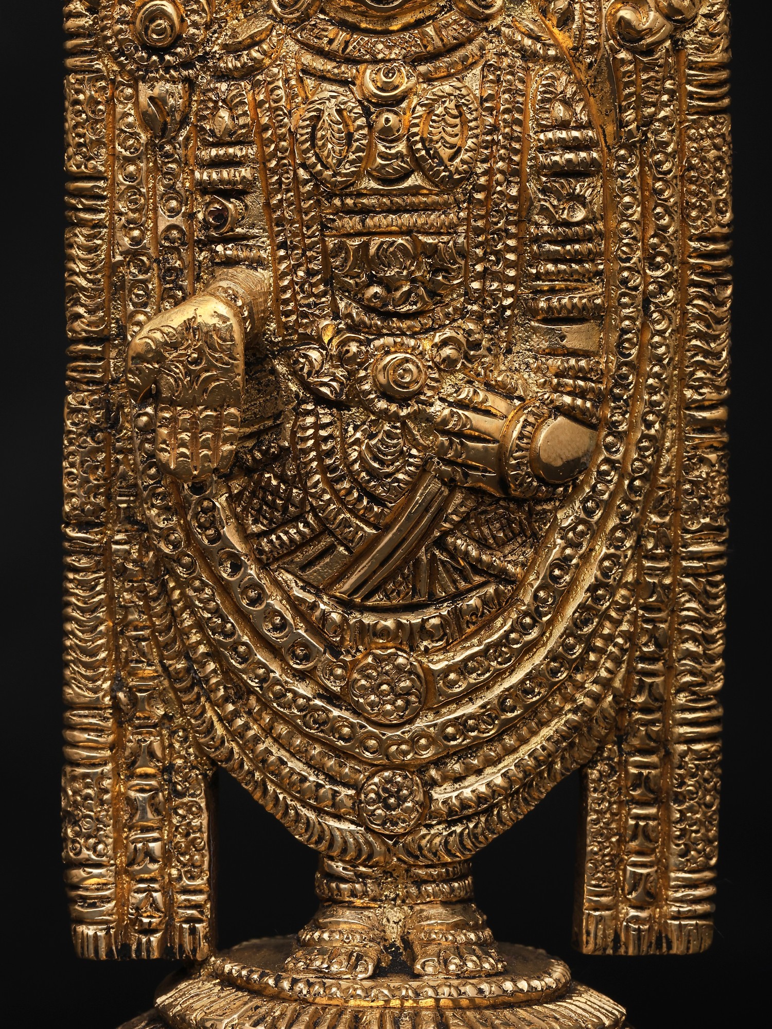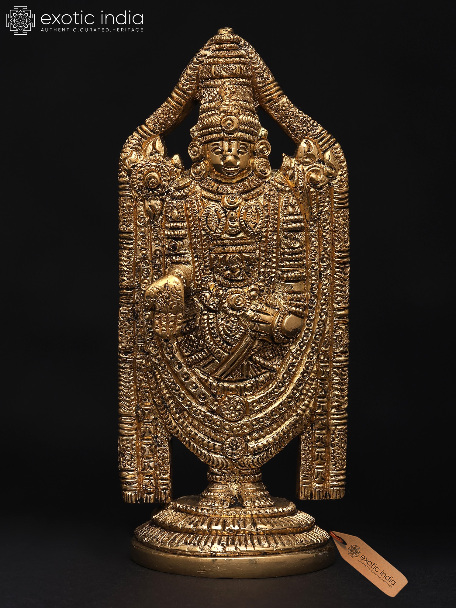 11" Lord Tirupati Balaji (Venkateshvara) Standing on Kirtimukha Throne | Brass Statue with Inlay Work
