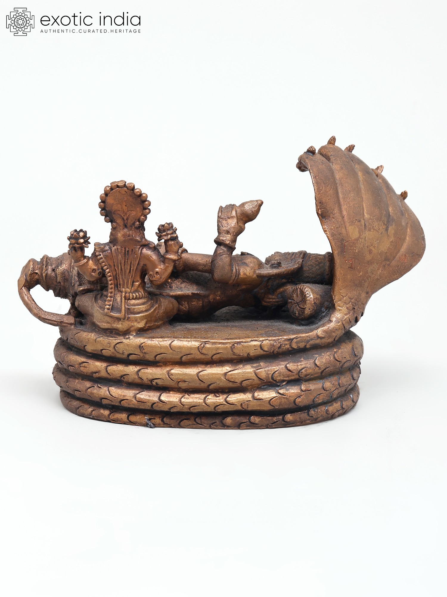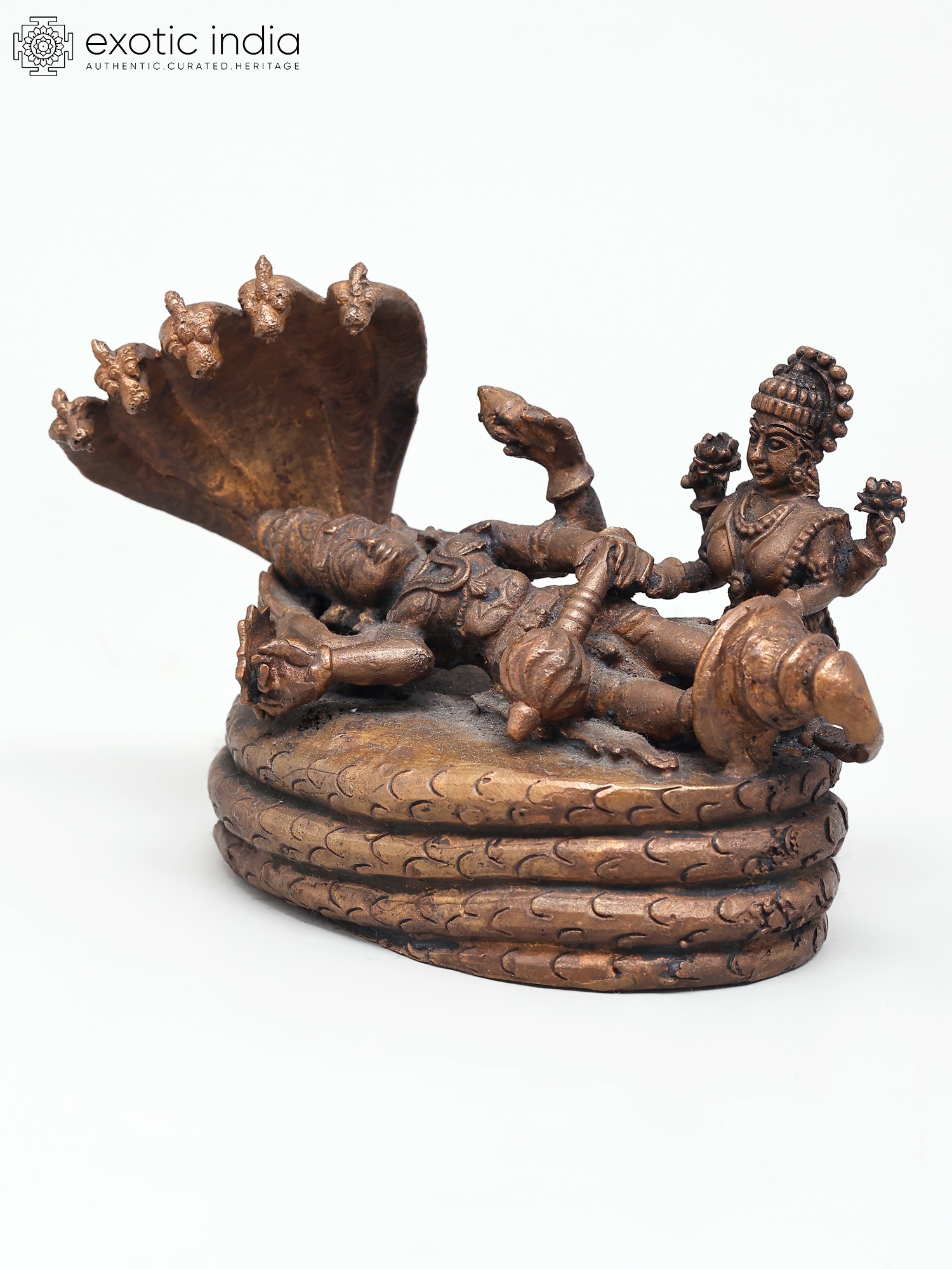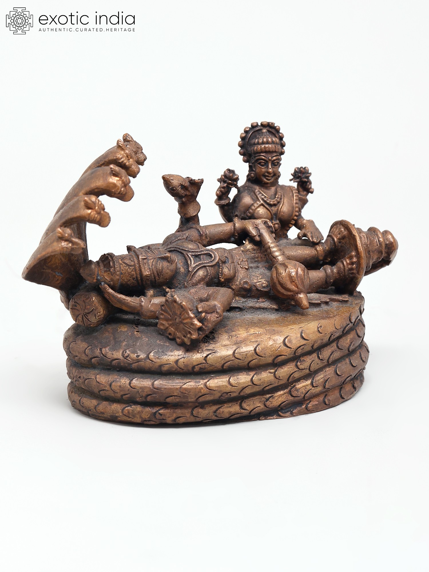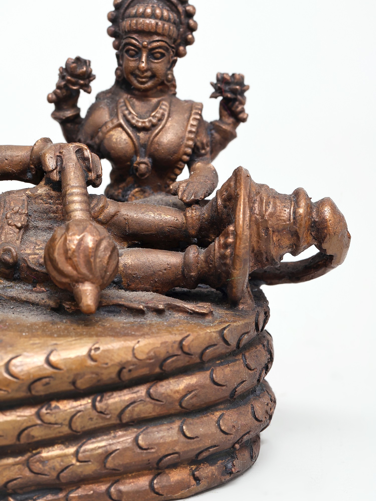 3" Small Shri Vishnu Lakshmiji on Sheshnag in Brass