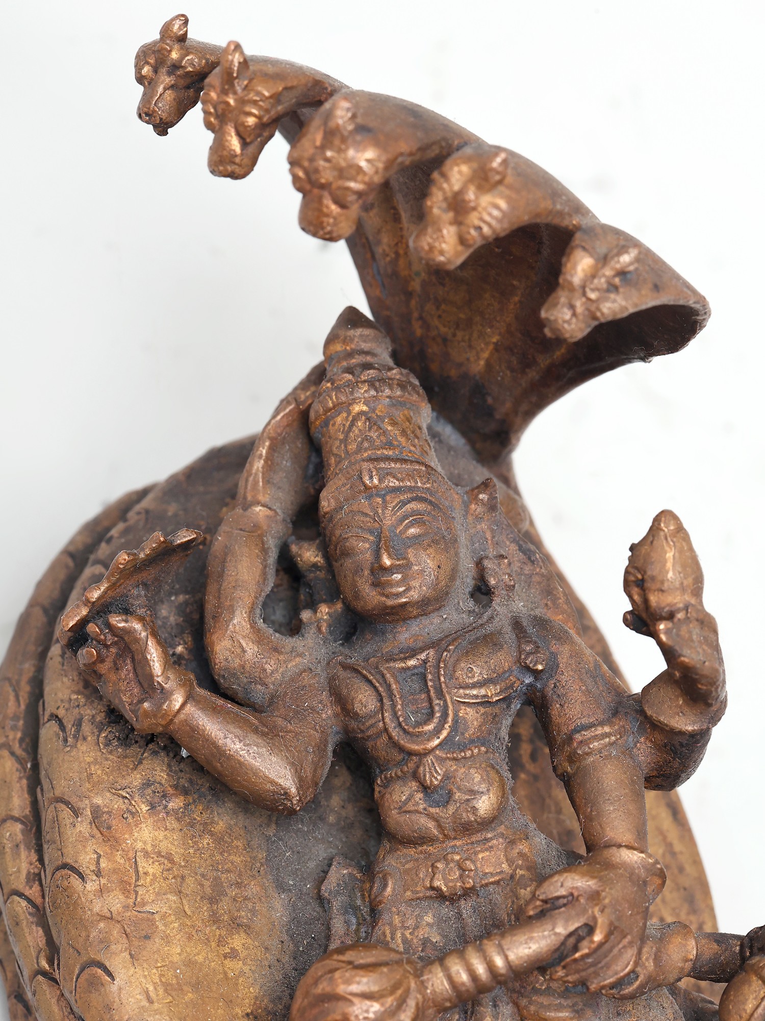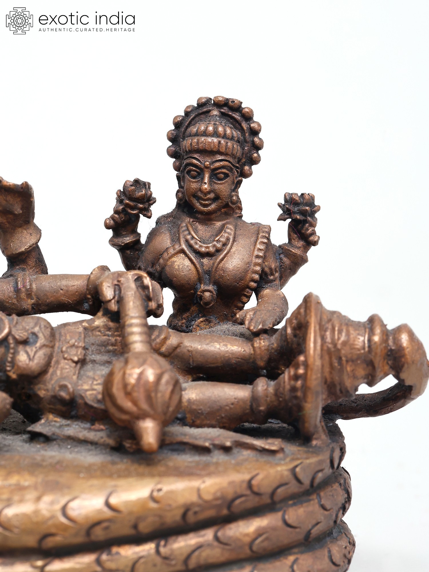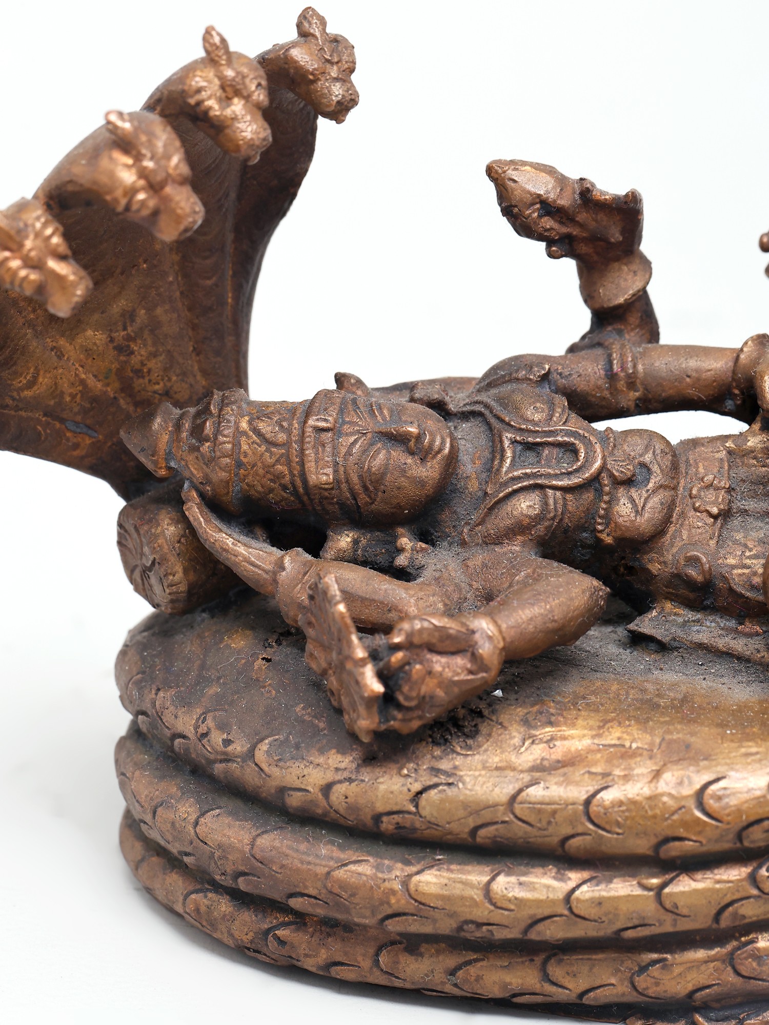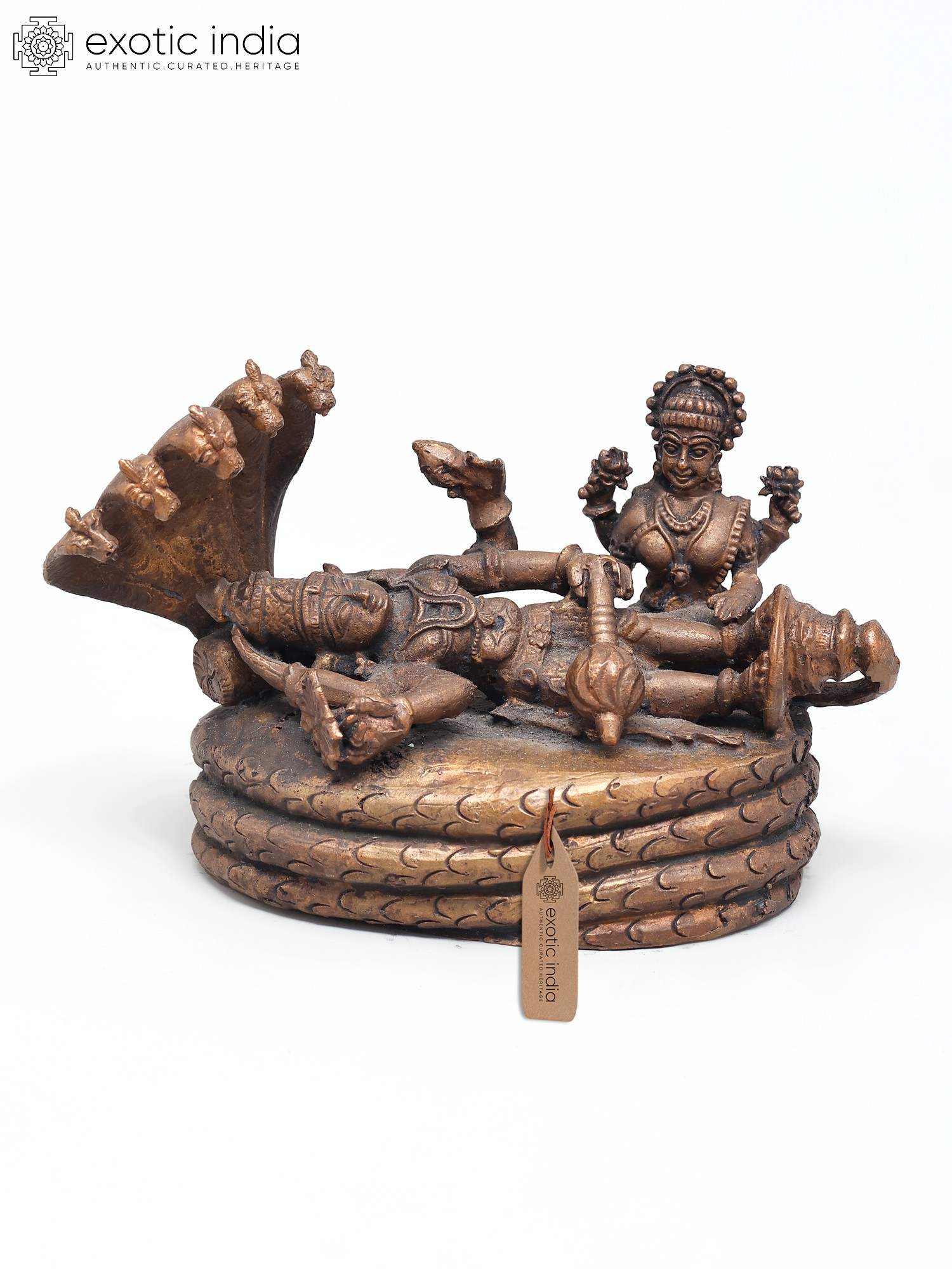 3" Small Shri Vishnu Lakshmiji on Sheshnag in Brass