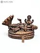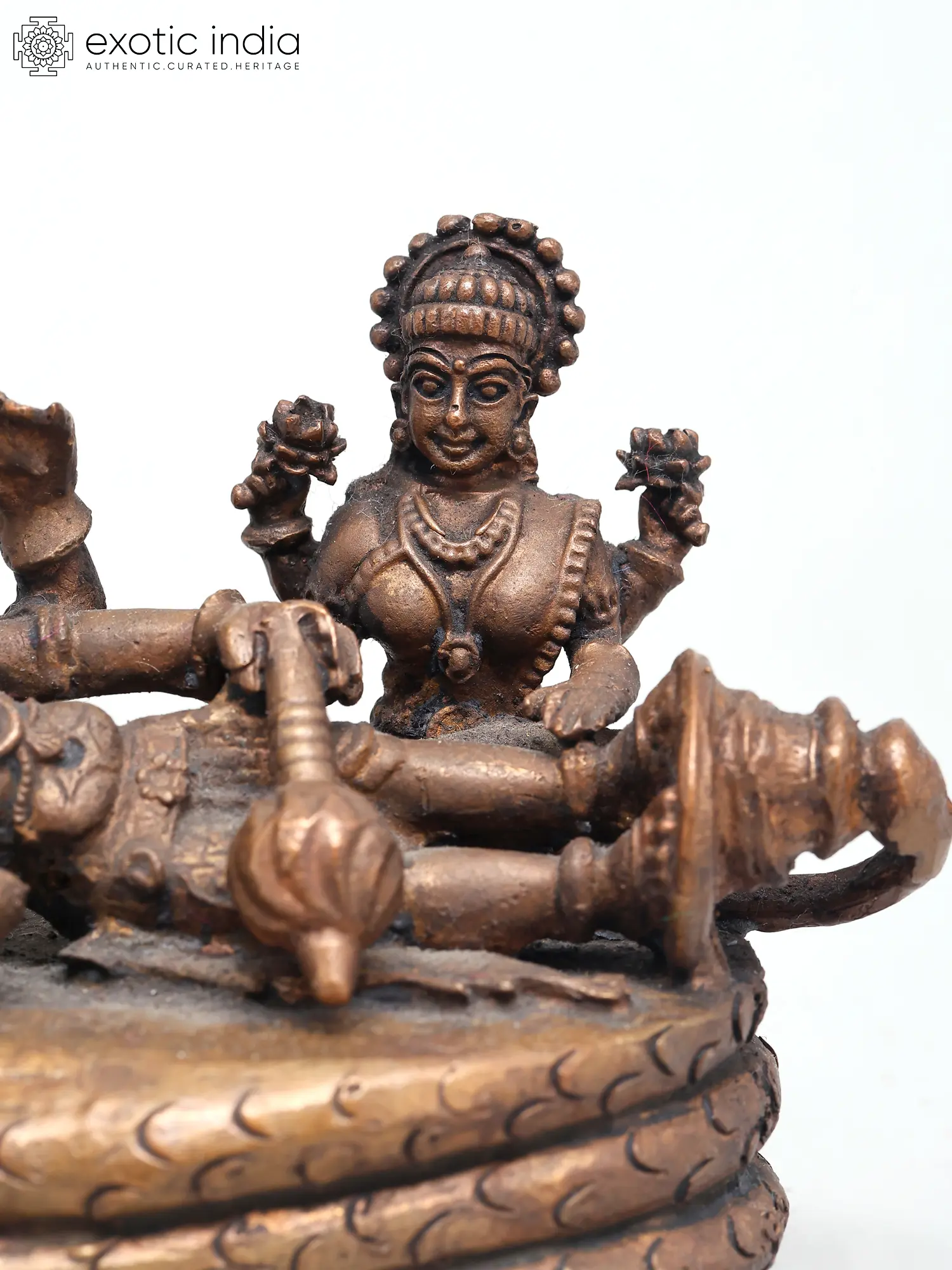 4" Small Lord Narasimha Seated with Devi Lakshmi | Copper Statue