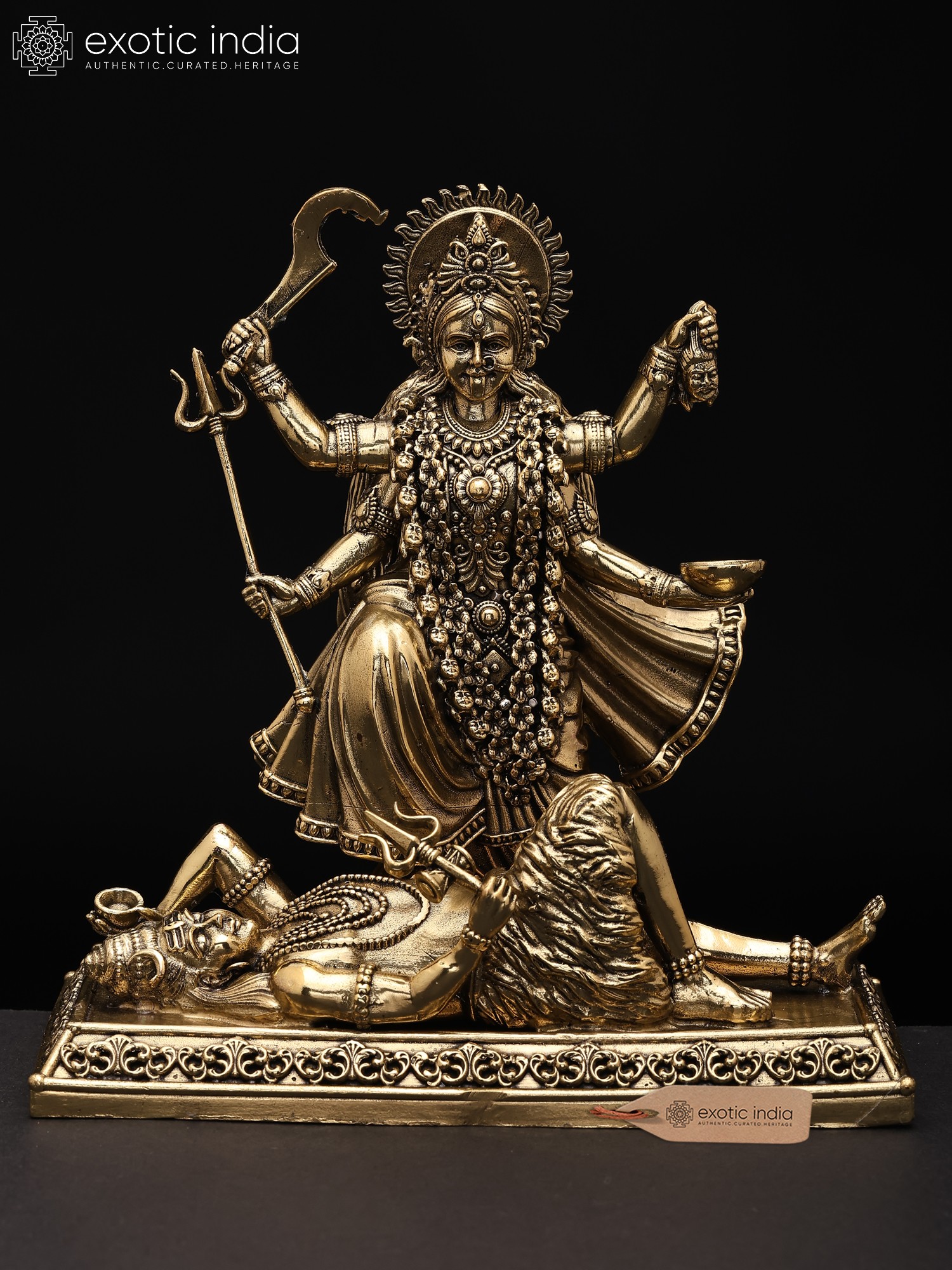 11" Brass Goddess Kali Statue Standing atop Lord Shiva