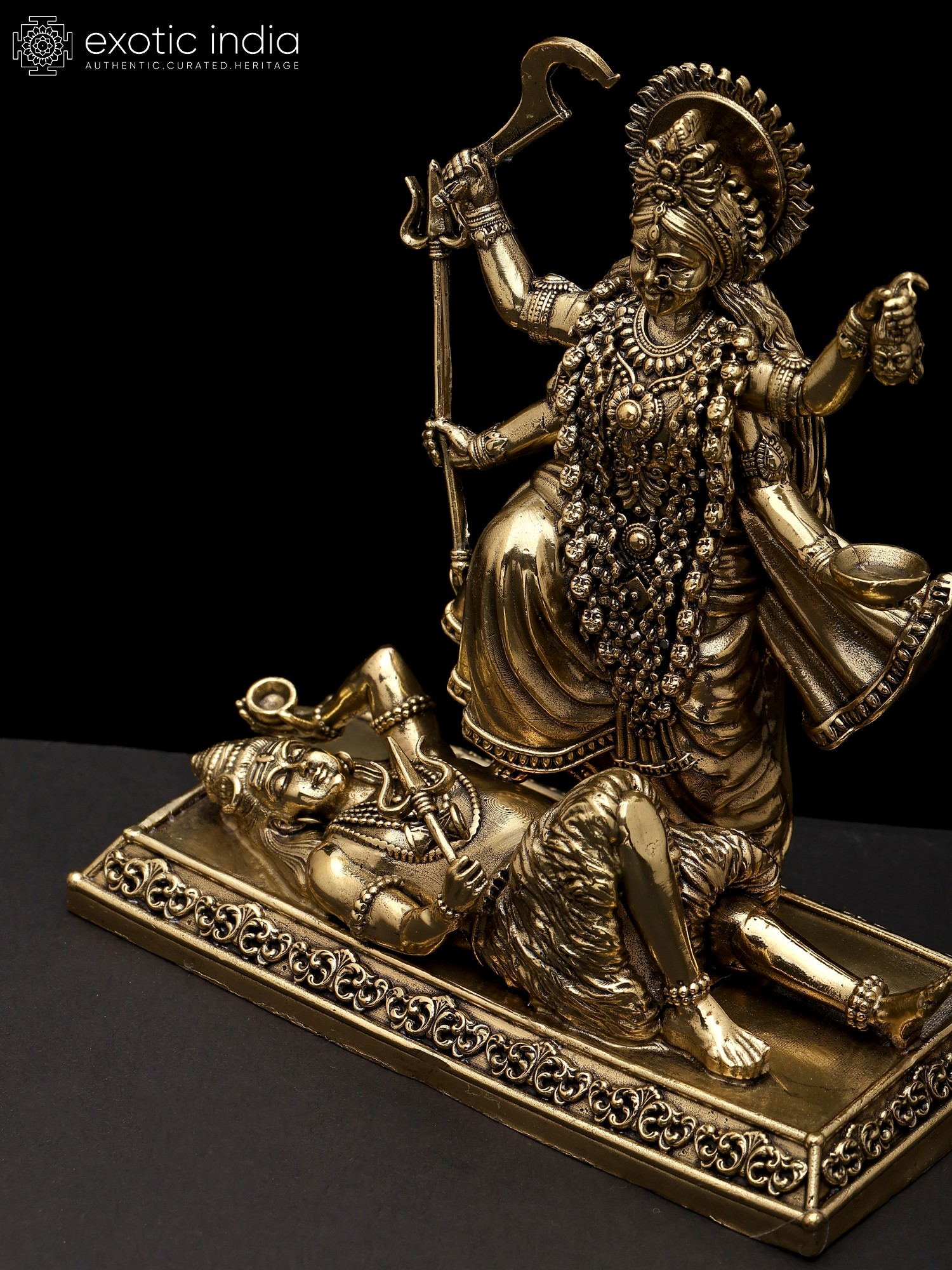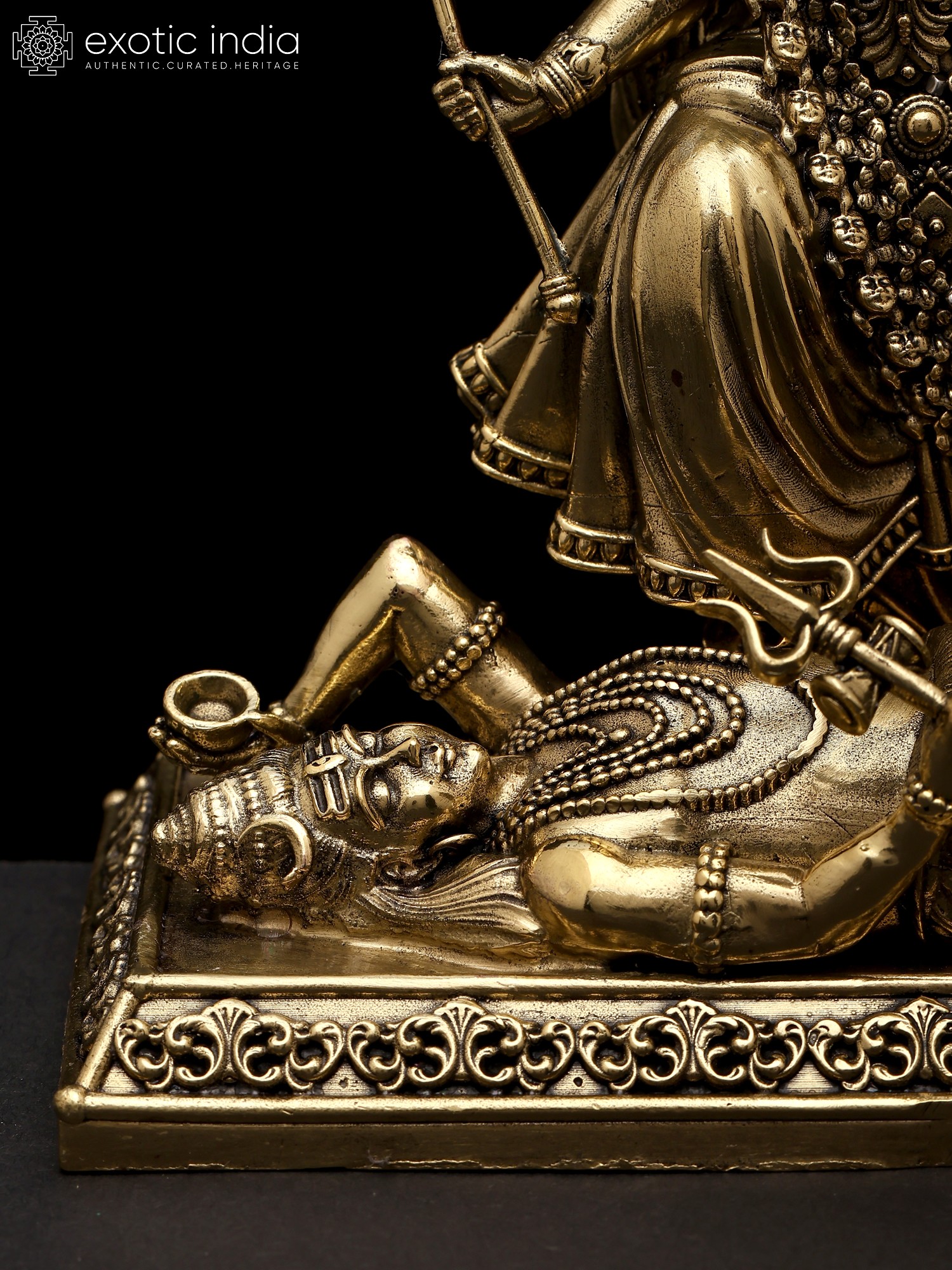 17" The Fearless Destroyer - Goddess Kali Standing on Lord Shiva | Brass Statue