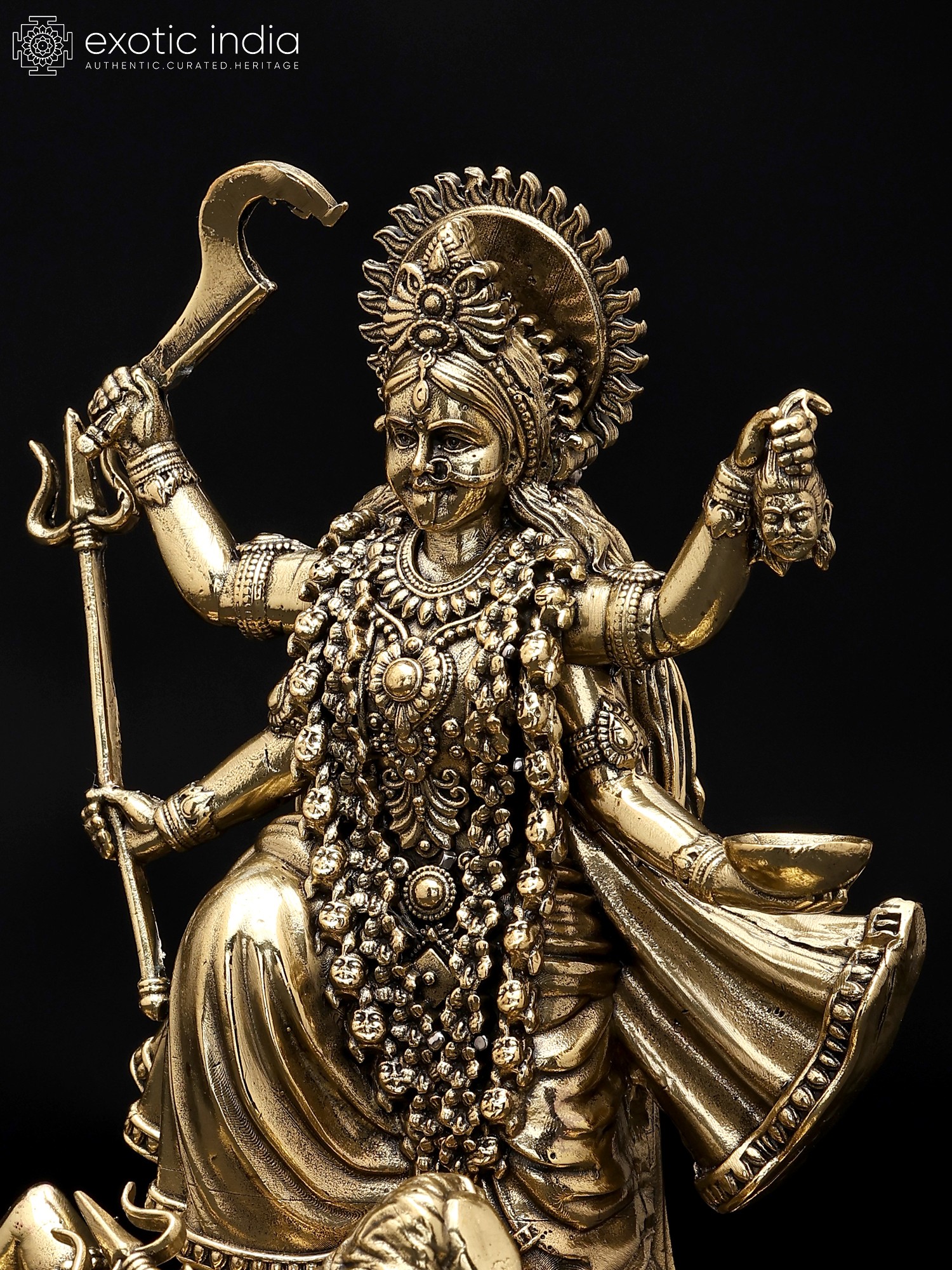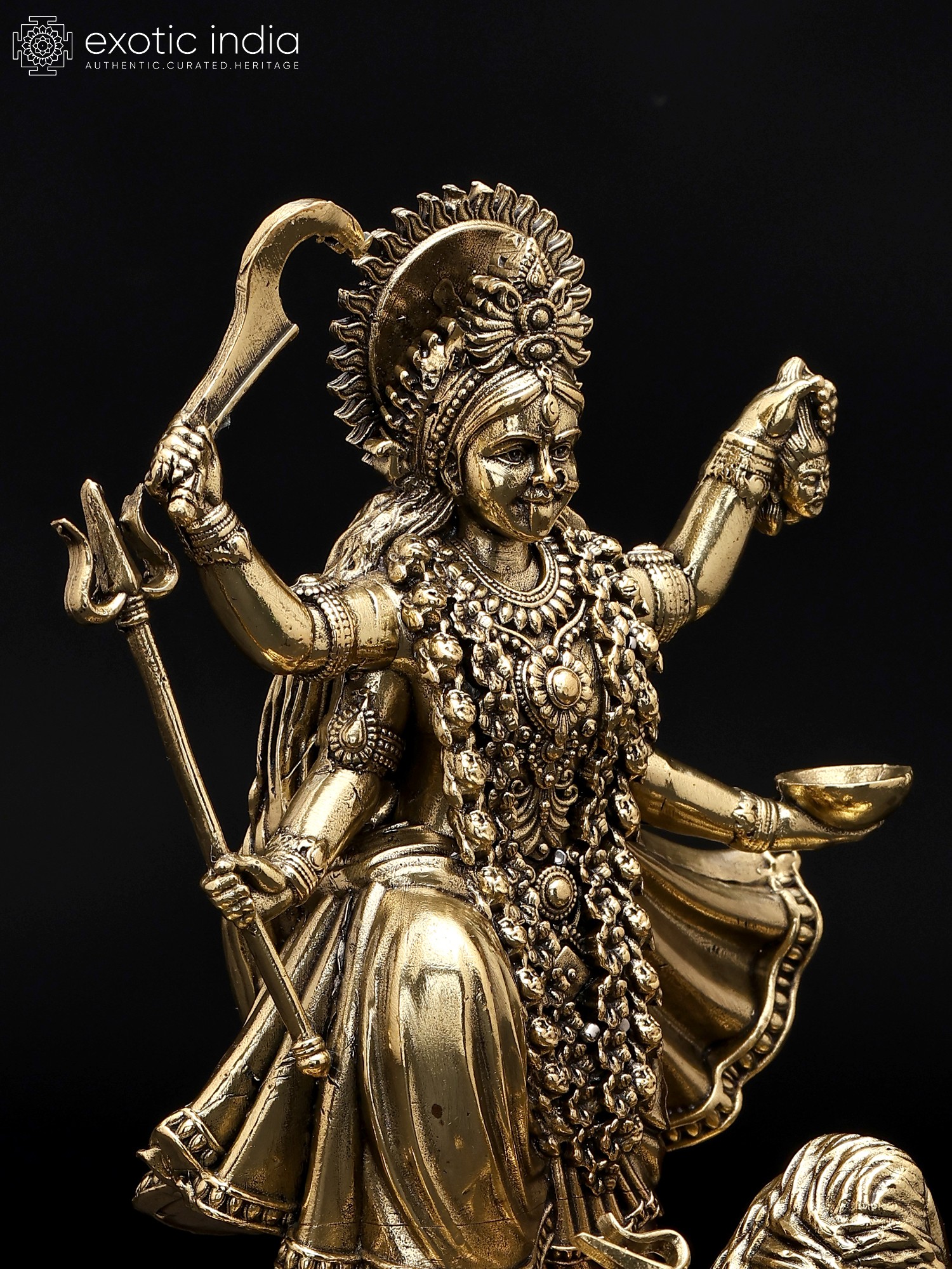 6" Goddess Kali Brass Idol | Tribal Statue