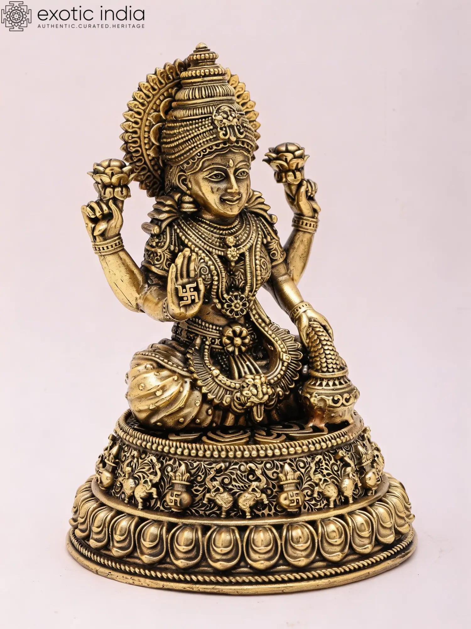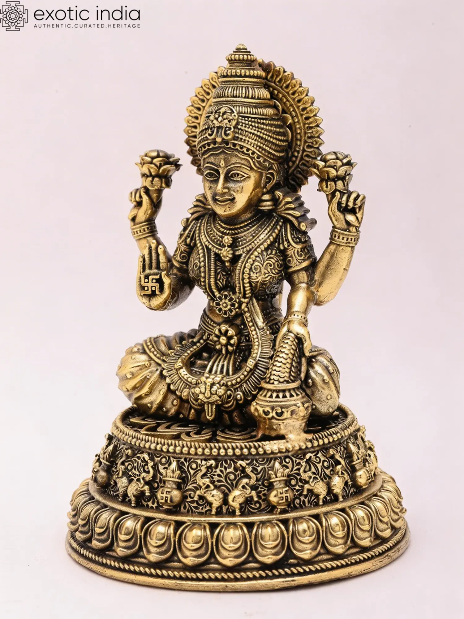 4" Small Brass Superfine Lakshmi - Ganesha Pair