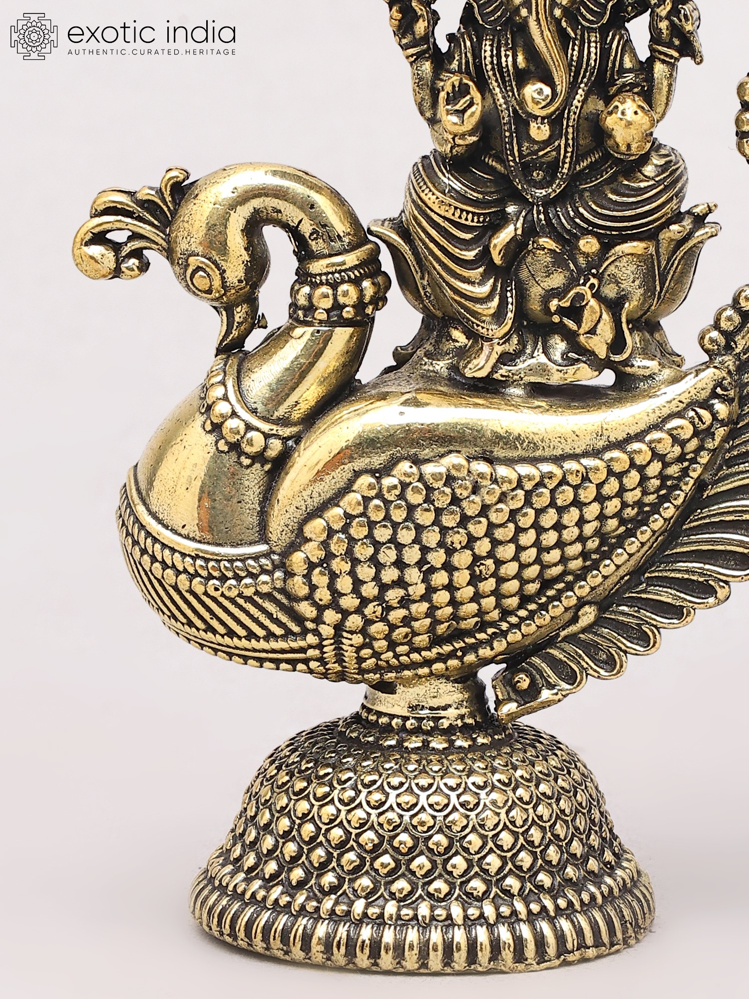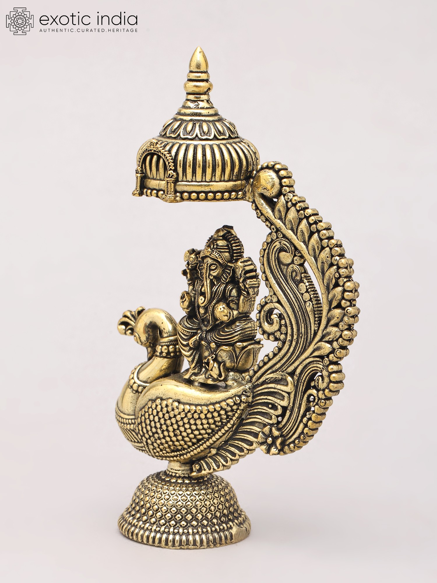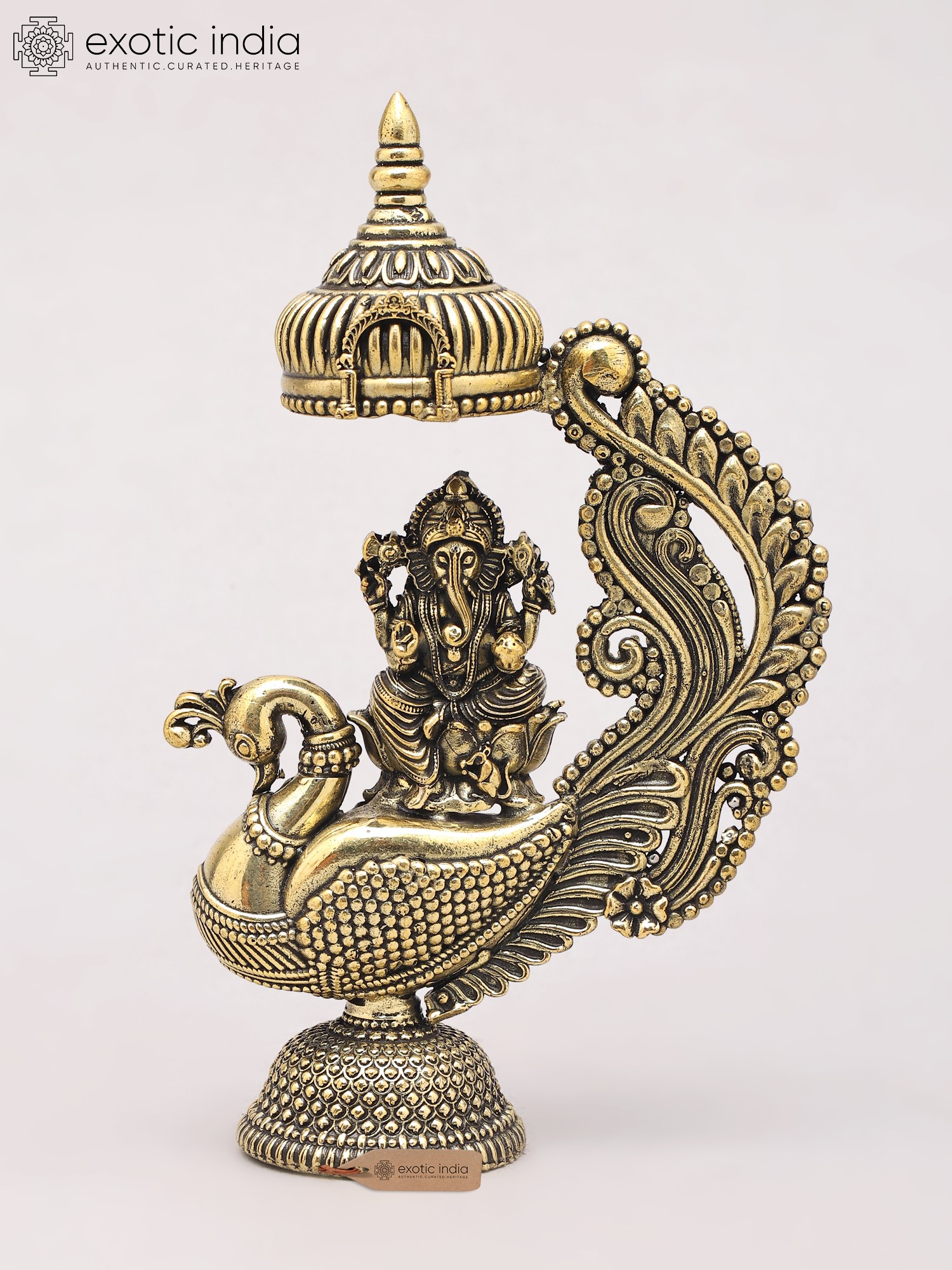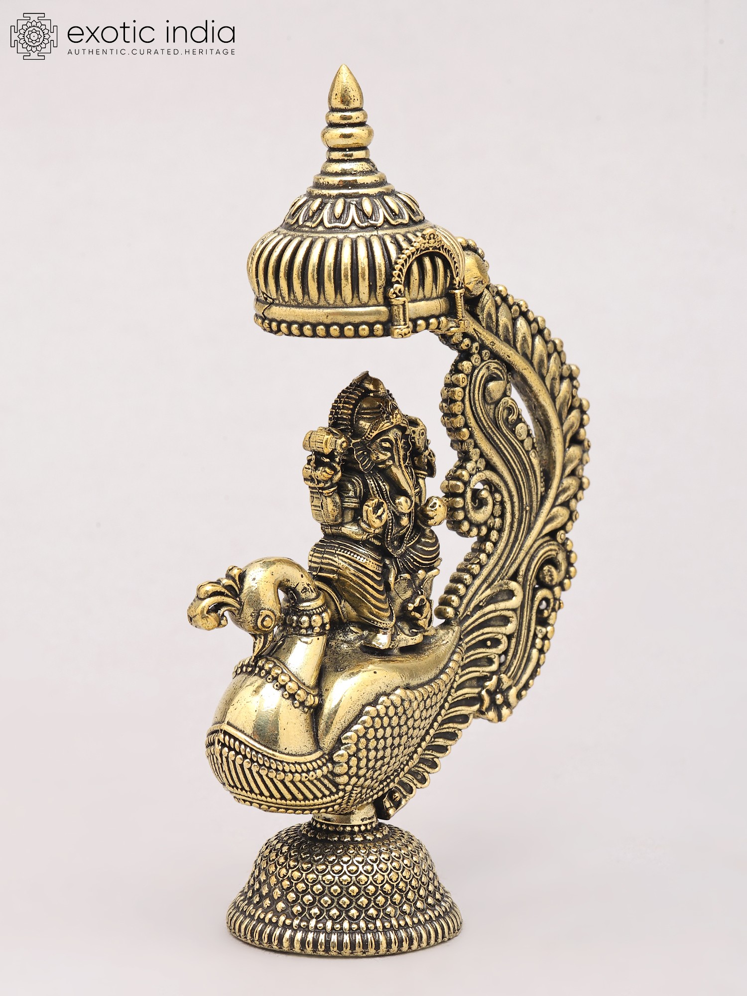 18" Lord Ganesha Statue on a Swing with Kirtimukha atop in Brass | Handmade | Made in India