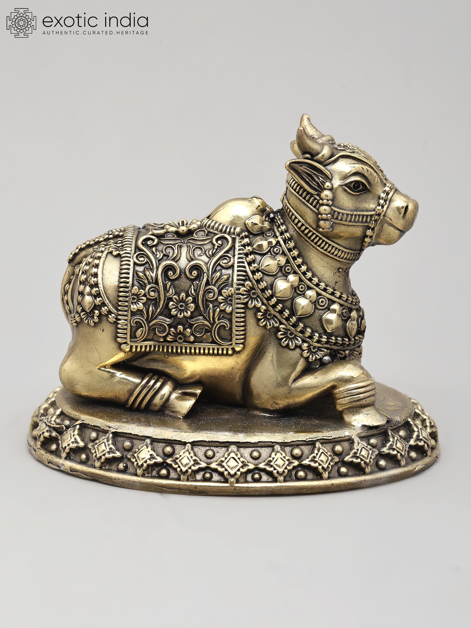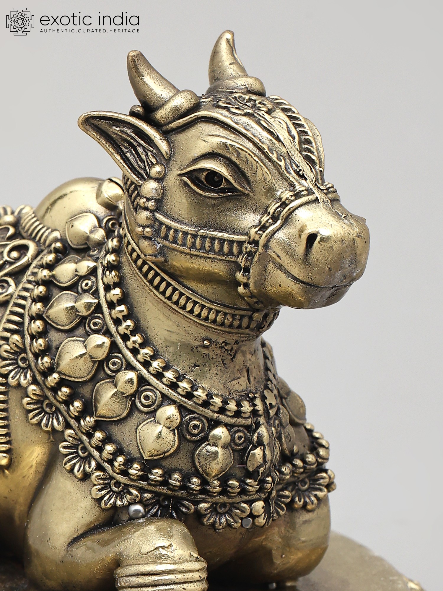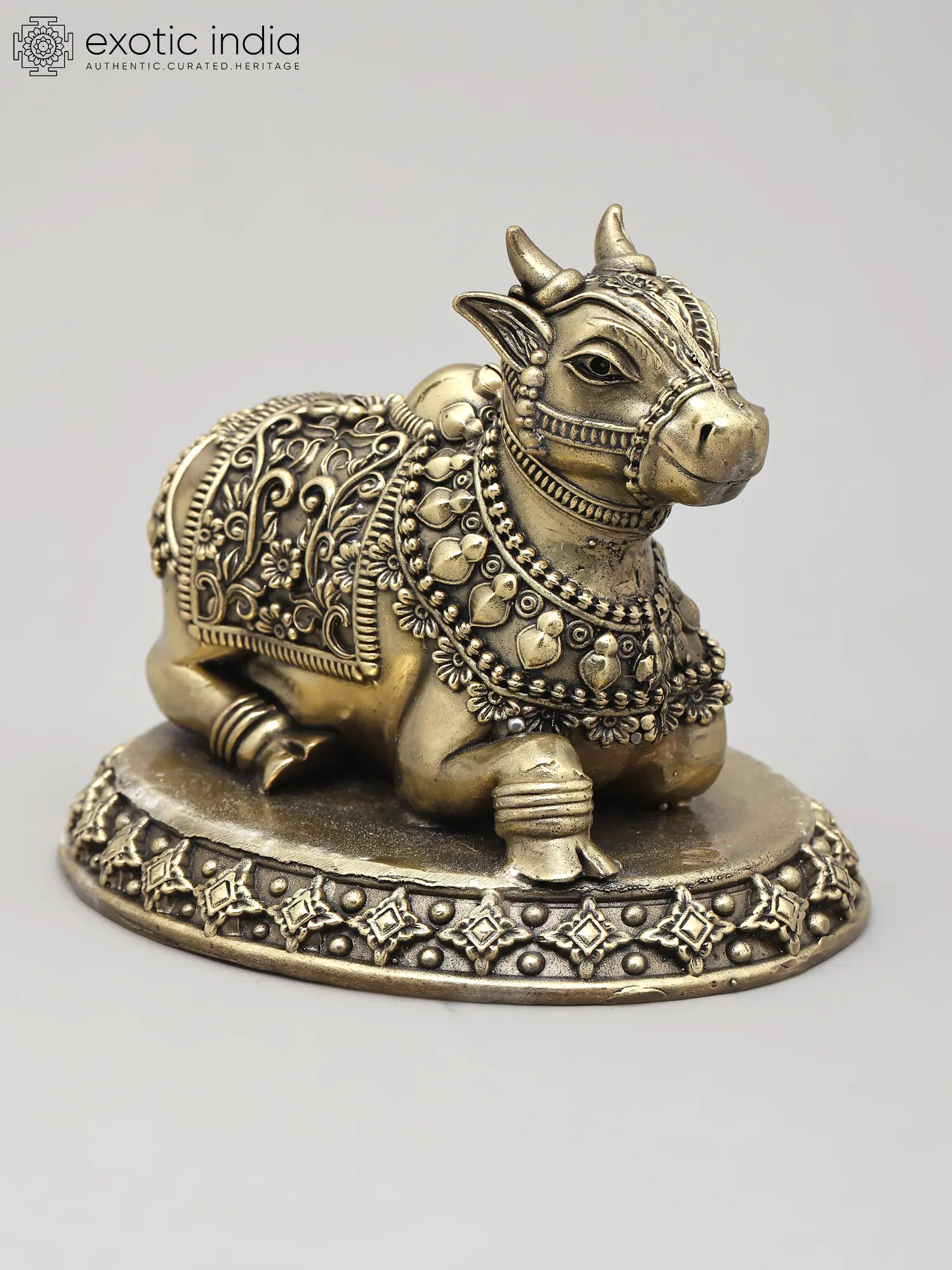 5" Small Superfine Nandi Brass Statue - Vehicle of Lord Shiva