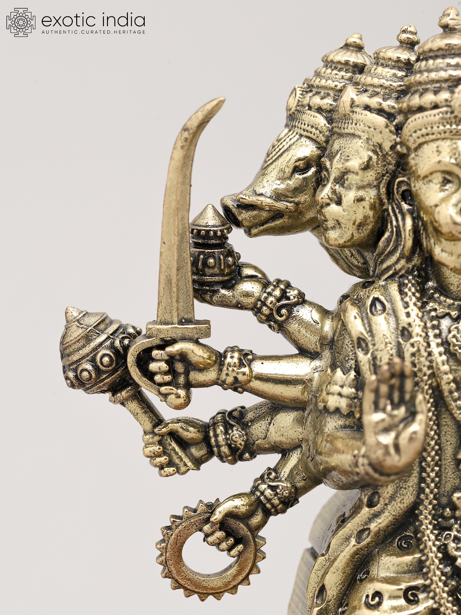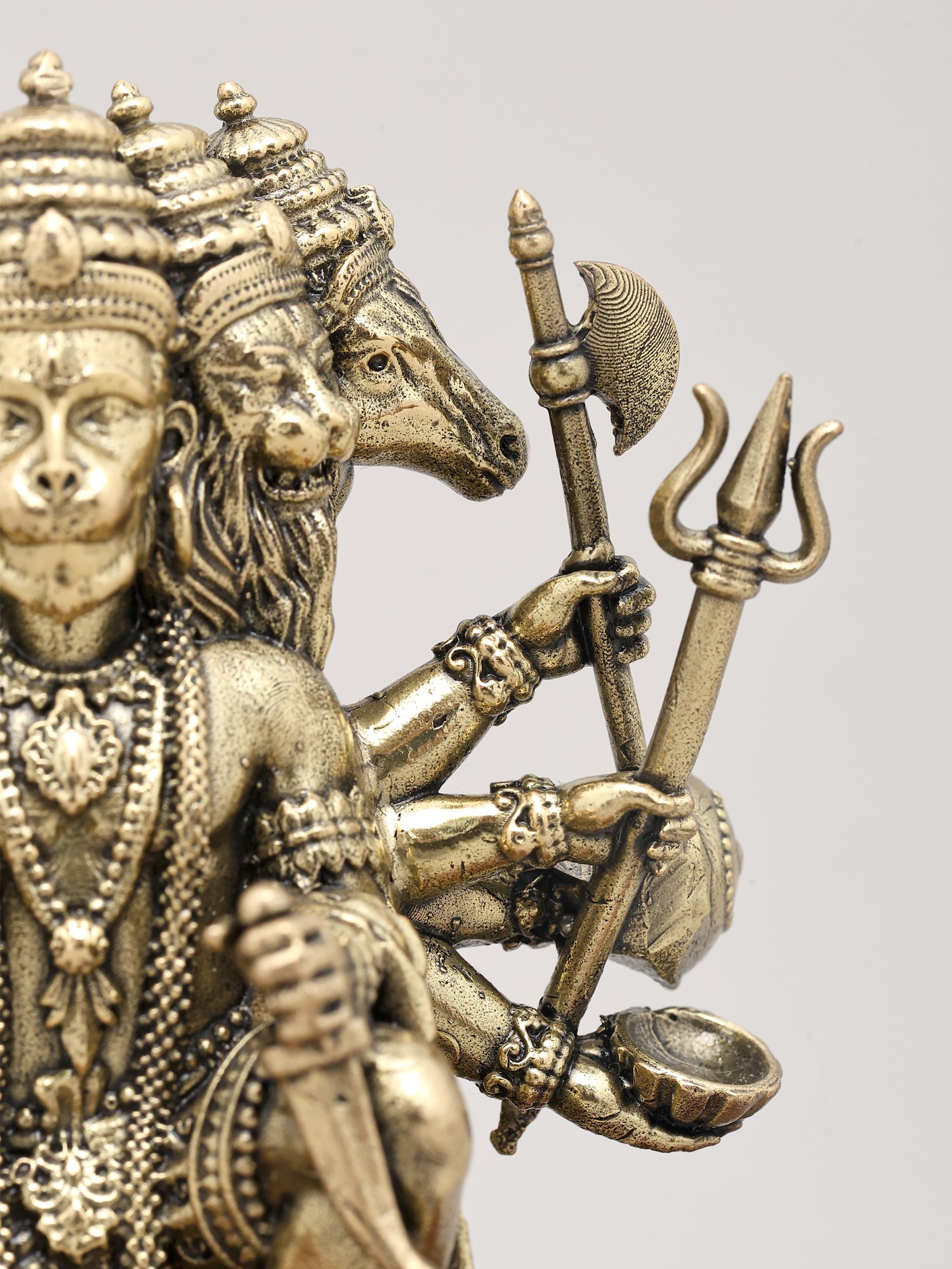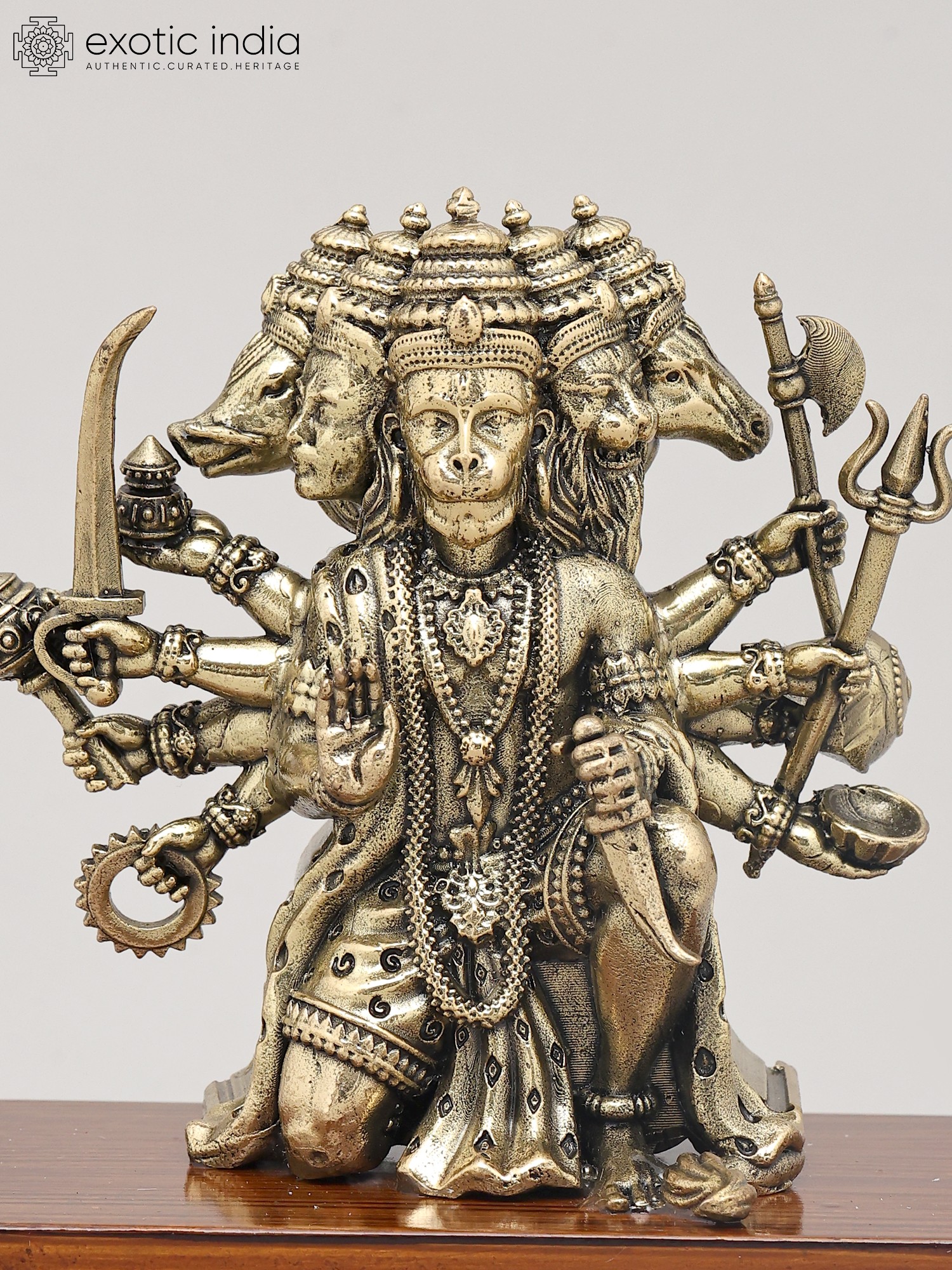 8" Five-Headed Lord Hanuman Brass Sculpture | Handmade Religious Figurine