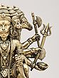 This exquisite brass statue captures the awe-inspiring Panchamukhi Hanuman, the five-faced manifestation of the revered deity. Lord Hanuman, a paragon of devotion, strength, and courage, is celebrated in Hindu mythology for his unwavering service to Lord Rama. The Panchamukhi form, however, transcends his more commonly depicted visage, embodying a cosmic power that encompasses various divine attributes. Each of the five faces represents a distinct aspect of divinity, bestowing unique boons and protection. The central face, often depicted as fierce and commanding, embodies Hanuman's own valor. Flanking it might be the faces of Narasimha (the man-lion avatar of Vishnu, representing cosmic destruction of evil), Varaha (the boar avatar, representing protection and stability), Hayagriva (the horse-necked deity, representing knowledge and power), and Garuda (the divine eagle, representing swiftness and vigilance). This multi-faceted representation signifies Hanuman's omnipresence and his ability to overcome any obstacle through divine intervention.