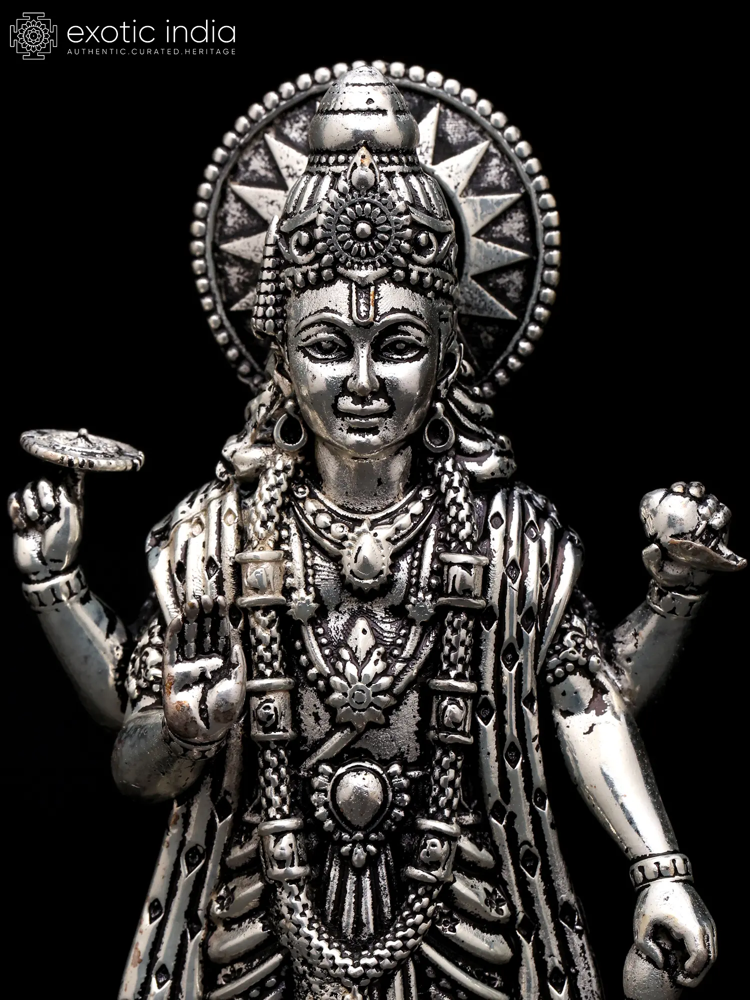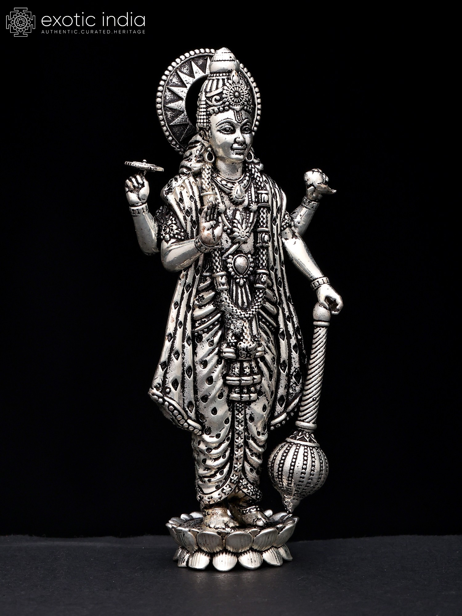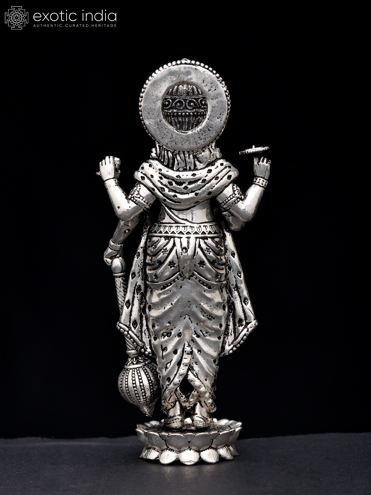 9" Four-Armed Standing Vishnu In Brass | Handmade | Made In India
