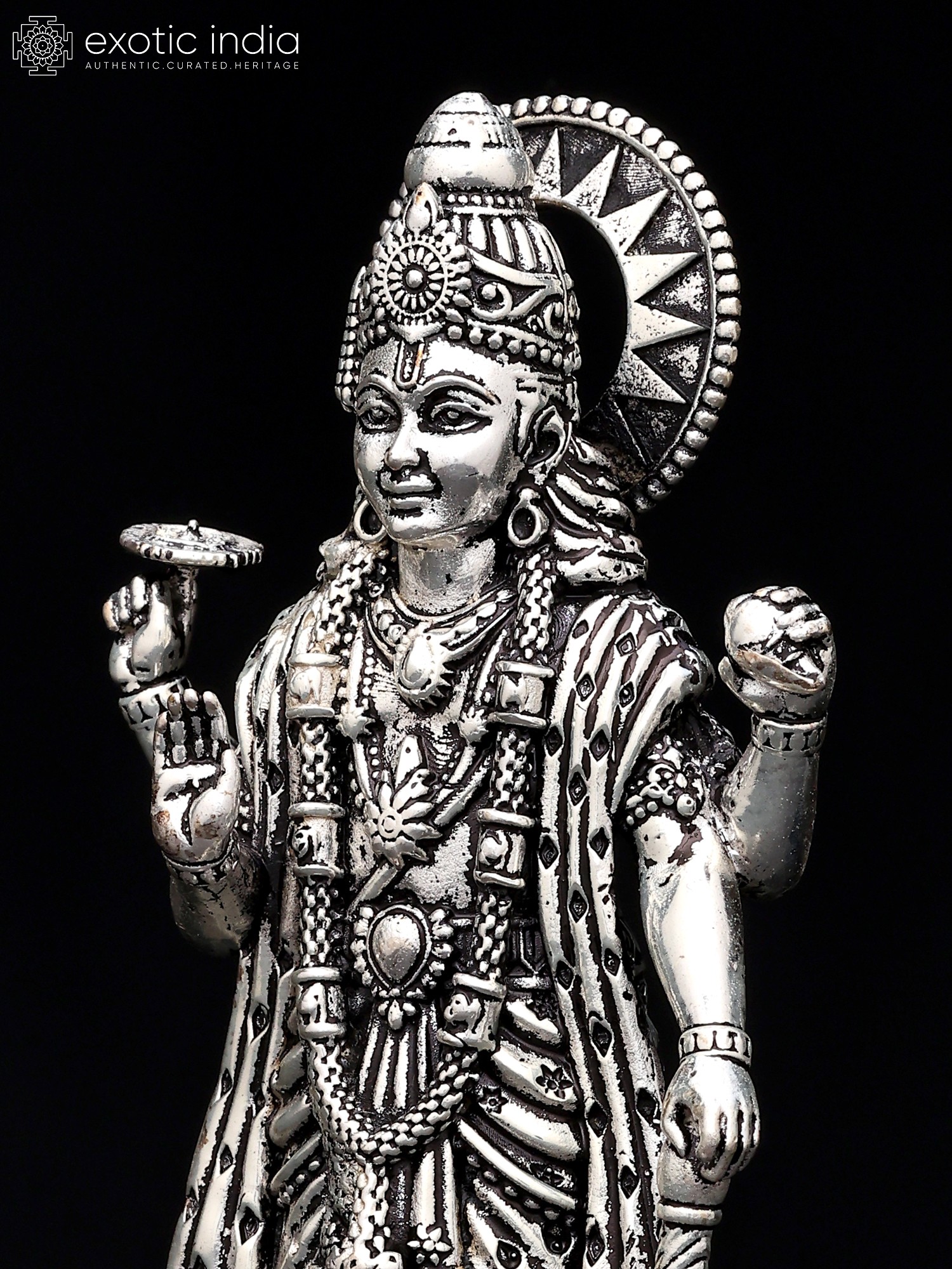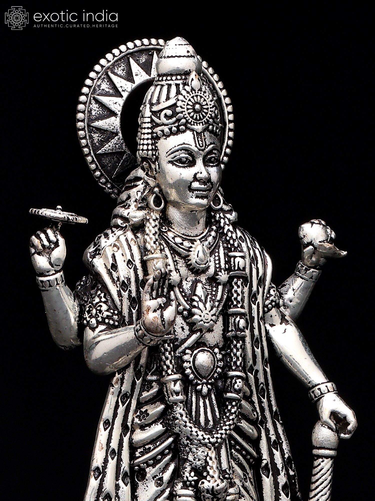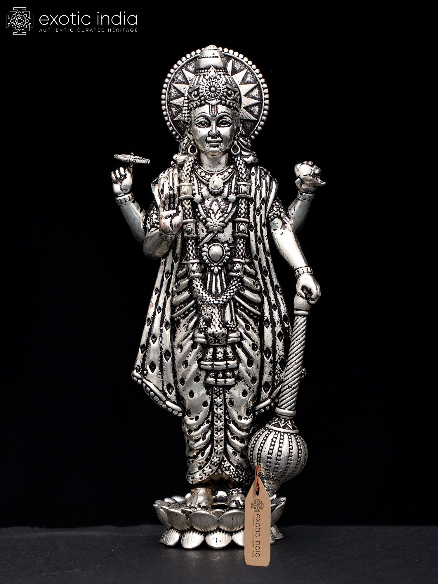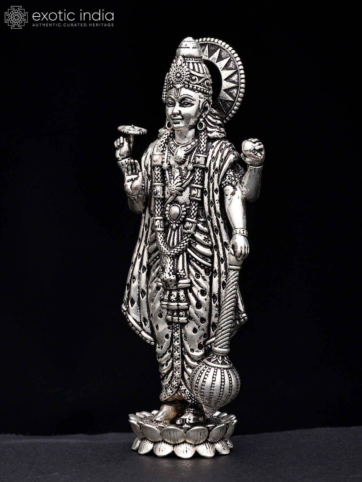 9" Four-Armed Standing Vishnu In Brass | Handmade | Made In India