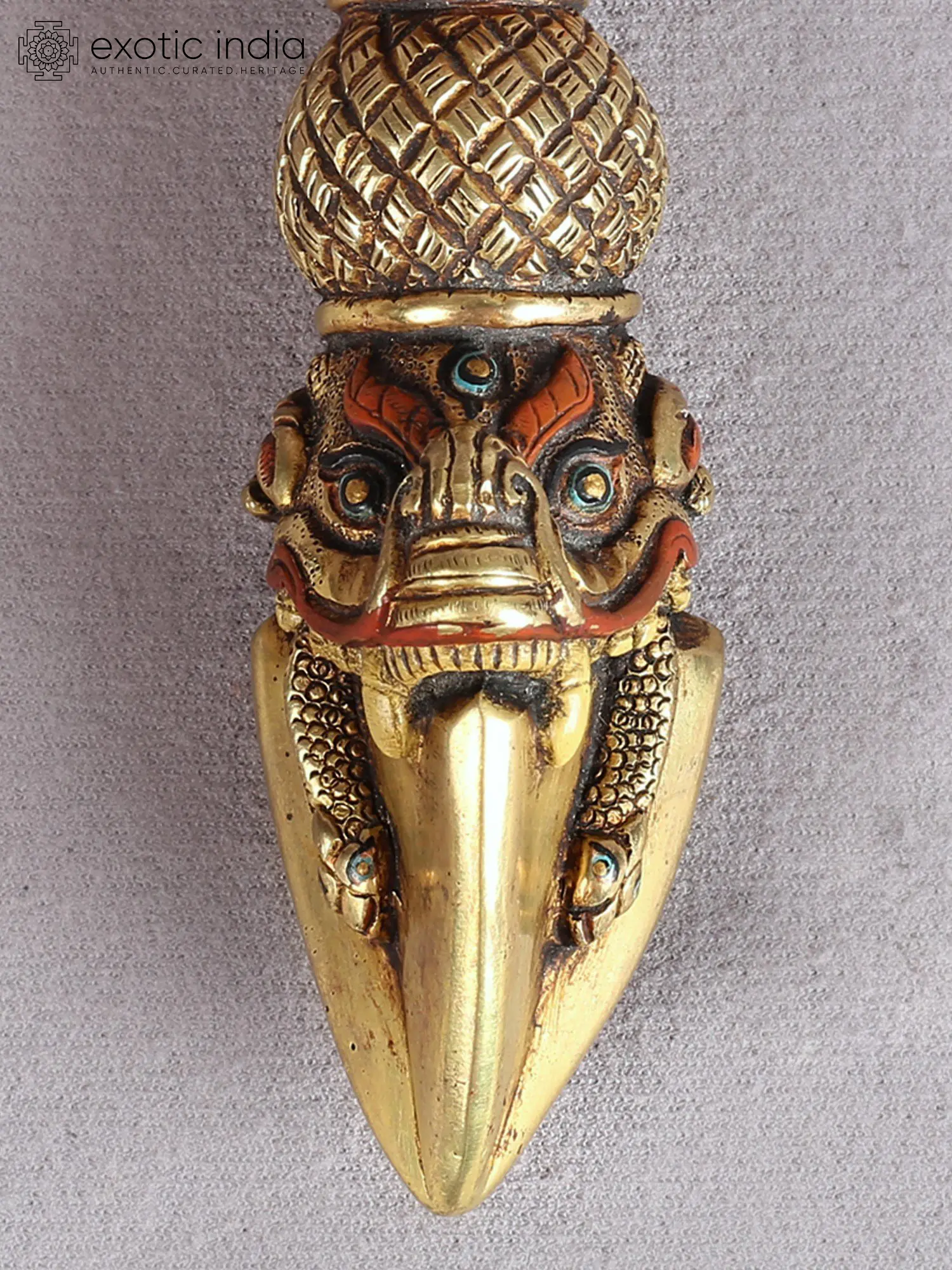 Nepalese and Tibetan Buddhism as a religious tradition gives tremendous significance to ritual objects, which are believed to hold potent energies of the divine, which are transferred and magnified in the devotee during the course of the ritual meditation. This superfine copper Phurba or Phurpa is essentially a sacred blade, a symbol of the Buddhist Vajrayana deity Vajrakila who resides in the Phurba and destroys negativity and evil energies.