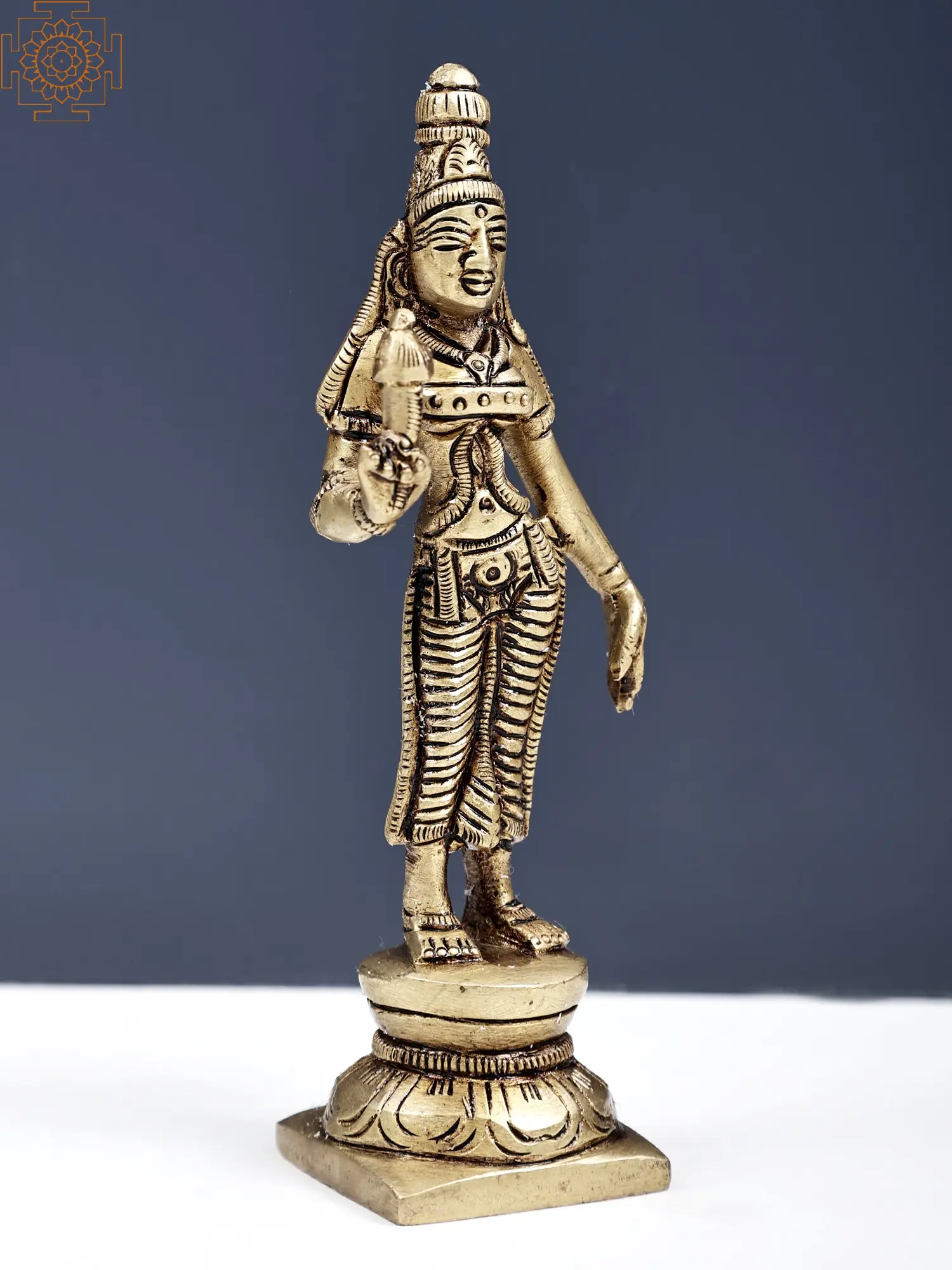5" Standing Devi Uma Statue | Devi Parvati Brass Idols | Handmade