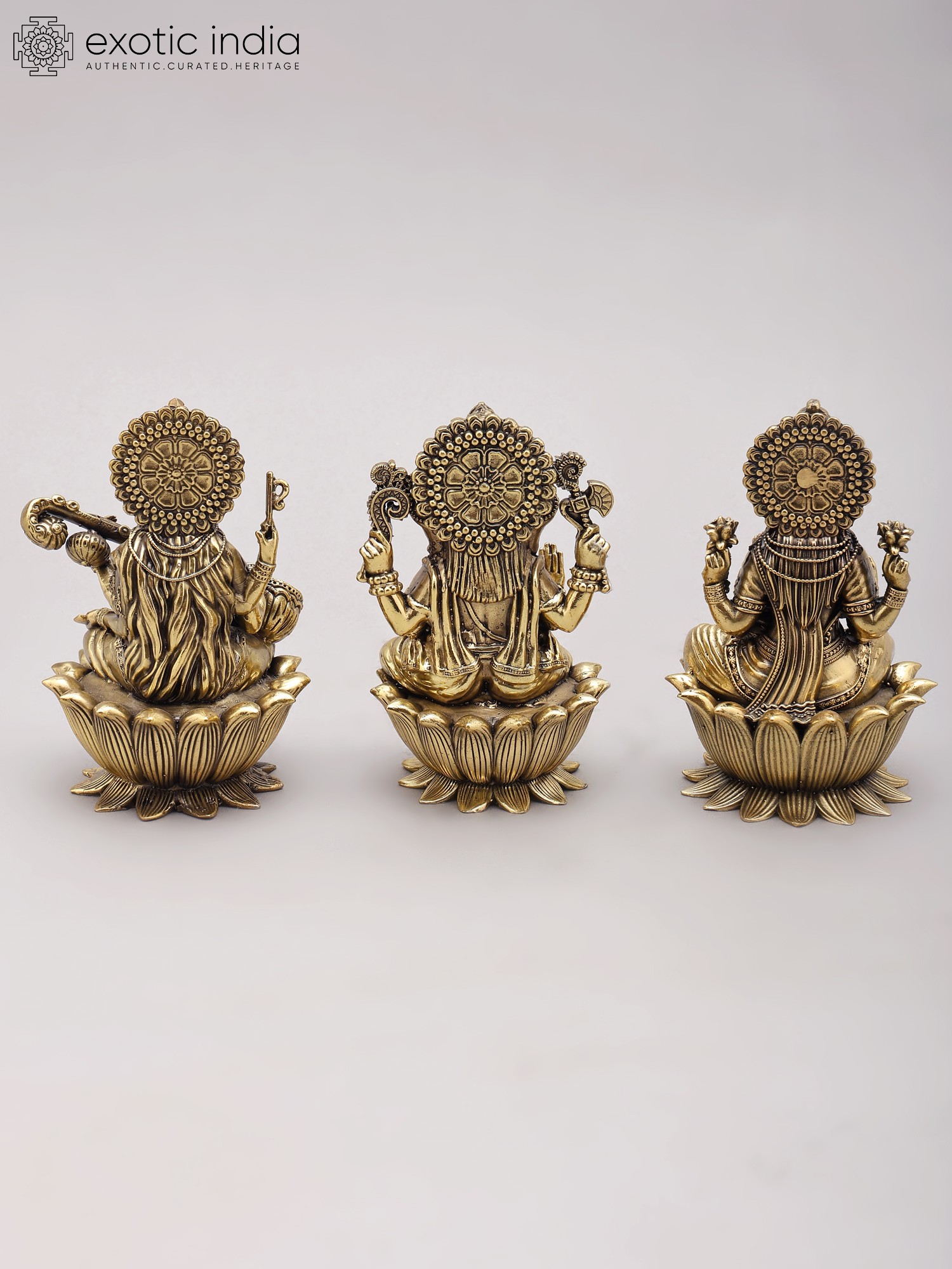 Each deity is intricately crafted in brass, showcasing superfine detailing and a rich metallic finish.