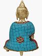 This form acts as shield to keep out negativity and danger and help the disciples to not restrict their lives, by making them overcome their fears. Garbed in a dual colored robe, blue in the top and red at the bottom with symmetrical square tiles of reconstituted stones; circular bordered chain acts as an enticement to the blunt colors.