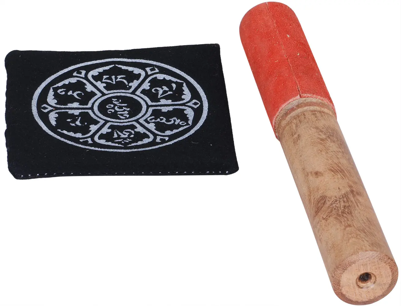The surface of this Singing Bowl comes alive with the intricate Ashtamangala design, a tapestry of ancient symbols representing the eight auspicious signs of the Buddhist tradtiton. With each gentle stroke of the mallet against its rim, the bowl resonates, weaving a melody that seems to echo the wisdom contained within these symbols. As the vibrations fill the air, they carry with them the essence of eternal truths and spiritual insights.