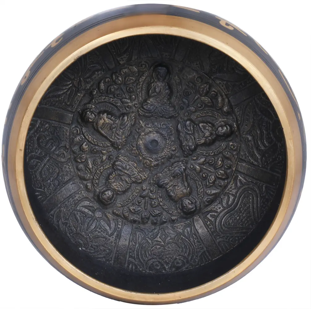 5" Tibetan Buddhist Singing Bowl with Five Dhyani Buddhas Inside In Brass | Handmade | Made In India