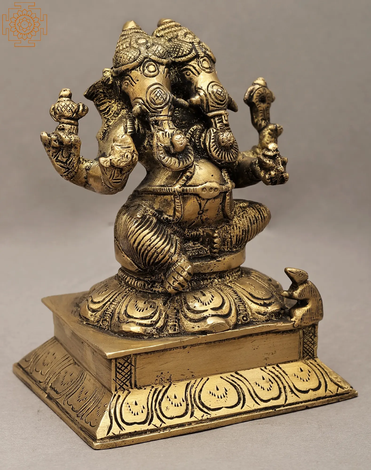 Explore the unique and rare presentation of Dwi Mukhi in this handcrafted brass sculpture, meticulously made in India. Ganesha, the remover of obstacles, is a beloved deity in Hindu philosophy. This distinctive representation of Ganesha symbolises his multifaceted abilities and wisdom. The craftsmanship and creativity in this sculpture make it a standout bestseller, ideal for worship and aesthetic appreciation. Welcome the blessings of the two-headed Ganesha, as you embrace a new perspective on life's challenges.