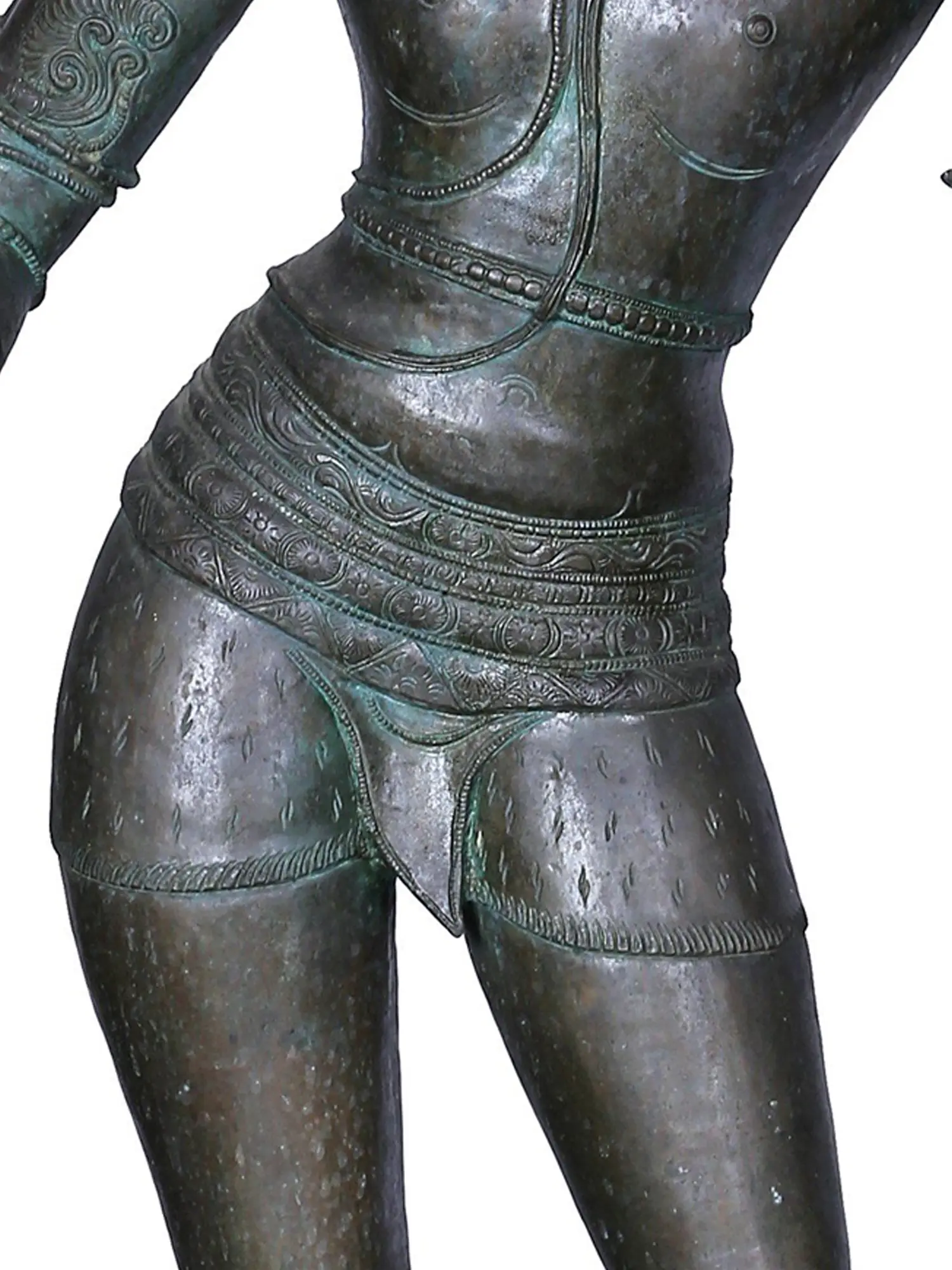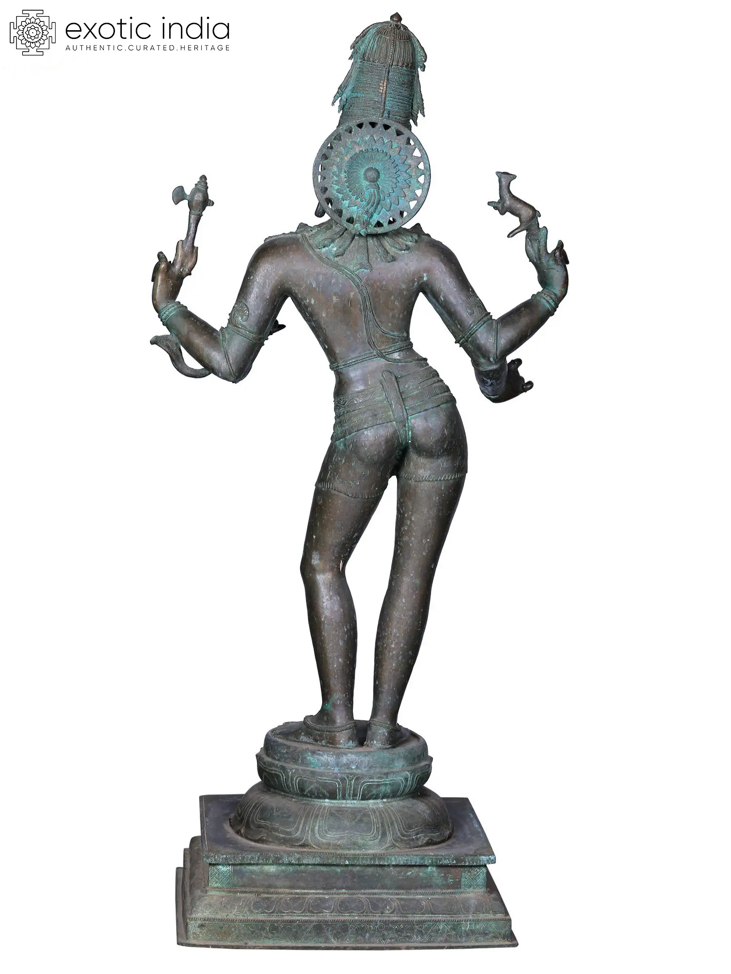 In a waved stance, this clean edged bronze idol of Pashupati narrates the nurturing aspect of Lord Shiva. Pashupati literally translates to the ‘guardian of animals’, known for his affinity with various animals Shiva here is seen carrying the Naga king Vasuki, in his forward hand while the back hand at the opposite side holds a deer. Pashupati has historically been revered in the Indian Subcontinent and his prime temple PashupatiNath is located in Kathmandu, Nepal which is also the oldest Hindu temple in the country.