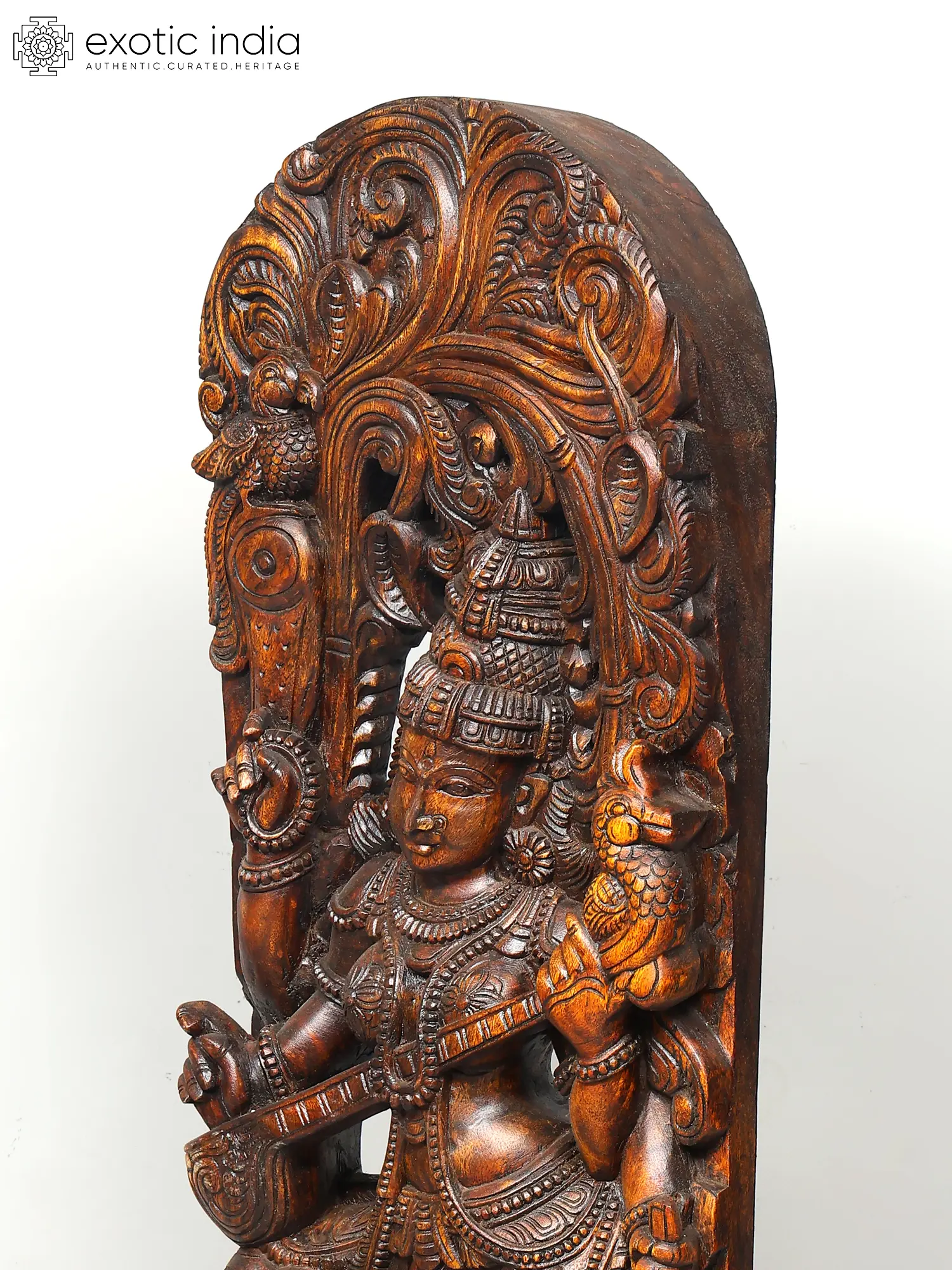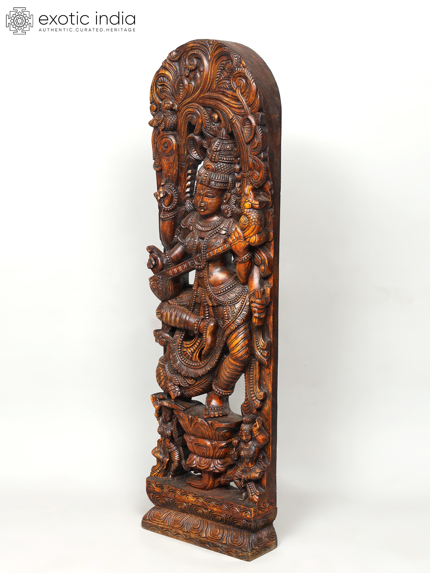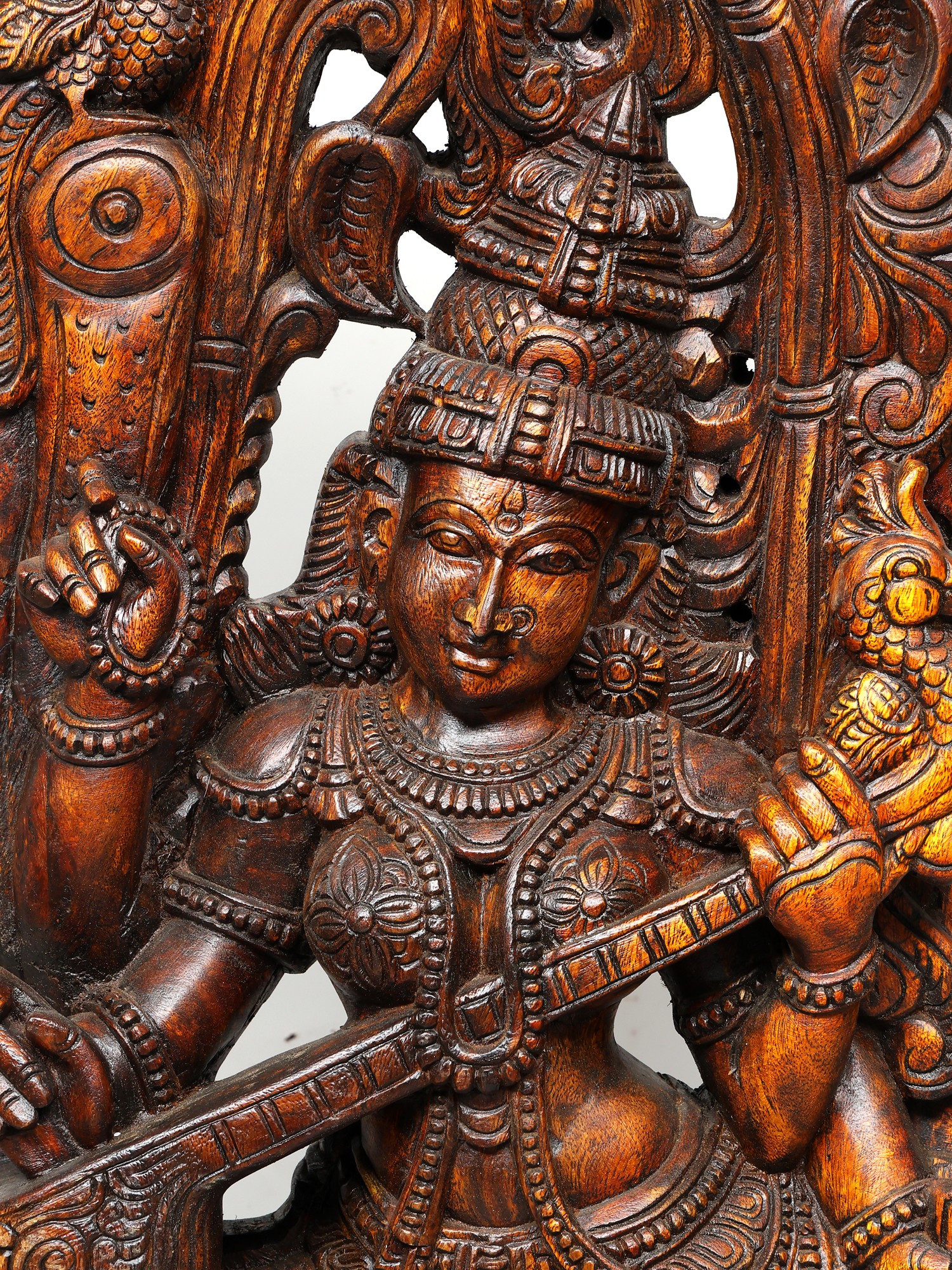 72" Dancing Goddess Saraswati with Kirtimukha Arch | Wood Carving