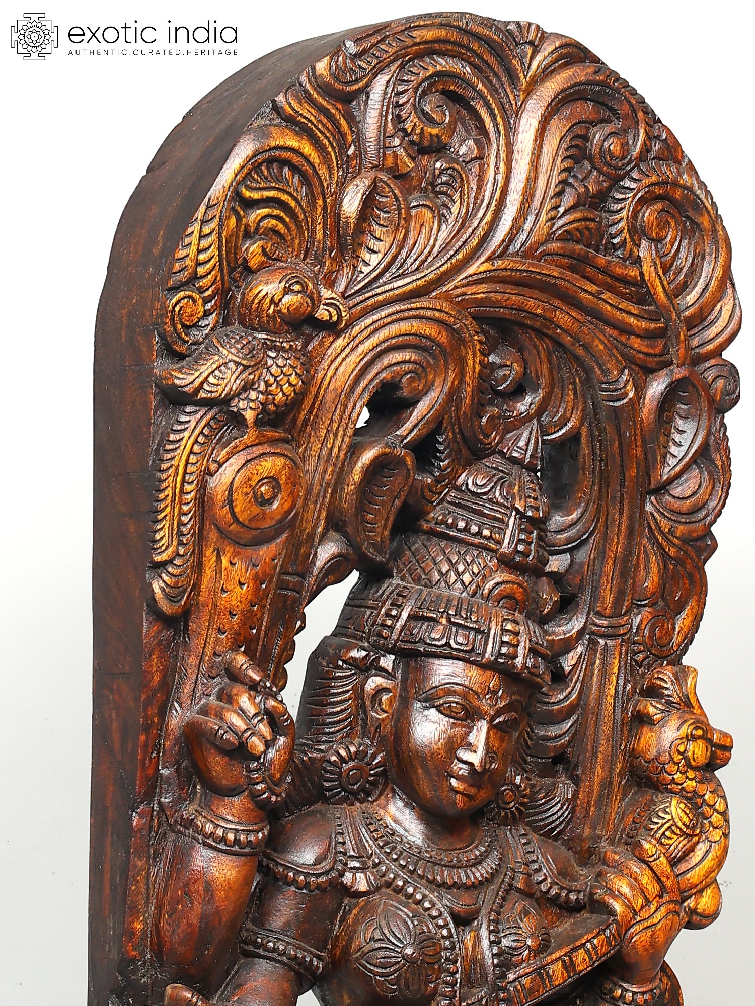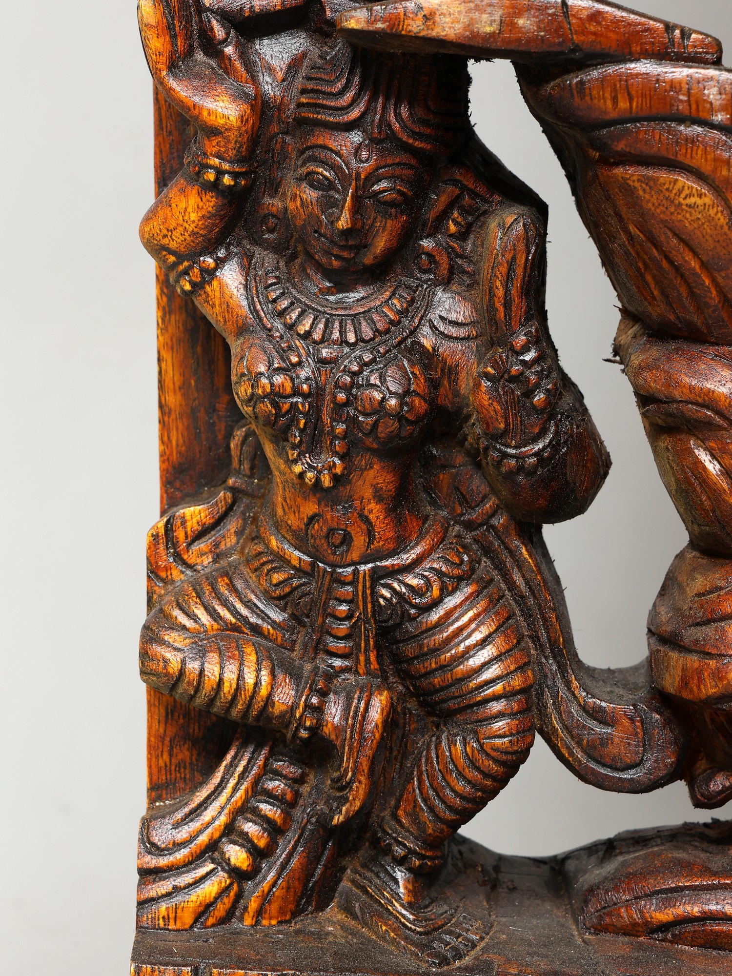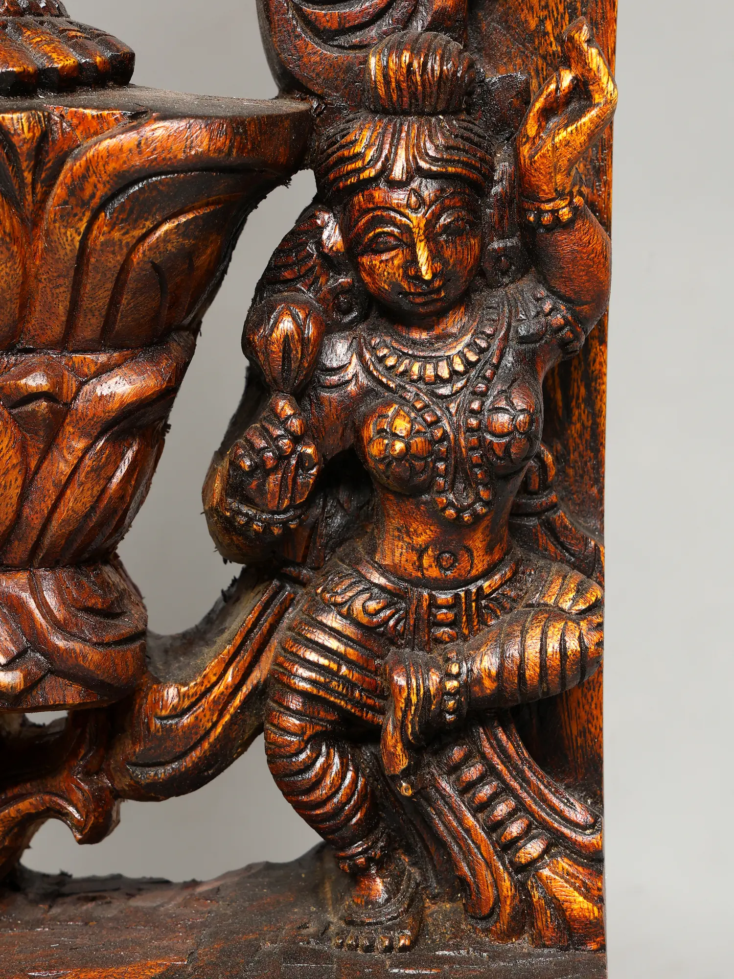 18" Pair of Goddess Lakshmi and Saraswati Kavadi Wall Panels | Wood Carving