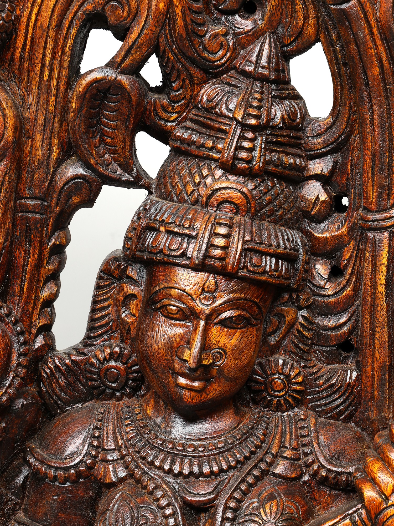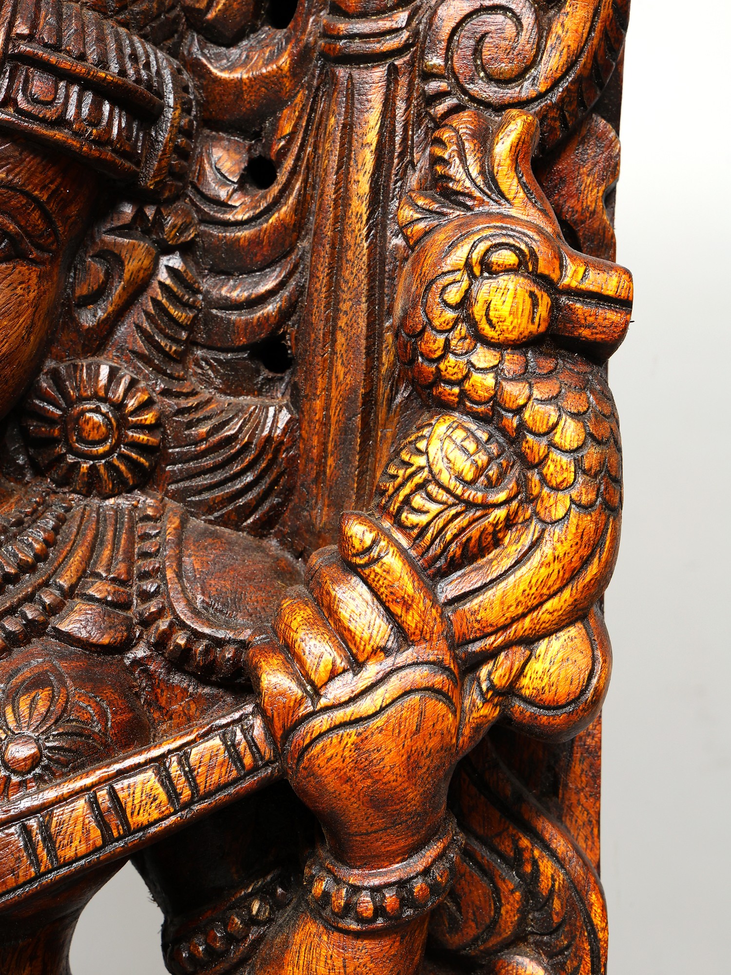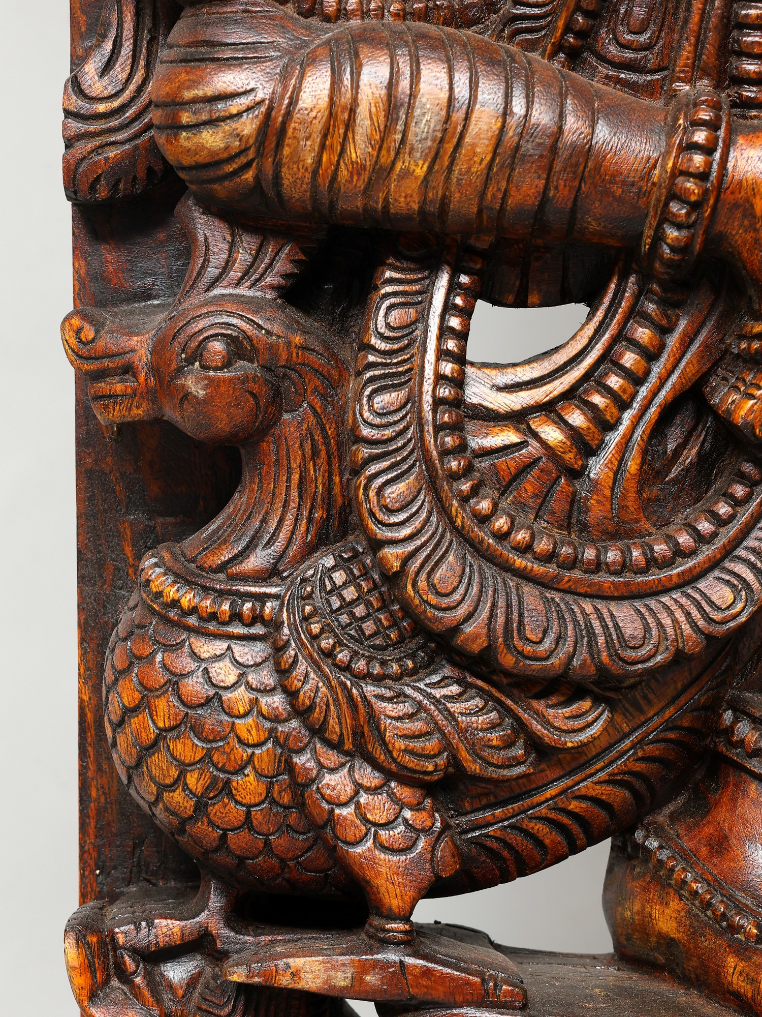 18" Pair of Goddess Lakshmi and Saraswati Kavadi Wall Panels | Wood Carving