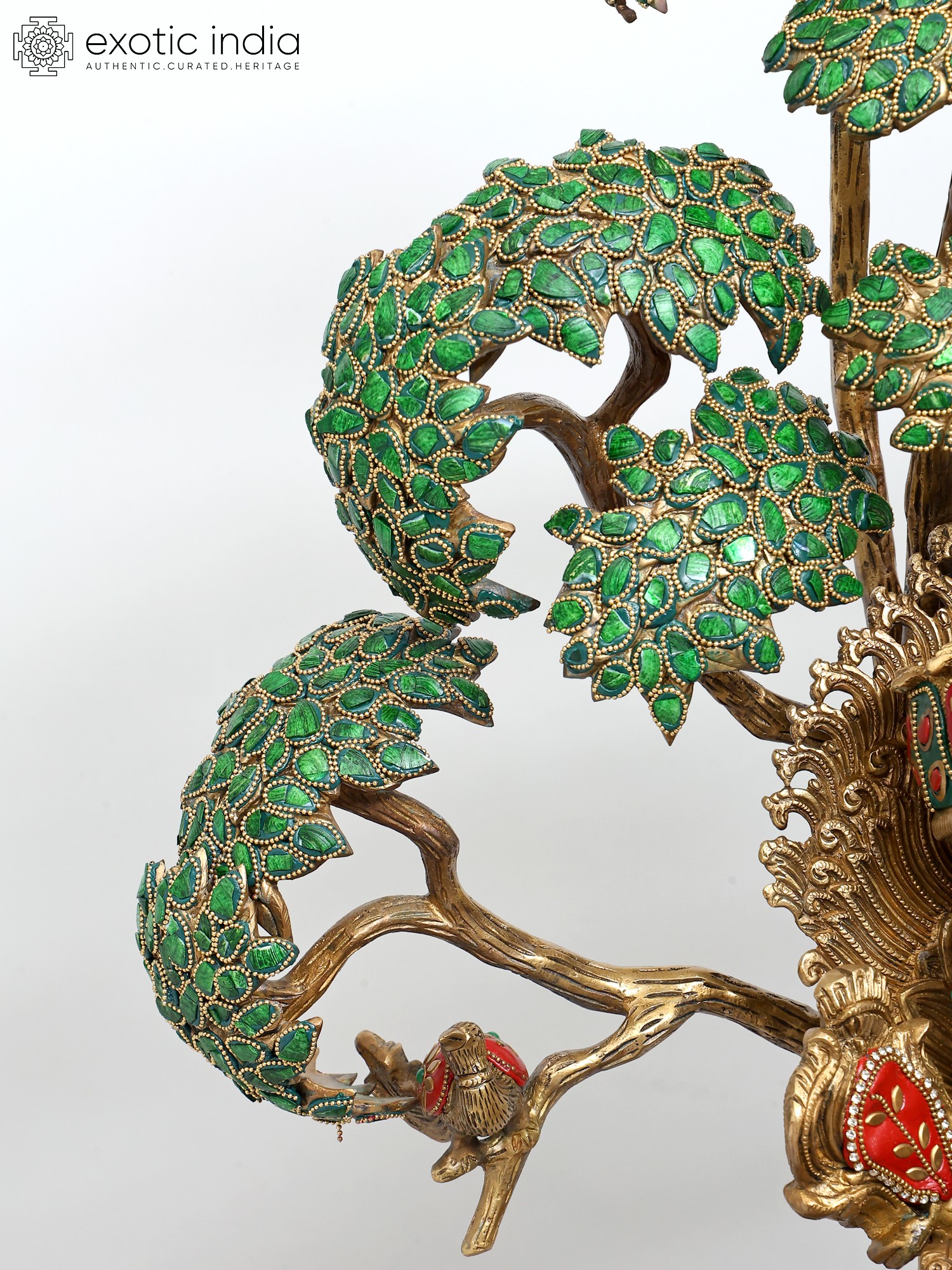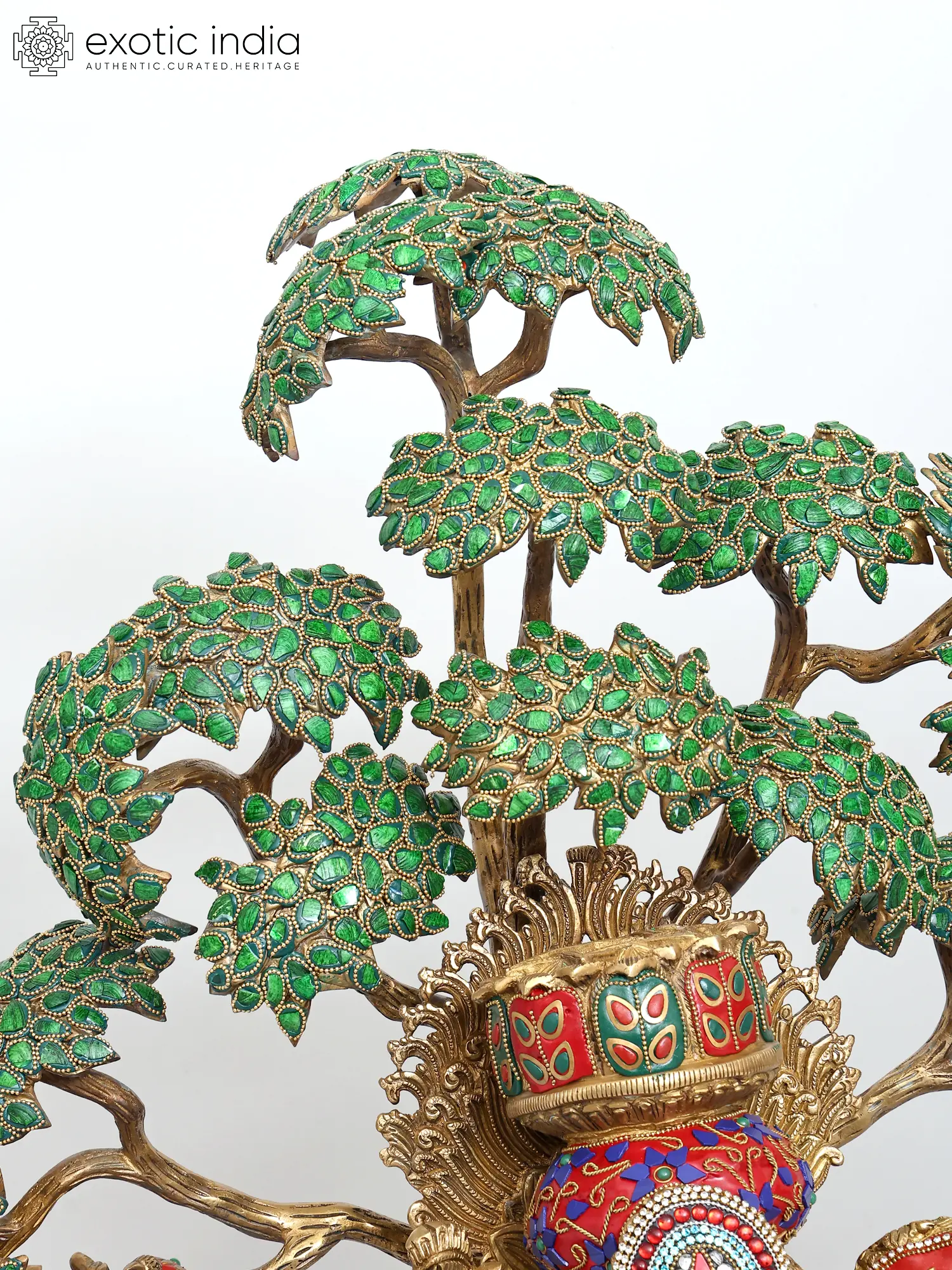22" Blessing Lord Buddha Seated Under The Bodhi Tree | Brass Statue with Inlay Work