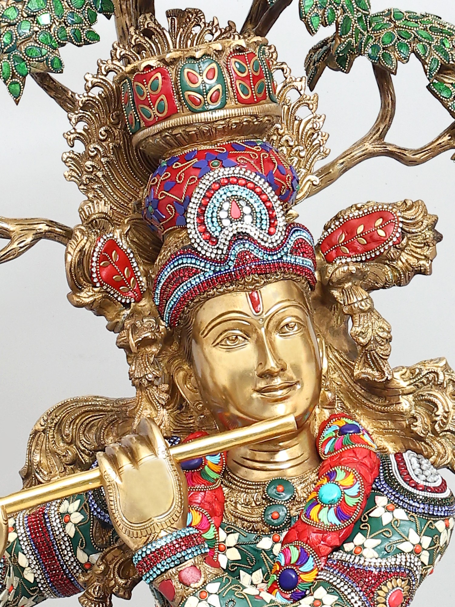 34" Large Size Krishna in ‘Tri-bhang’ Aspect | Handmade Brass Statue
