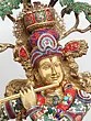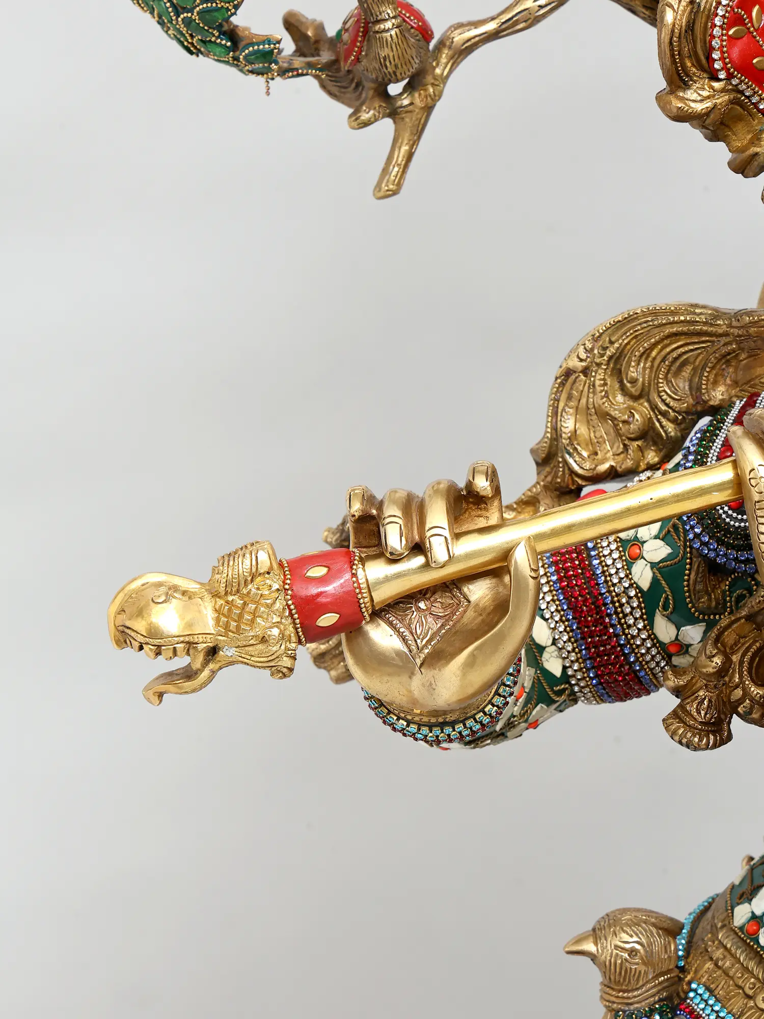 29" Large Brass Krishna Idol Playing Flute – Handmade Indian Sculpture for Your Home