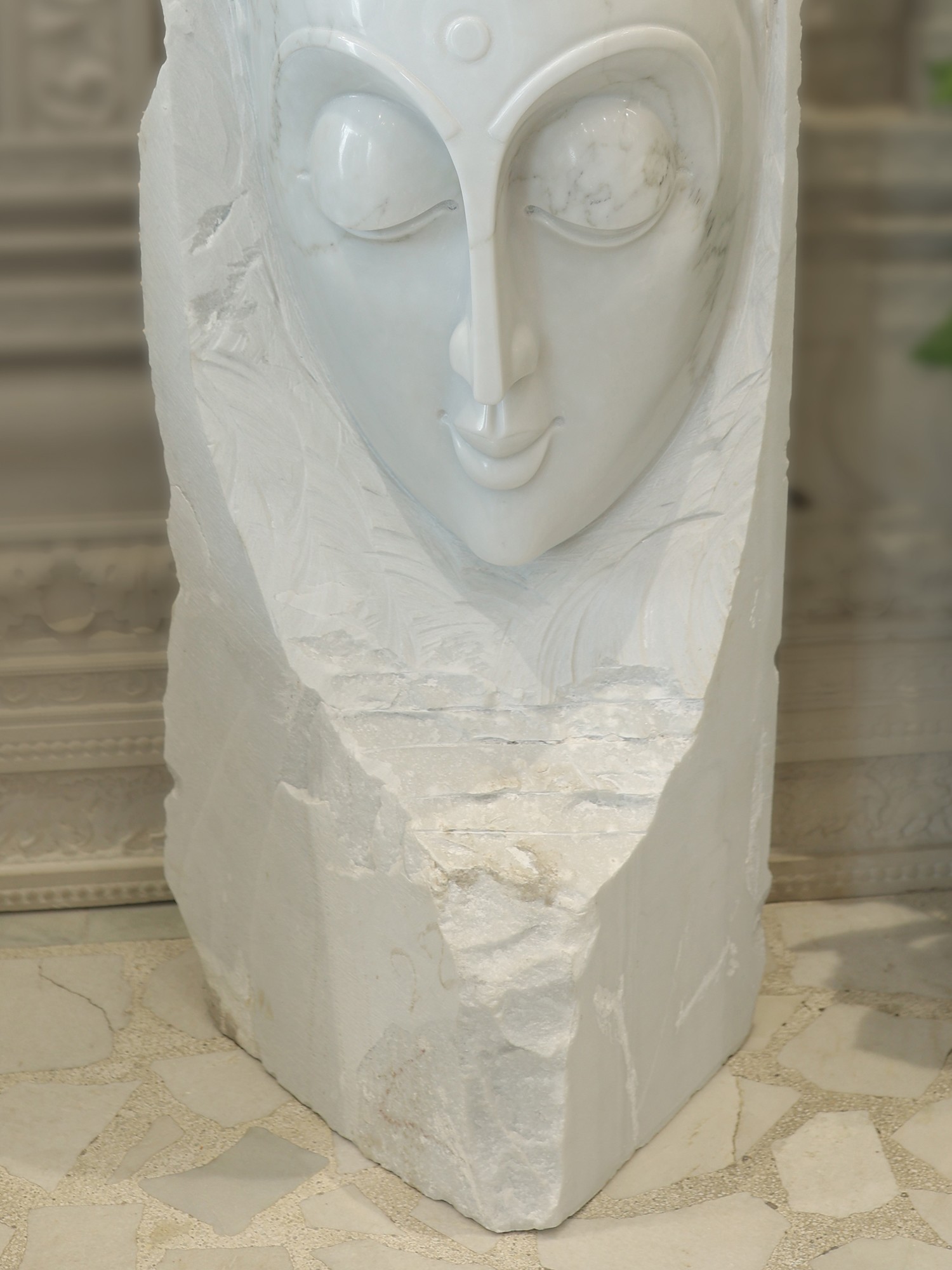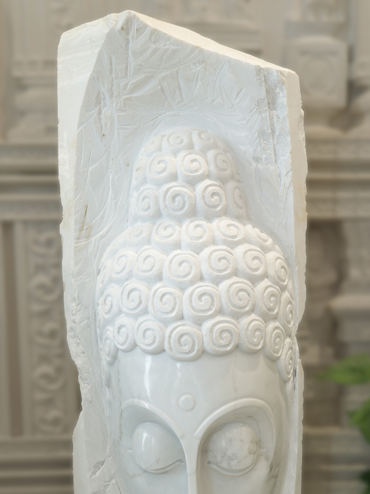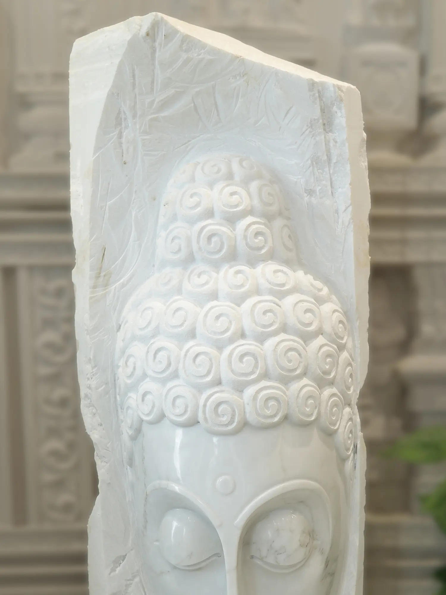 77" Great Buddha Face | Modern Art Sculpture | White Marble | Excellent Indian Art