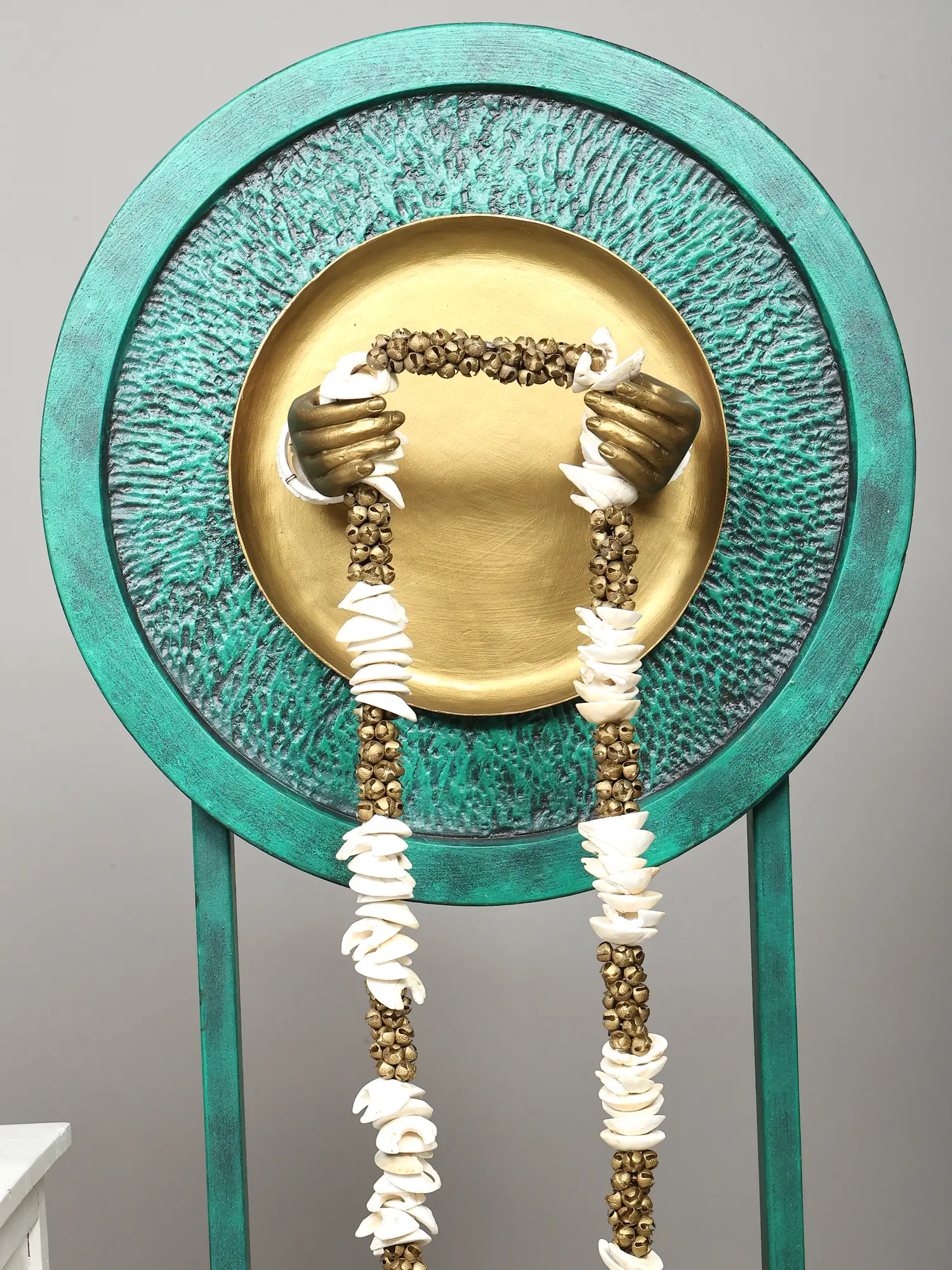 23" Tripura Sundari Yantra for spiritual growth, harmony, and protection | Brass Yantra on Wood Frame | Wall Hanging