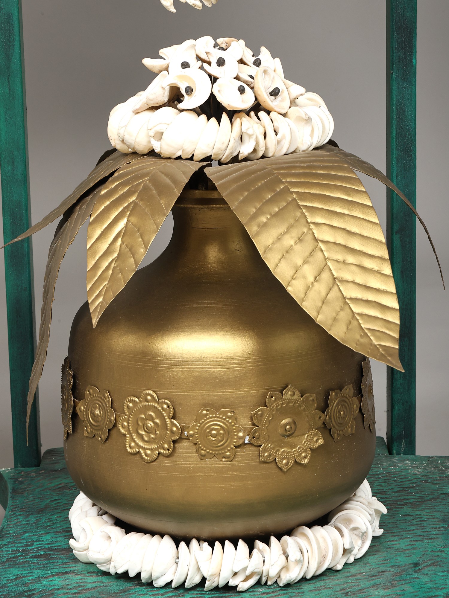 Gold Plated Buddha In Bhumisparsha Mudra On Turquoise