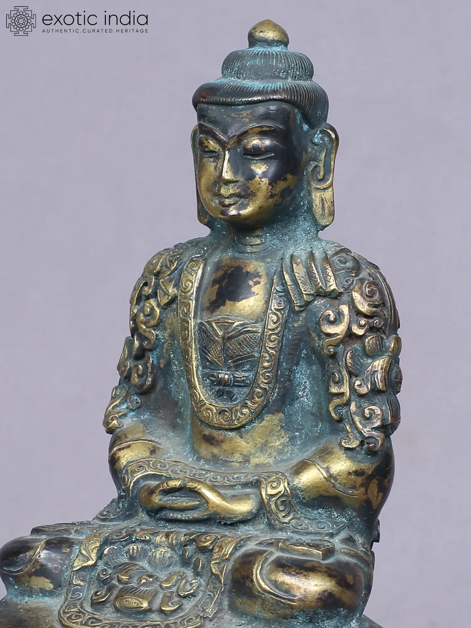 15" Amitabha Buddha Seated Round Mandala In Copper Gold And Silver Plated