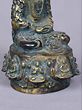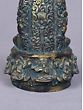 Crafted from copper and meticulously gilded with gold, this statue embodies the opulence and spiritual significance associated with Amitabha. The rich patina that has developed over time speaks to the age and devotional journey of this artifact, adding a layer of history and authenticity. The serene countenance of Amitabha, with downcast eyes and a gentle smile, invites introspection and peace. His posture, seated in the lotus position, signifies perfect meditation and mastery over the mind. The intricate detailing on his monastic robes and the ornate base, adorned with miniature Buddha figures in various meditative poses, further enhance the sacredness and symbolic depth of the piece. These smaller figures can be interpreted as representations of the multitude of beings who aspire to reach Amitabha's Pure Land, or perhaps as emanations of Amitabha himself, radiating his benevolent influence.