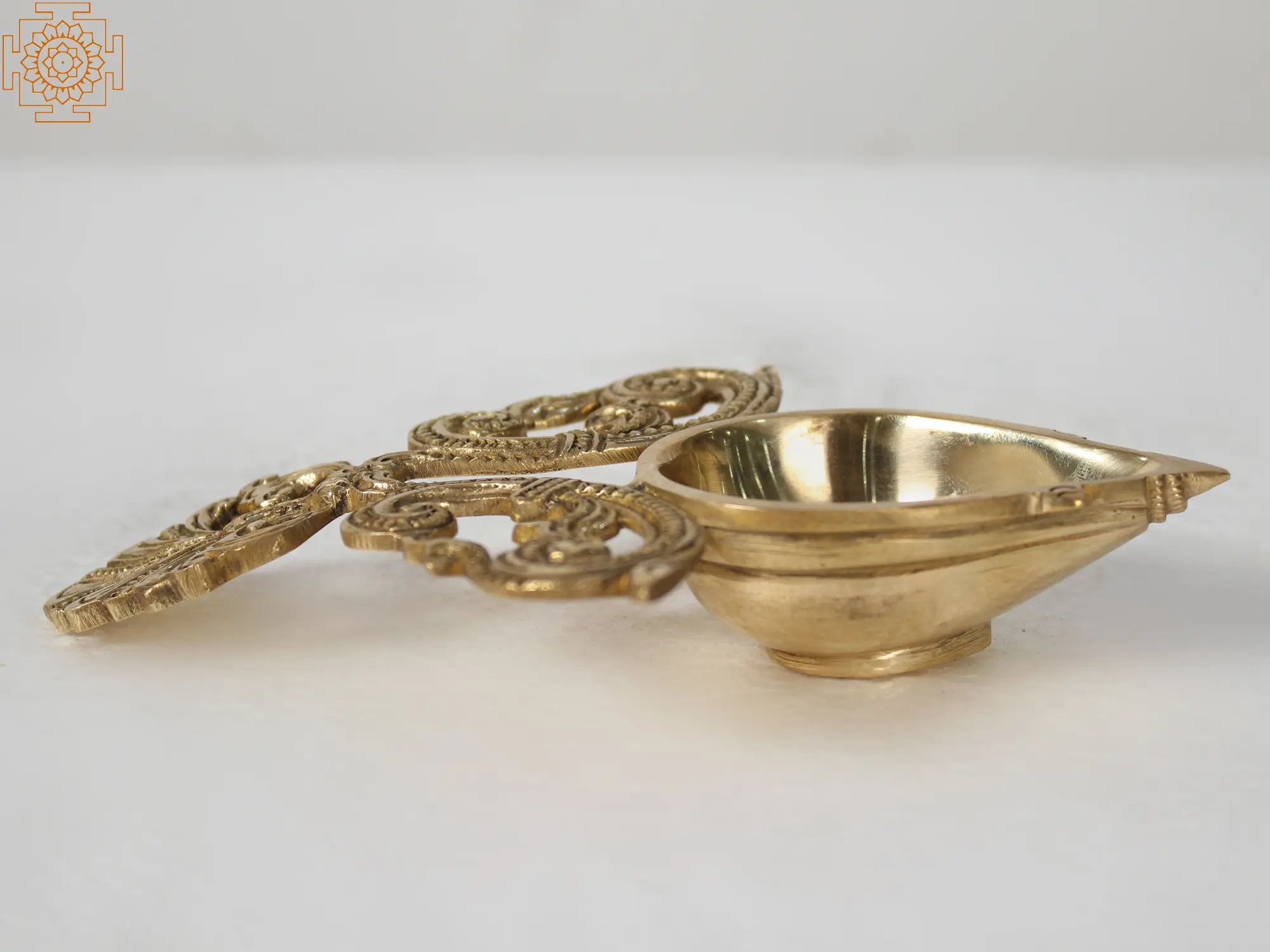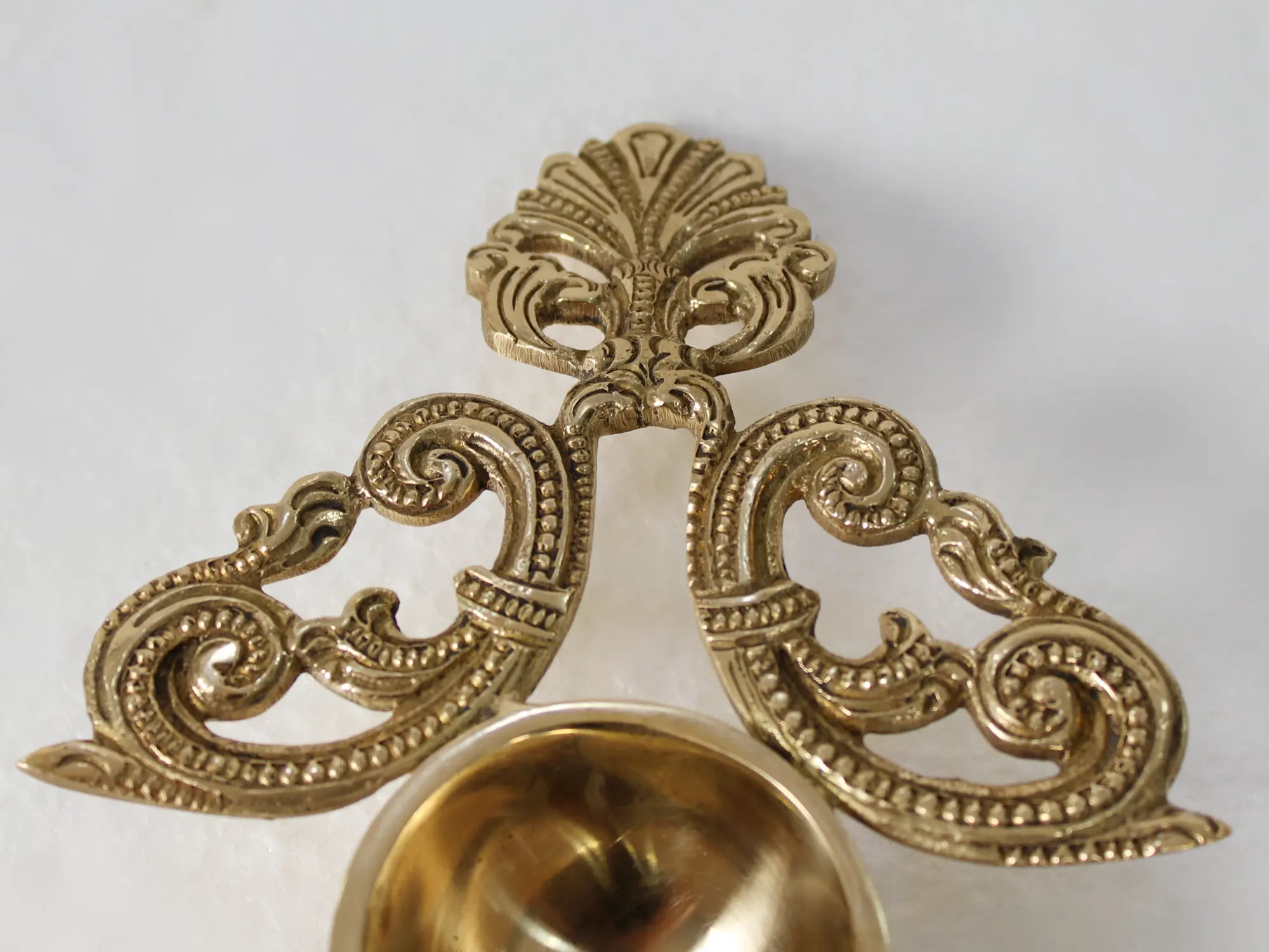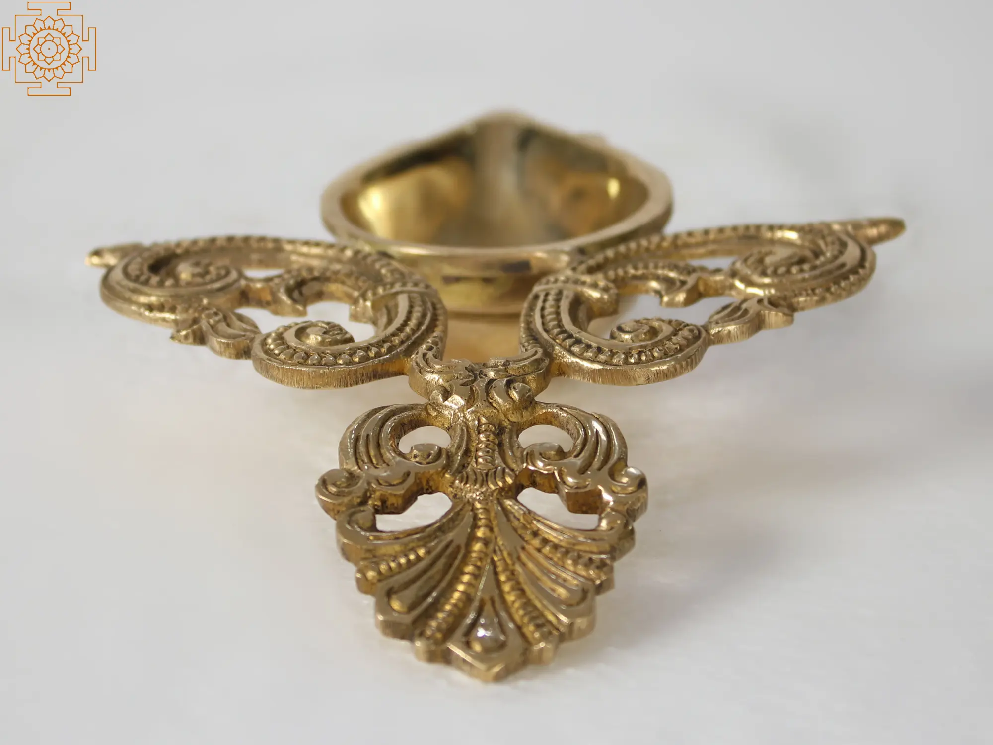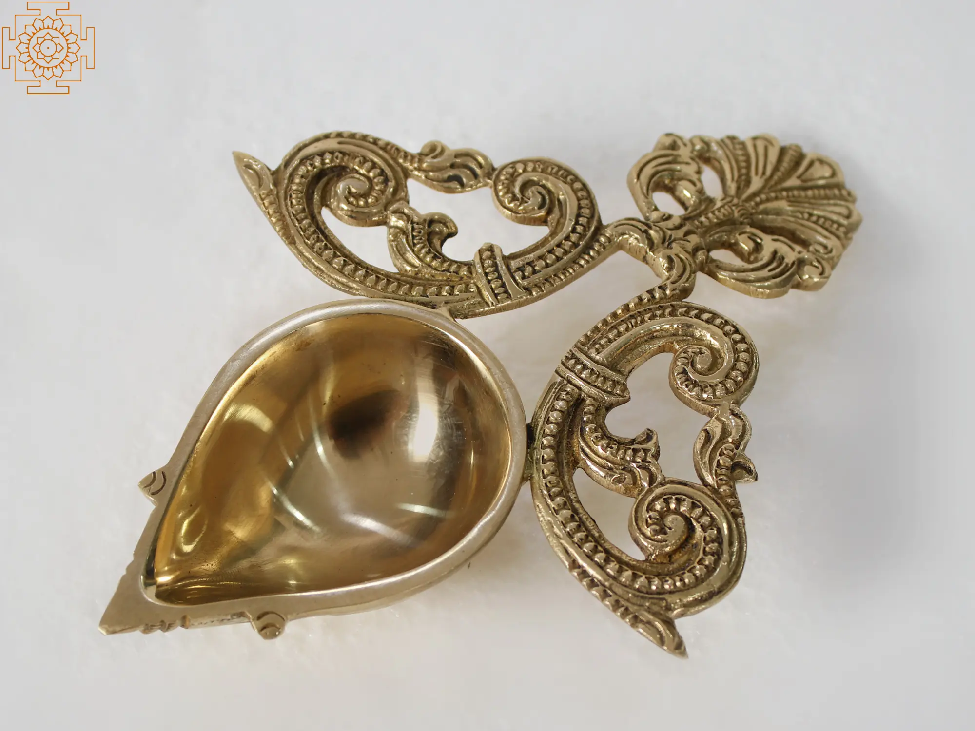 This gorgeous brass Diya is a great example of basic yet effective art. With extremely simple vines etched on the lamp's handle, it emphasizes the relationship between God and nature. This is a single-wick Aarti light. The gold-plated finish of the Diya gives it a royal look, making it appropriate for the décor of a personal worship space.