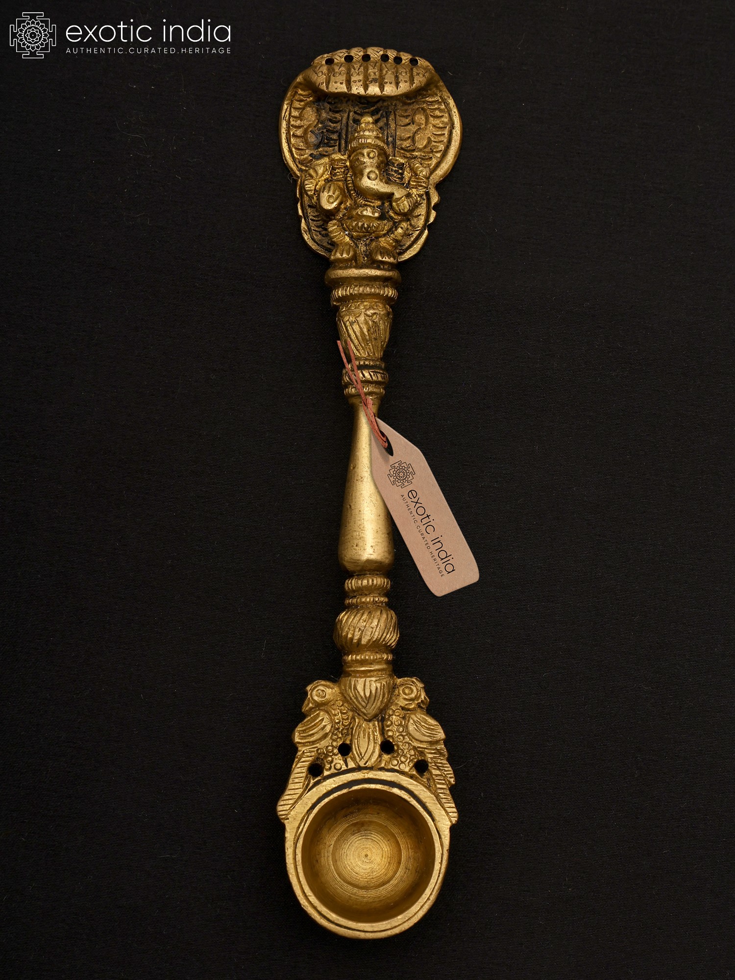 23" Brass Large Size Ritual Spoon (Uddharani) with Figures of Nandi and Shiva Linga | Handmade