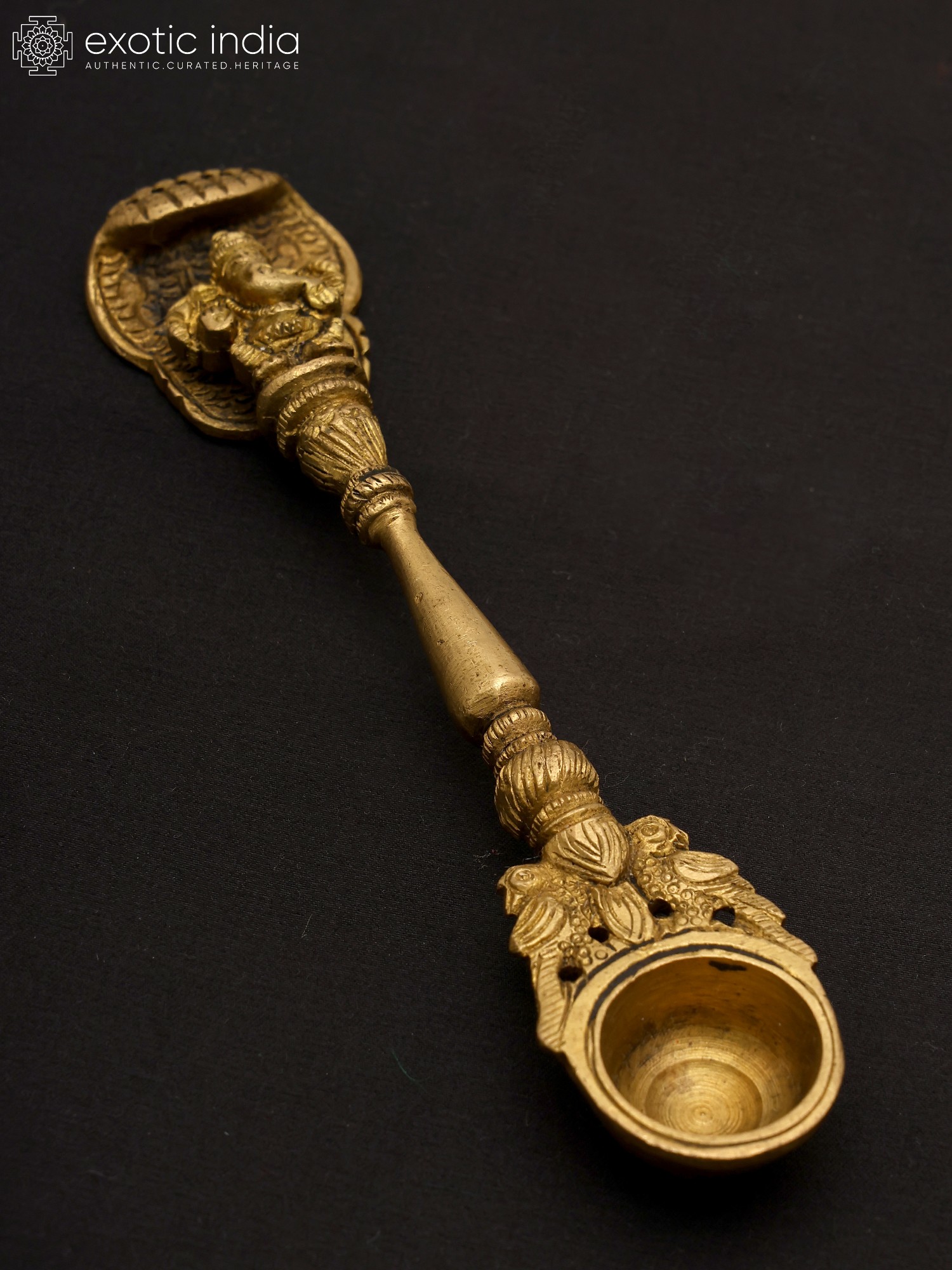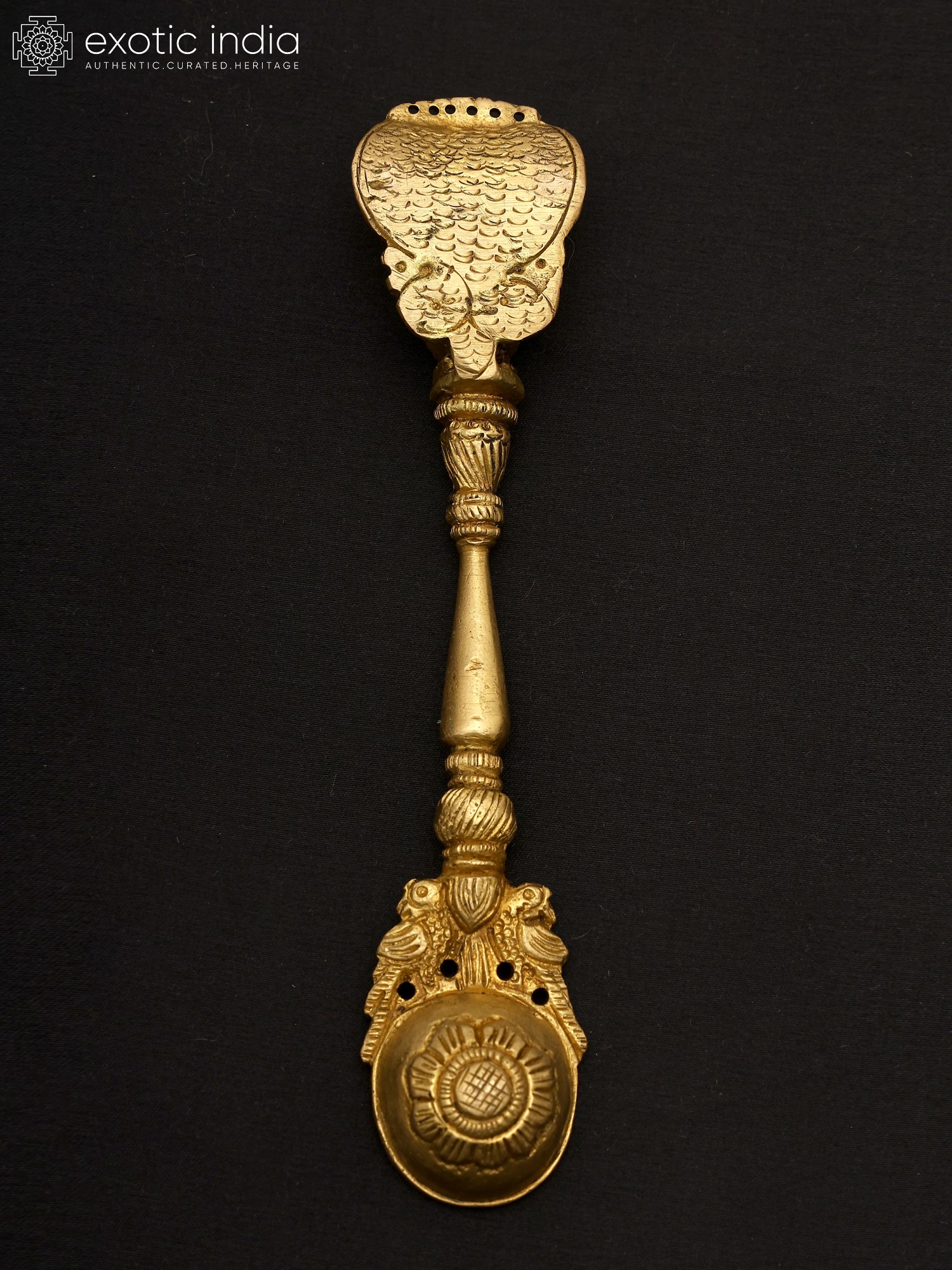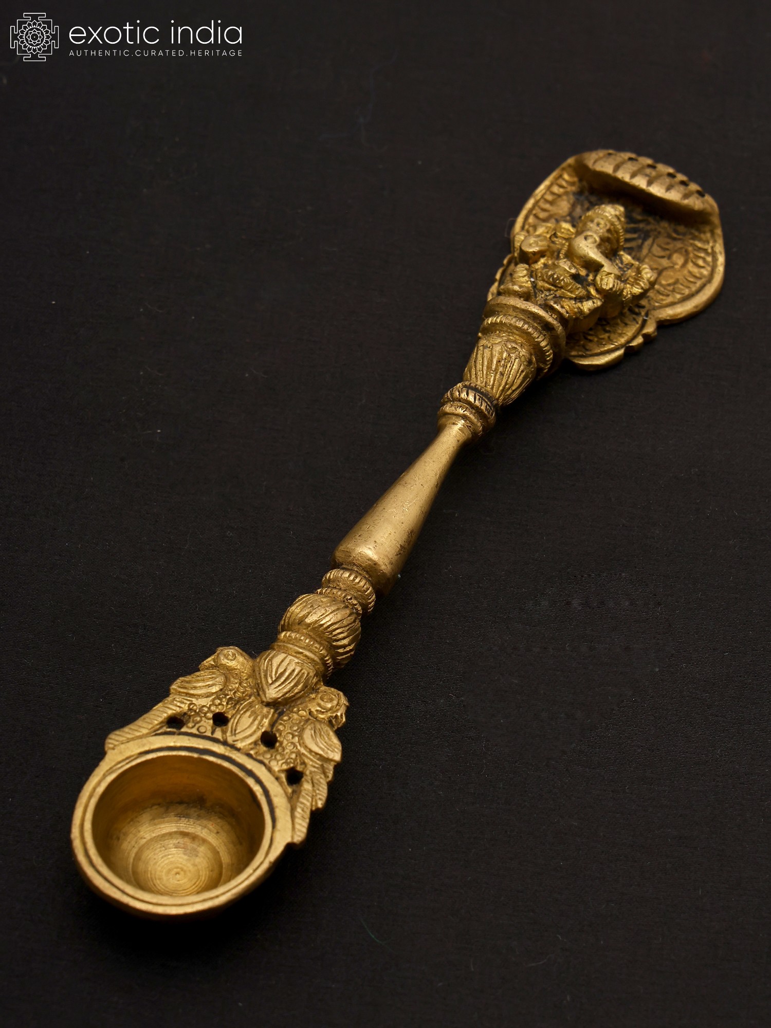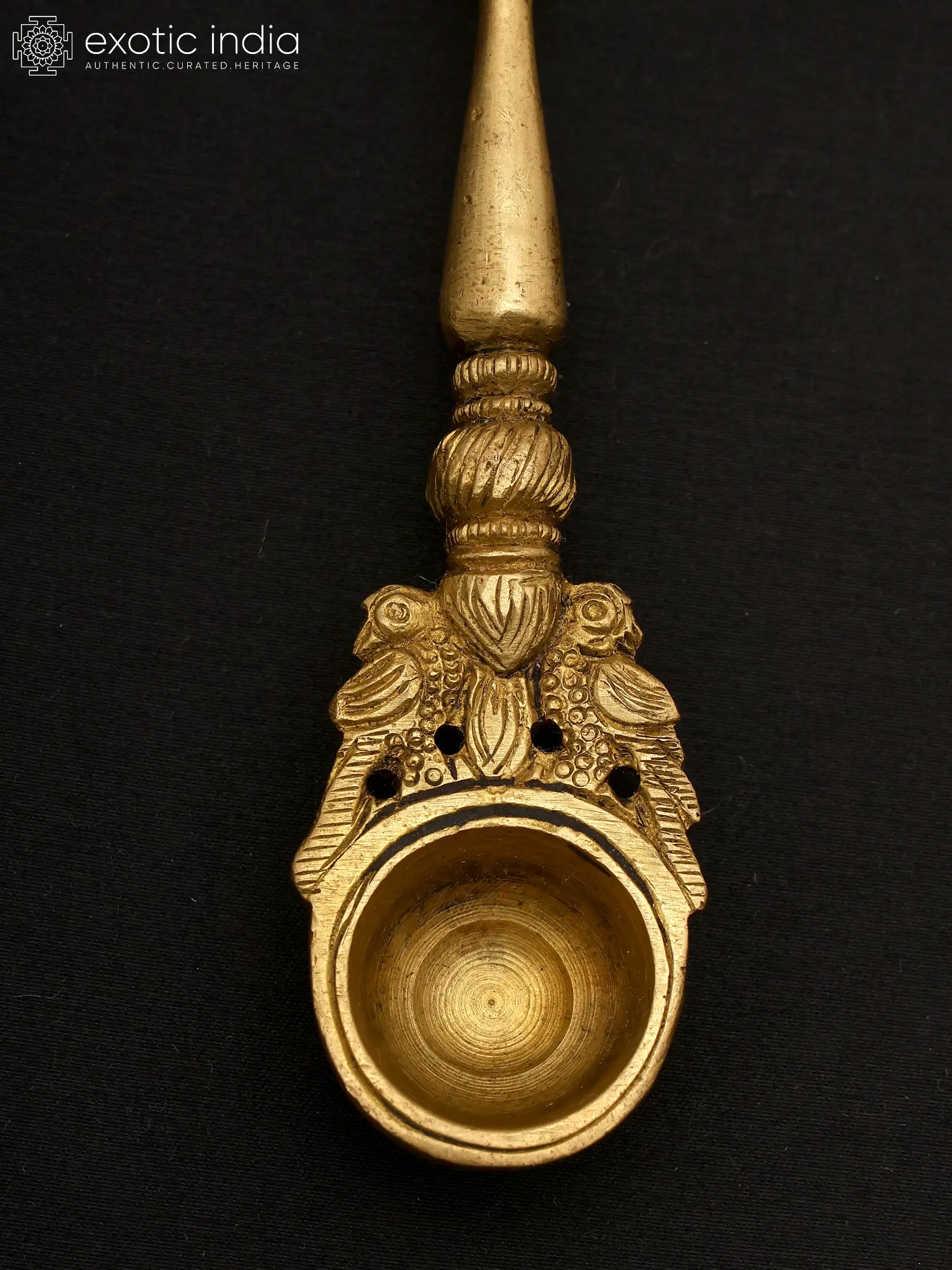 9" Krishna Ritual Spoon with Peacock Pair in Brass | Handmade | Made in India