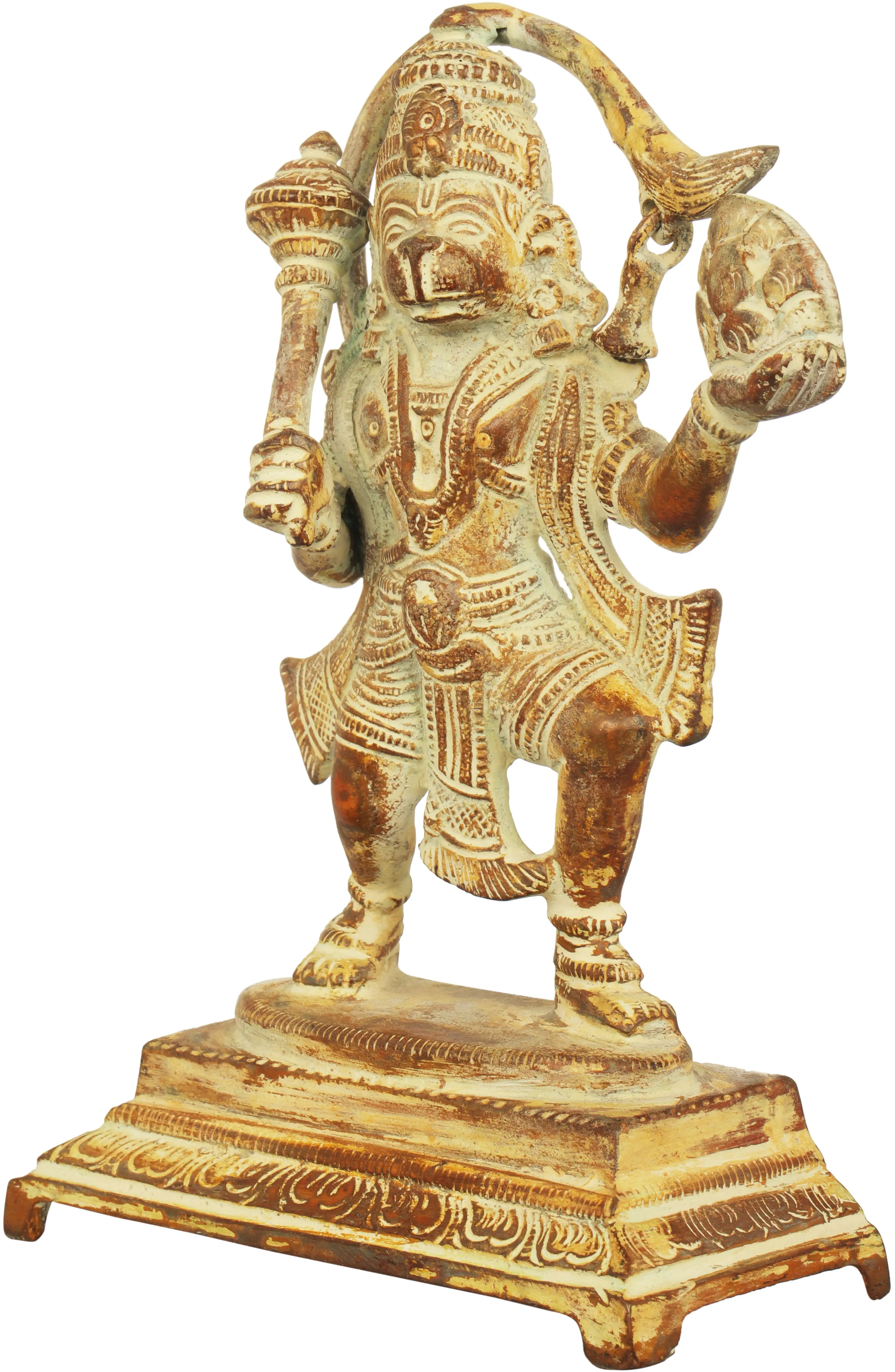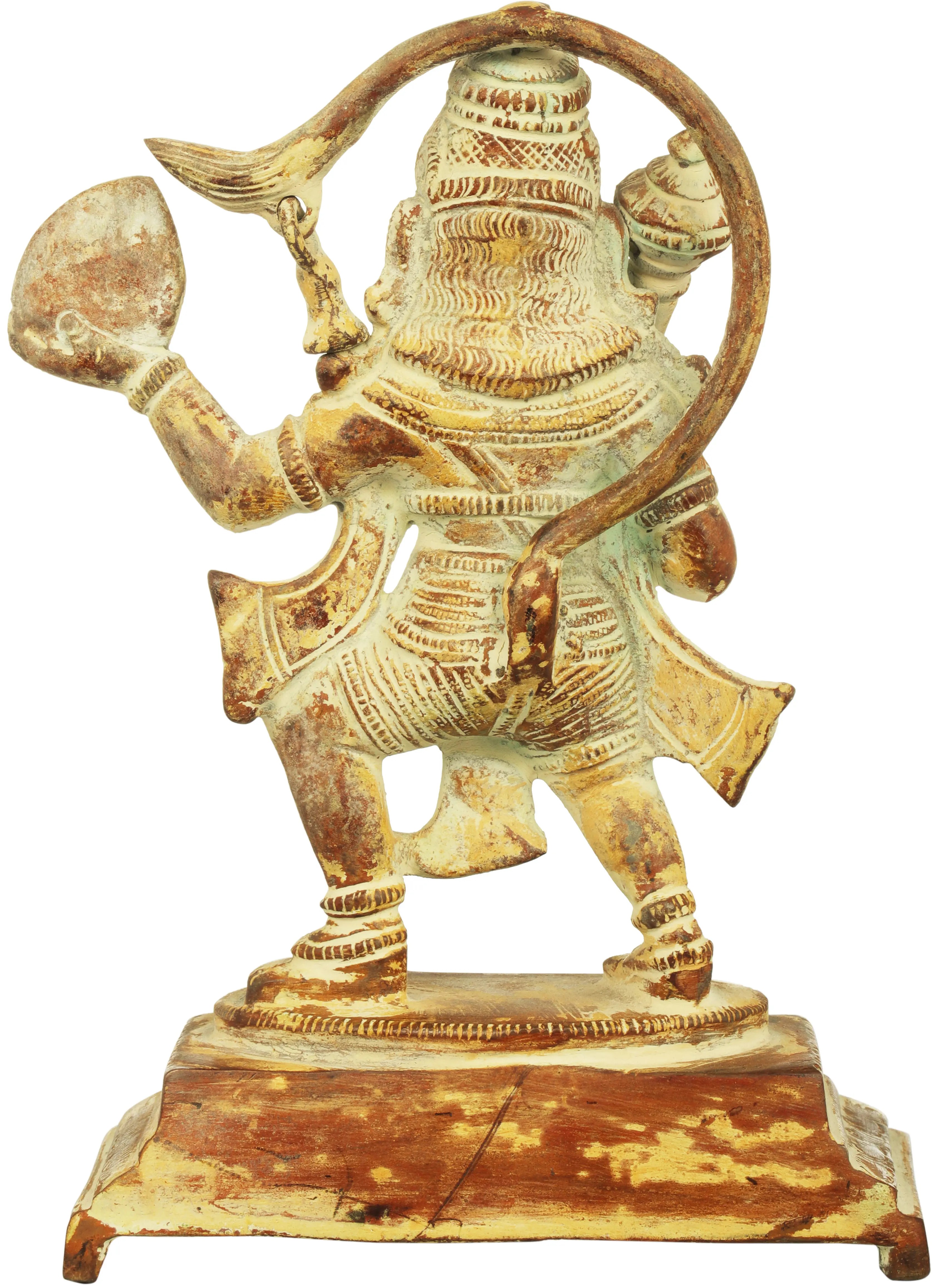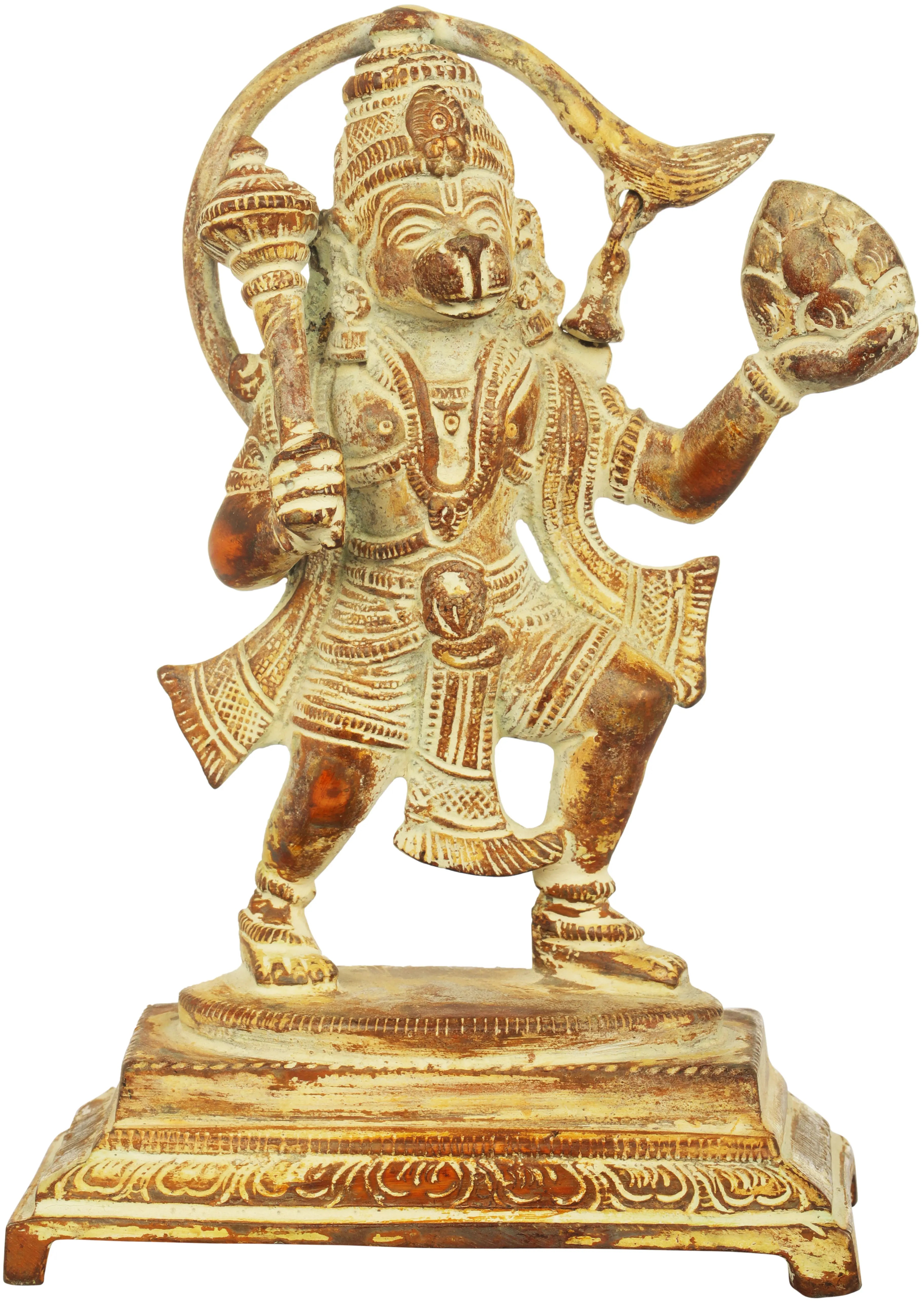 Through the masterful hands of artisans in brass - Lord Hanuman stands resolute, the colossal Mount Dron - Sanjeevani, cradled in his arms. The intricate details, from his determined expression to the depiction of the life-restoring herbs, speak of his unparalleled dedication to his mission. The powerful imagery evokes the energy of hope, healing, and courage that Hanuman embodies. The amalgamation of Hanuman's strength and compassion mirrors the interplay of divinity and humanity, as his form becomes a testament to his extraordinary devotion and his willingness to undertake any challenge for the greater good.