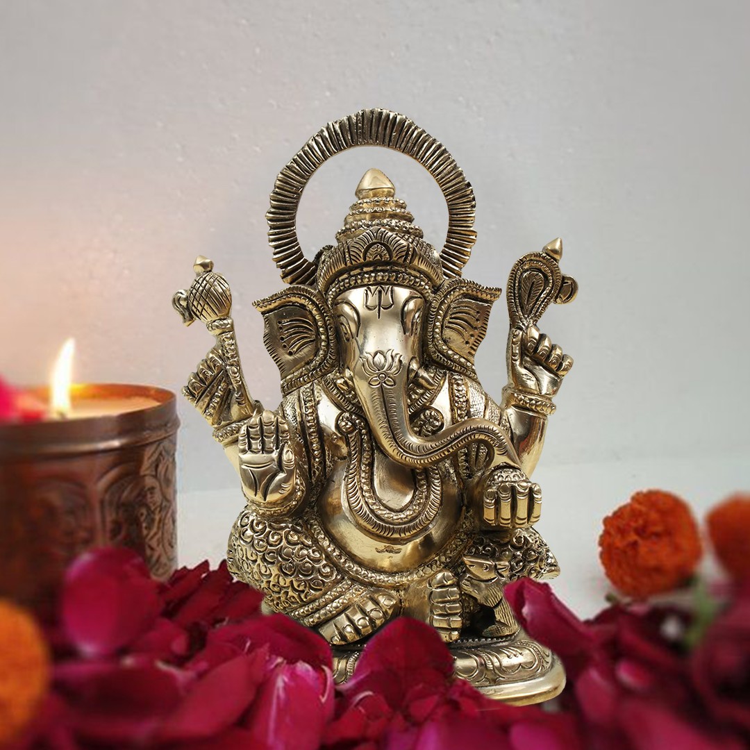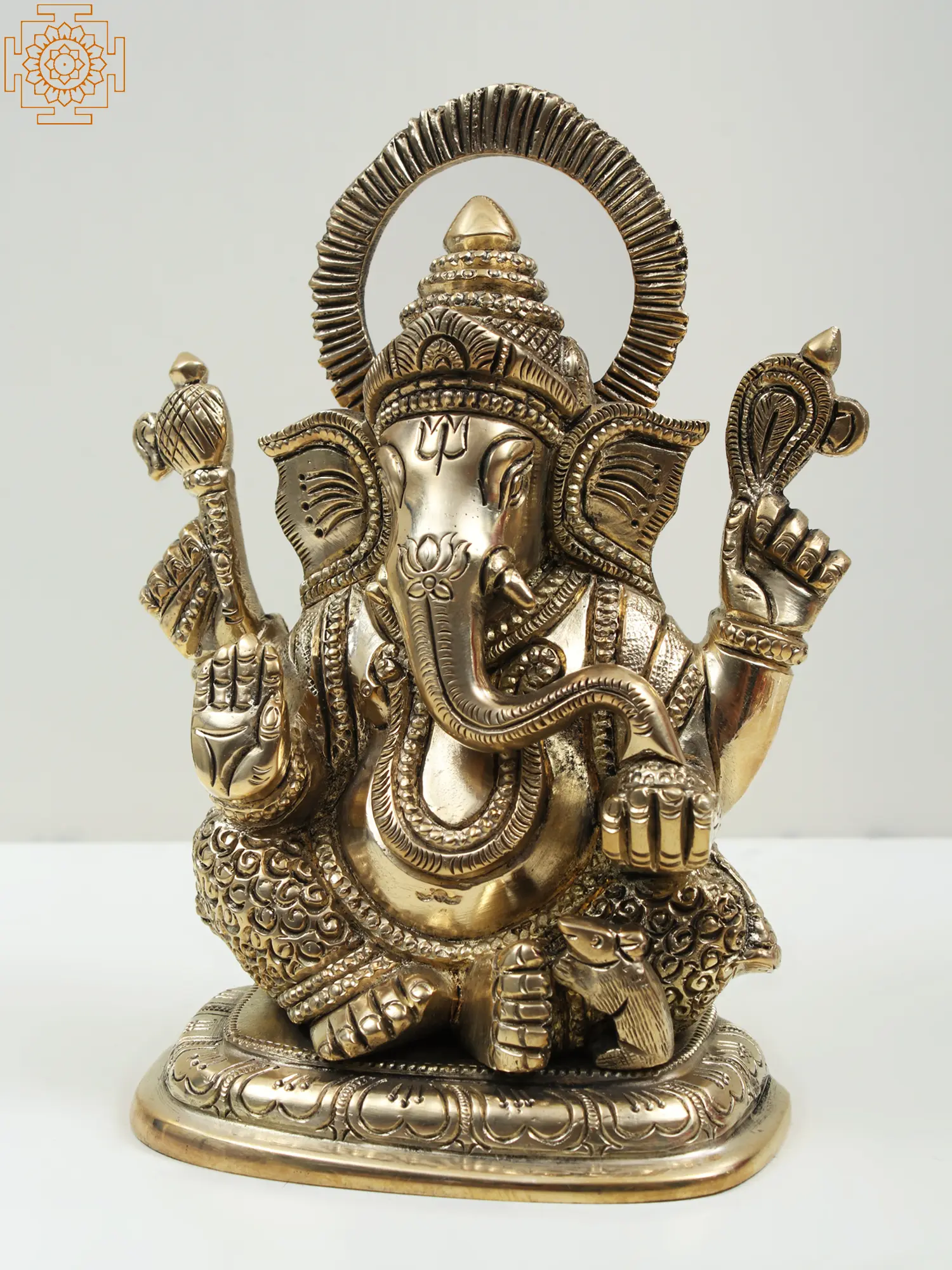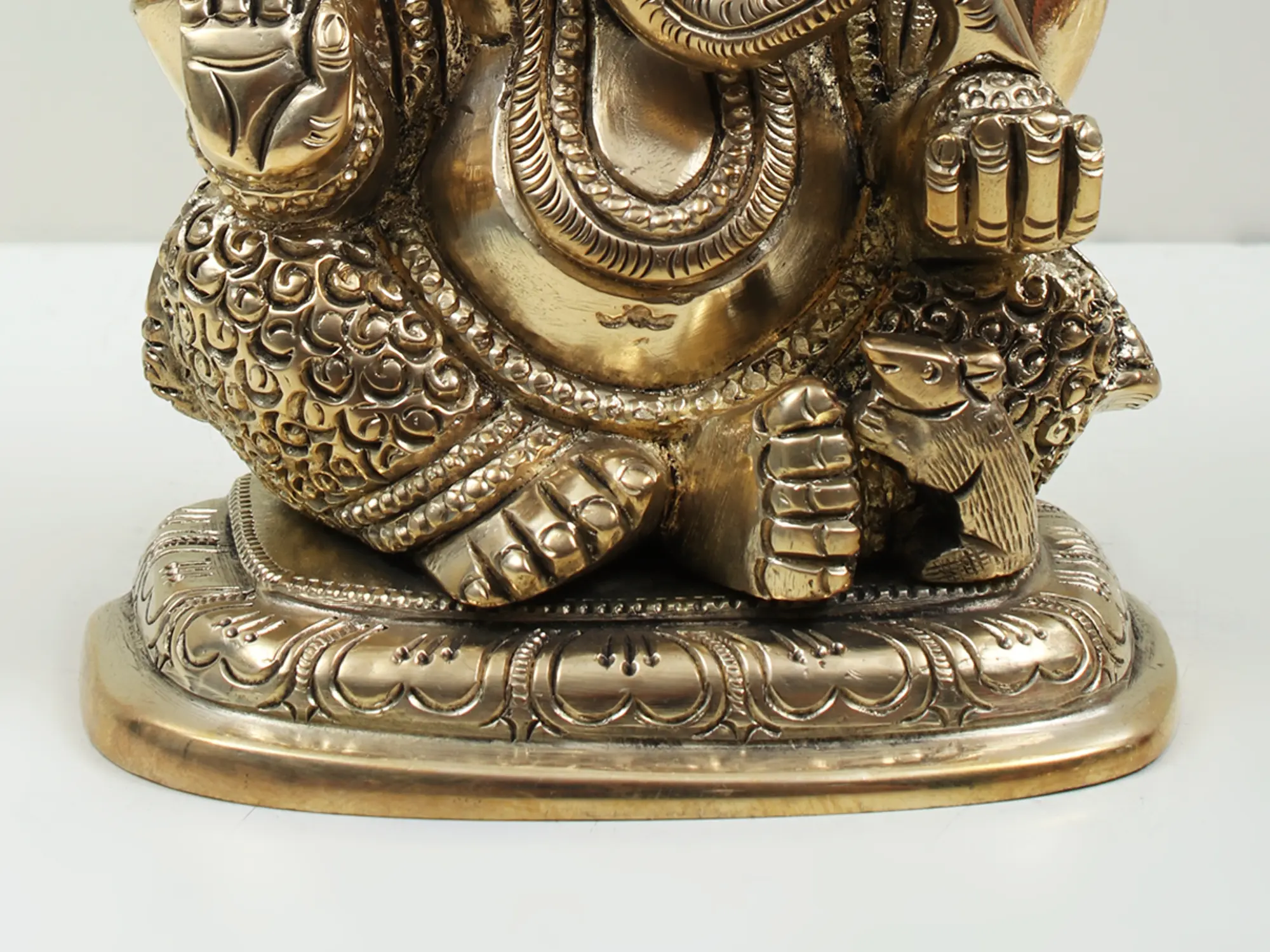 5" Throne Ganesha Sculpture in Brass | Handmade | Made in India