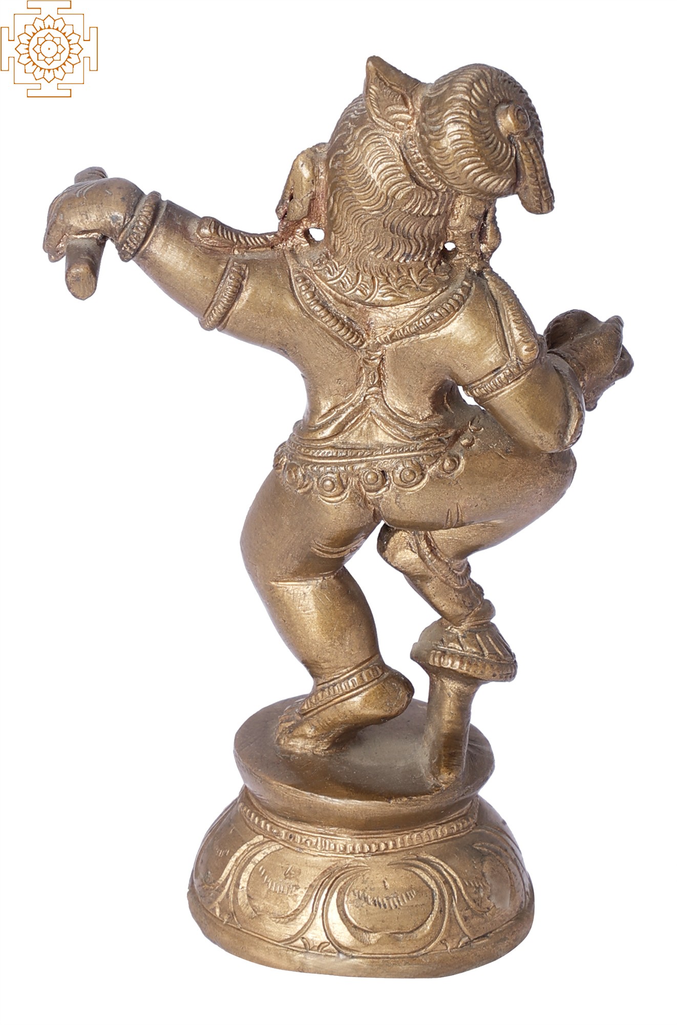 Standing in a graceful pose as if caught in a moment, the idol of Lord Krishna as Ladoo Gopal stands on an upturned lotus, holding a half-eaten ladoo in one hand and his divine bamboo flute in the other. The Supreme Lord appeared in this form to a boy named Raghunanda, who was the son of a man named Mukundananda. When it came to offering food to the lord for bhog, it was usually the duty of Mukundananda. However, one day he had to leave to help one of his disciples remember the lord's name as he lay on his deathbed, so he passed the duty to his son. Raghunanda took the plate of laddoos his mother gave him and asked the lord to eat it.
