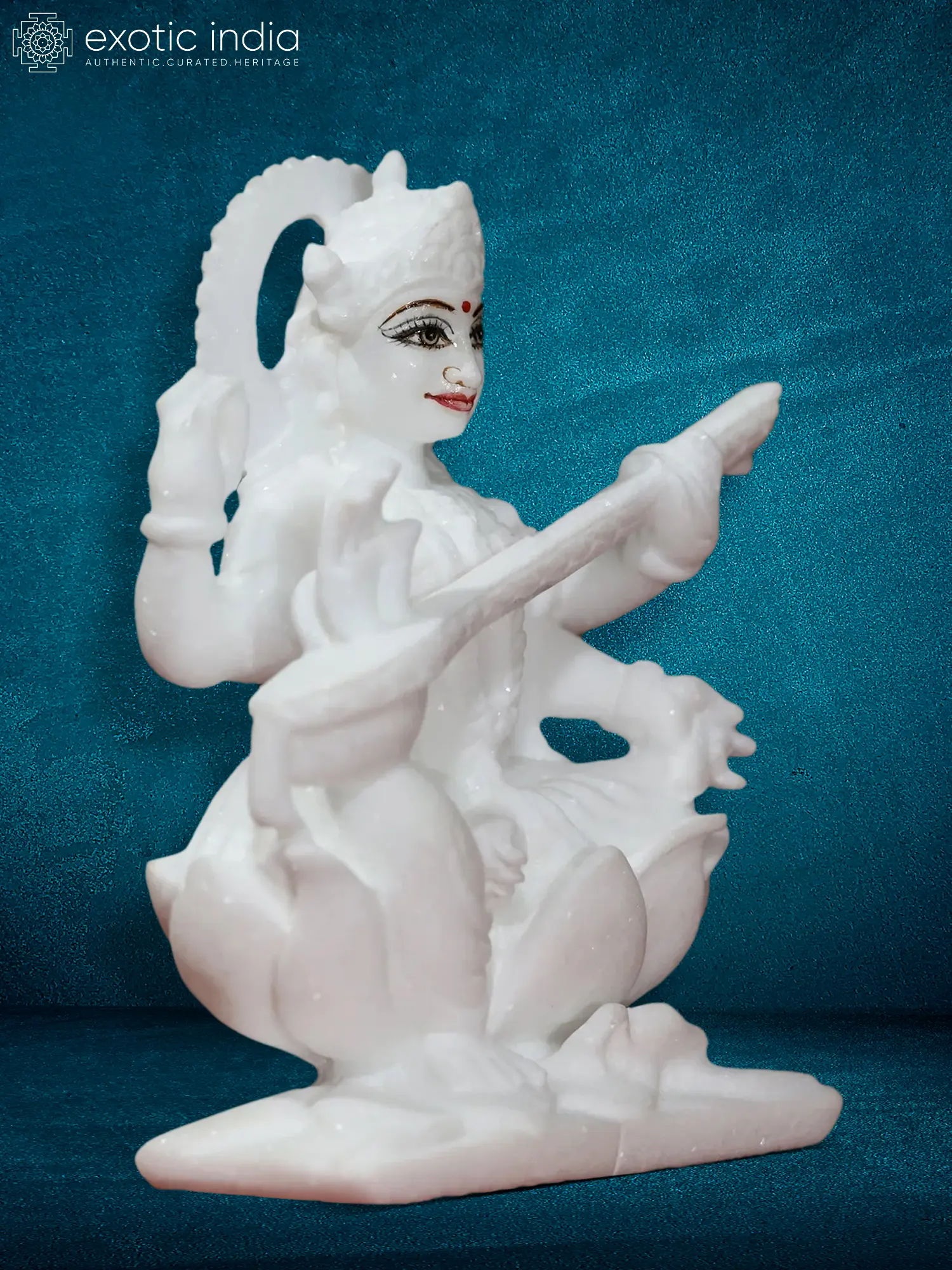 18" Handmade Statue Of Goddess Saraswati | White Makrana Marble Sculpture