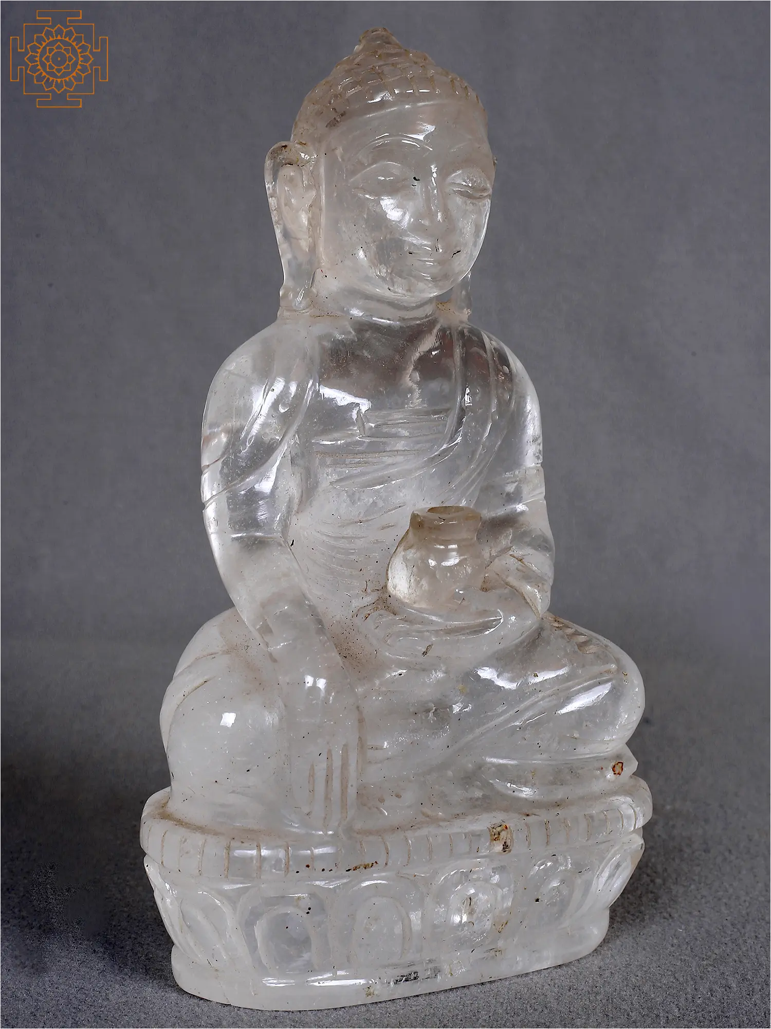 Crafted from crystal, this Crystal Buddha is a portrayal of Shakyamuni Buddha. The tranquility and spiritual presence connected to the Shakyamuni Buddha in his bhumisparsha mudra is embodied by this magnificent and translucent figurine. The bhumisparsha mudra represents the Buddha's triumph over ignorance and delusion. It is a declaration of determination and unflinching position, naming the Earth as a witness to his waking.