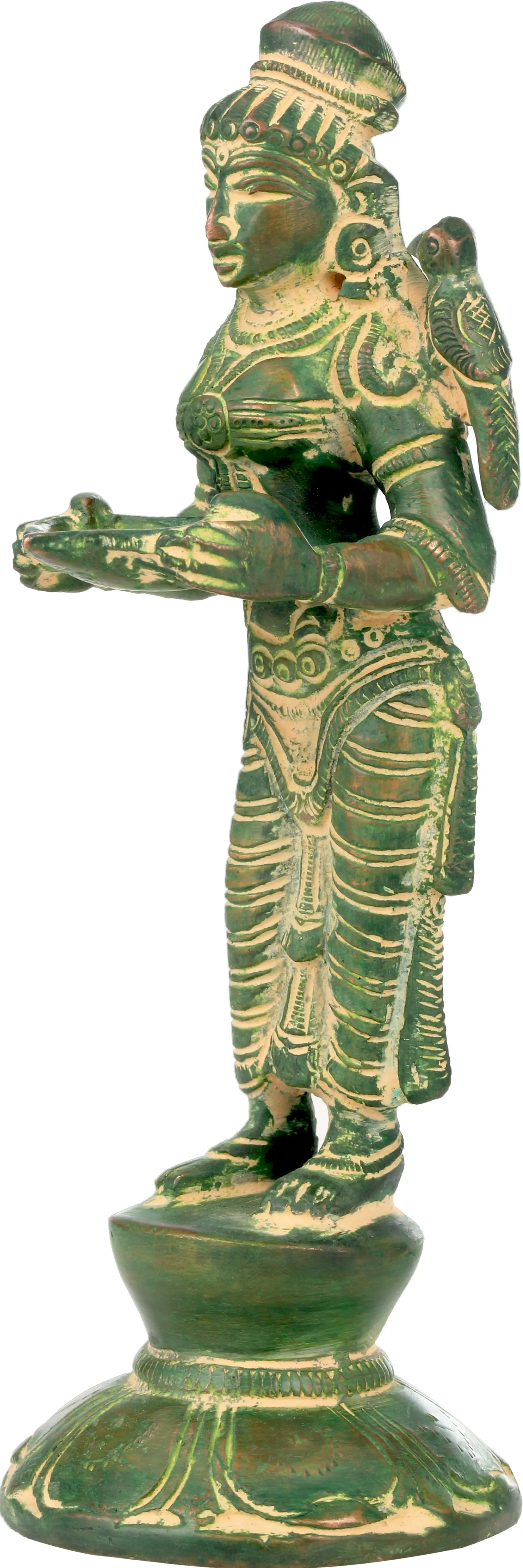 6" Deepalakshmi with Parrot on Her Shoulder in Brass | Handmade | Made in India