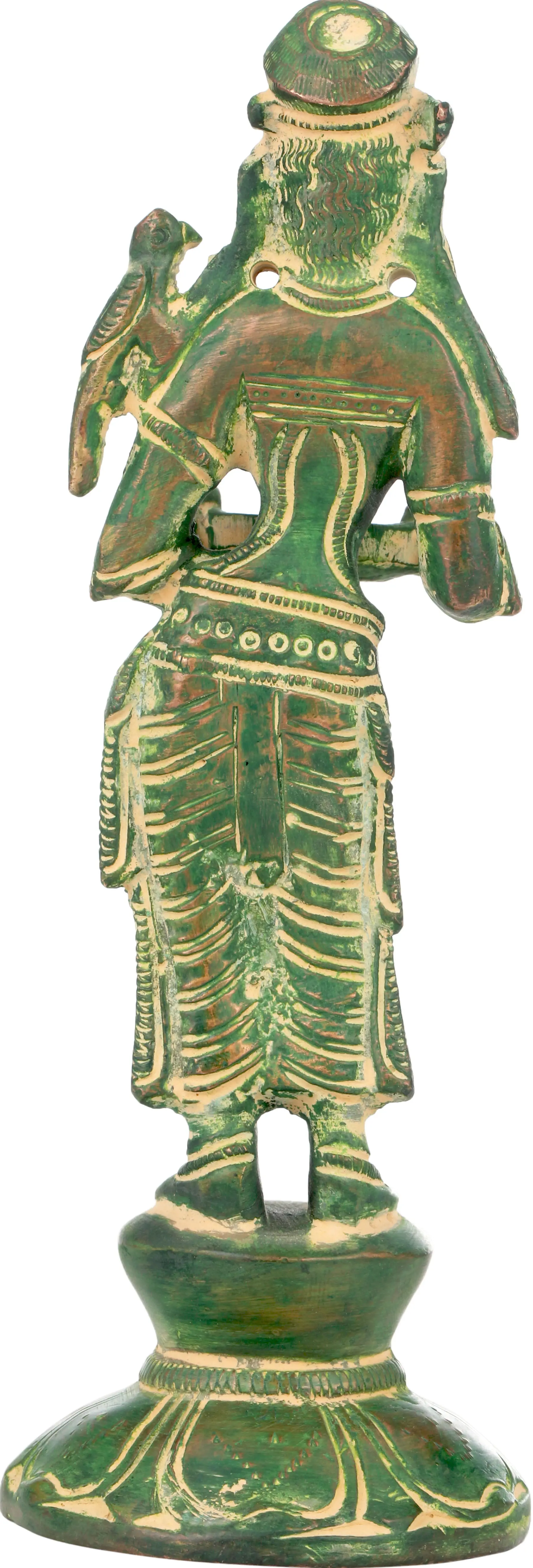 Every curve and detail of this statue speaks to the skill and dedication of the artisans who brought it to life. The intricate ornamentation on her garments, the serene expression on her face, and the delicate rendering of the parrot are testament to generations of craftsmanship. The use of brass, a metal deeply rooted in Indian cultural and religious practices, further enhances its authenticity and spiritual significance. Whether placed in a prayer room, on a mantlepiece, or as a centerpiece on a table, this statue serves as a beautiful reminder of tradition, artistry, and the enduring power of positive energy. It is more than just a decorative item; it is a piece of art imbued with cultural heritage and spiritual depth.