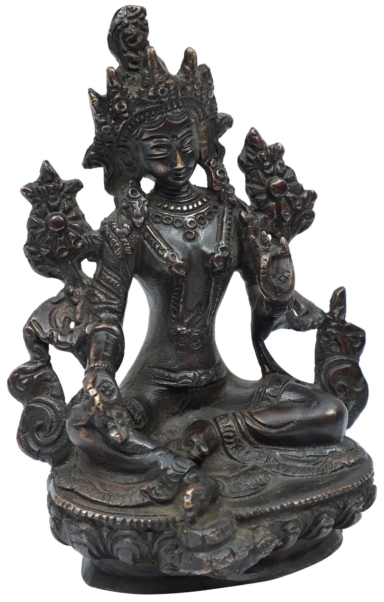 4" Small Size Goddess Green Tara Brass Sculpture | Handmade | Made in India
