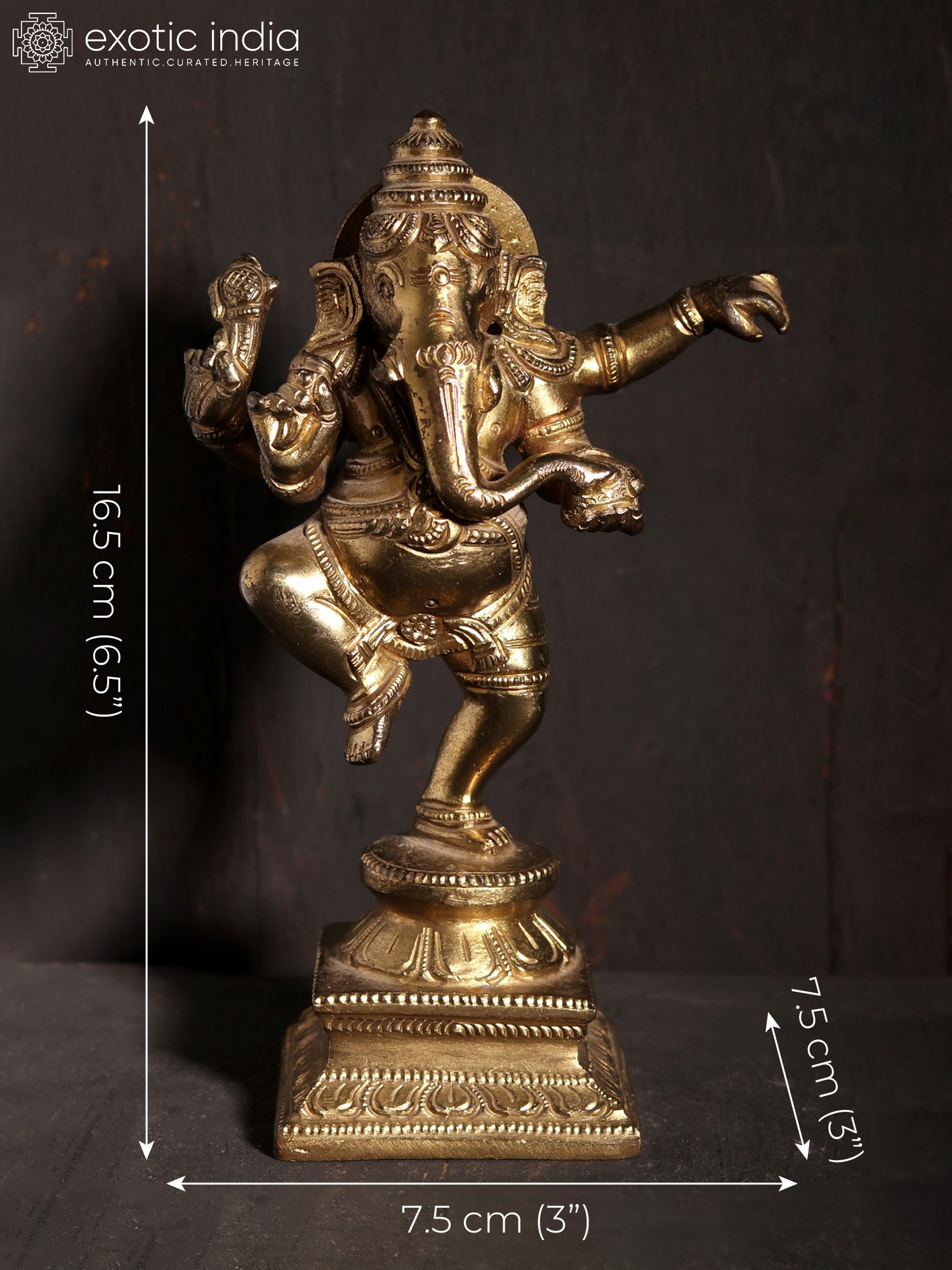 6" Four Hands Dancing Ganesha Bronze Statue – Crafted in Hoysala Art Style